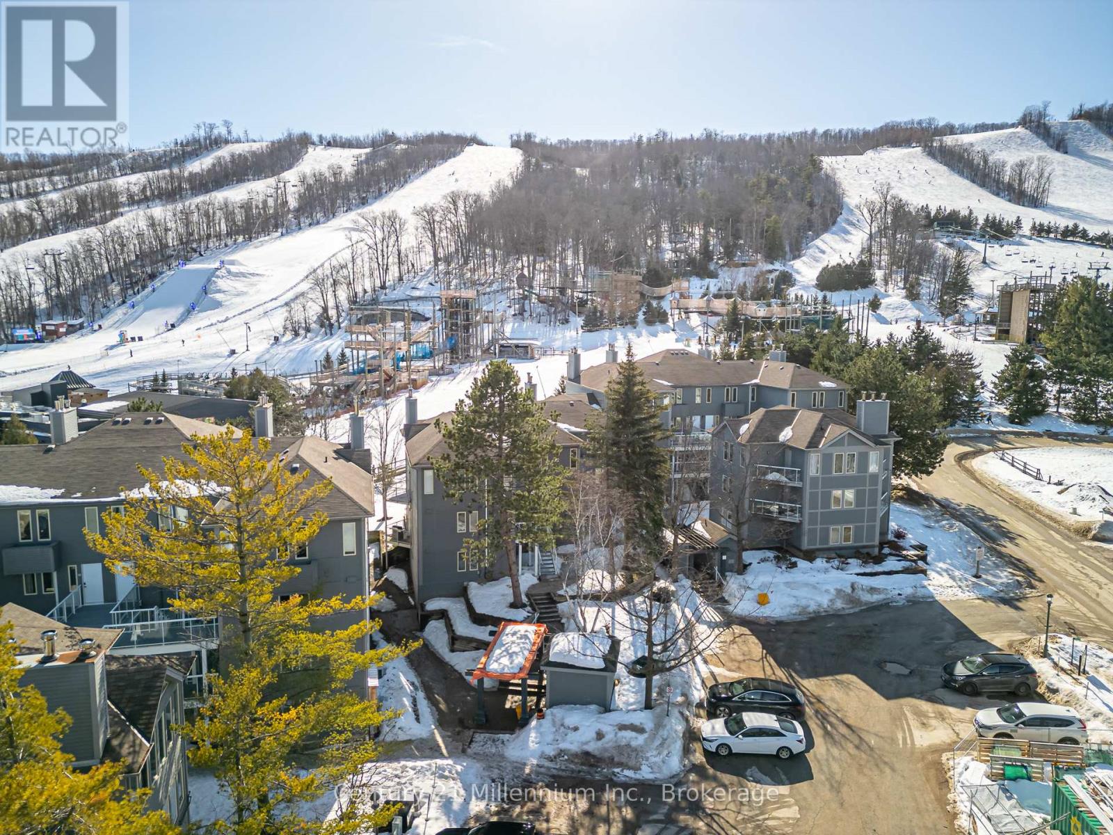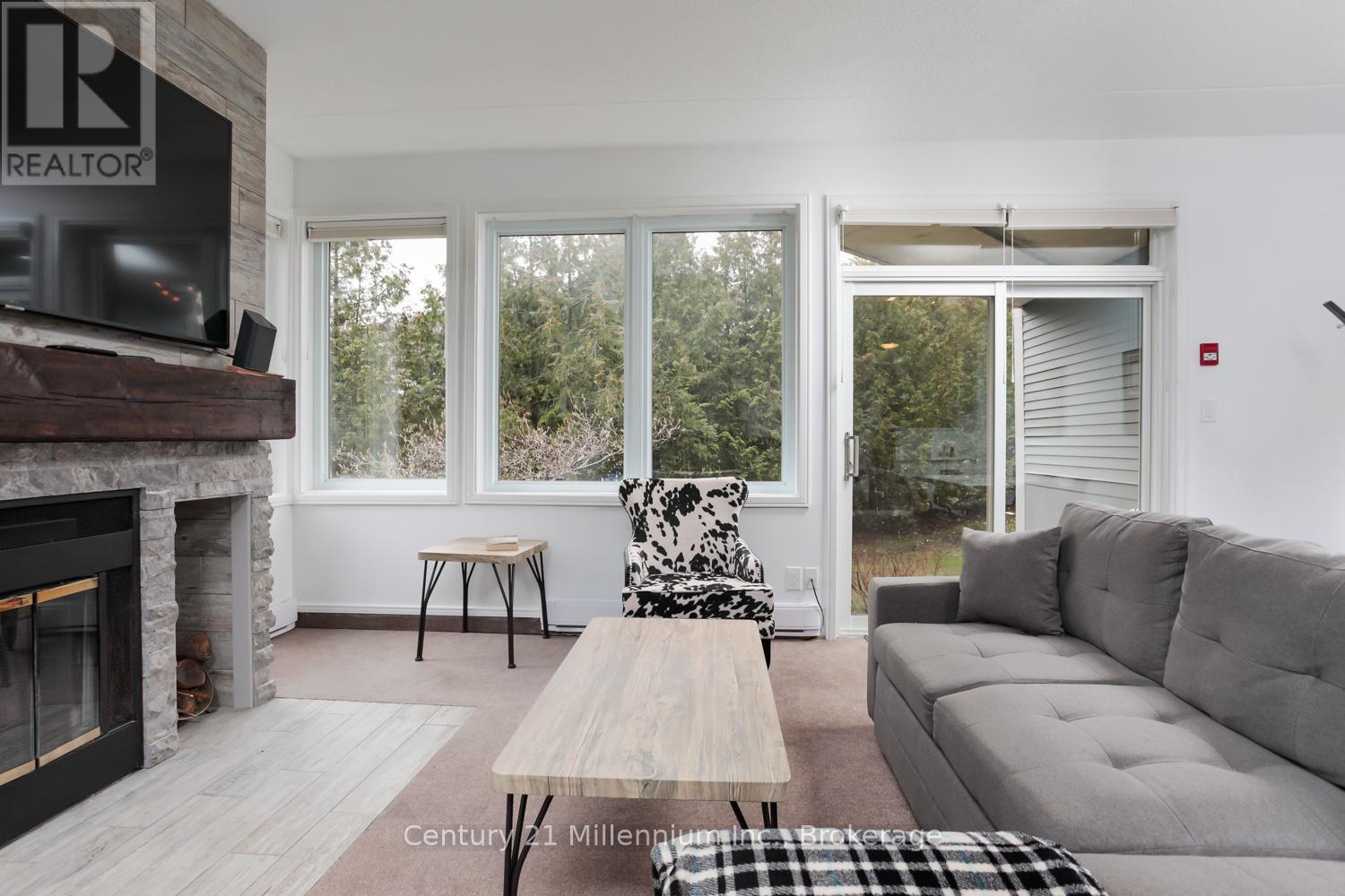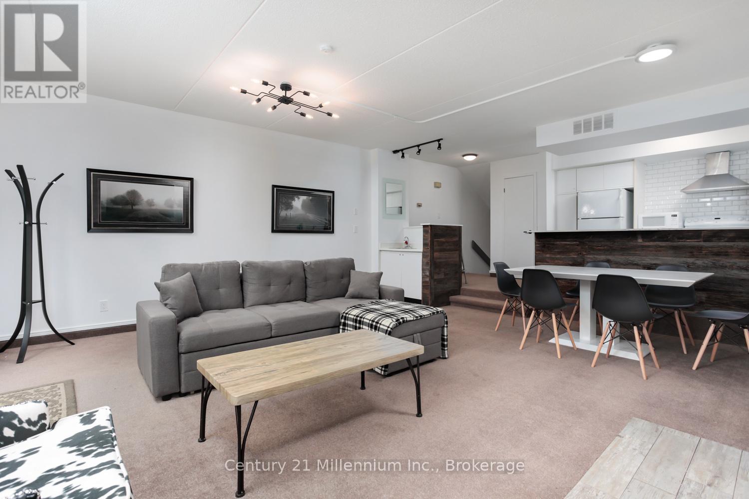 Ski-In/Ski-Out Furnished Seasonal Lease at Cachet Crossing available April 1st, 2026. Experience the ultimate Blue Mountain retreat with this rare, true ski-in/ski-out chalet, available fully furnished for a seasonal lease starting April 1st. Ideally situated directly on the ski hill between the "Silver Bullet" and "Century Express" chairlifts, this beautiful condo offers unparalleled access to the slopes and is just steps away from the vibrant shops, world-class dining, and entertainment of the Blue Mountain Village. Whether you are catching the final spring runs or enjoying the transition to green season, you are perfectly positioned in the heart of the action. The interior of this charming home is designed for comfort and functionality, accommodating up to six guests. The primary bedroom features a queen bed and a bunk bed, while the open-concept living area boasts a full kitchen and a convenient double Murphy bed to maximize space. After a day of adventure, cozy up by the traditional wood fireplace and enjoy the mountain views. As the snow melts, take advantage of the prime location just minutes from championship golf courses, scenic hiking trails, and the sandy shores of Georgian Bay for paddleboarding and beach days. This unique opportunity requires a minimum stay of 30 days, with flexible start and end dates to suit your schedule. A damage deposit of $2,500 is required. Don't miss your chance to secure the perfect home base for a season of mountain adventure and village luxury. 50% due upon signing and 50% due 30 days to move in.