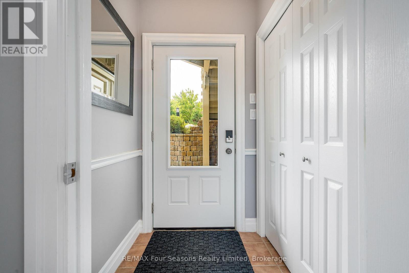 TURN KEY! Embrace the Ultimate in Mountain Living! Welcome to this meticulously cared for exceptional ground-floor 2-bedroom, 2-bathroom unit (1083 sf) in the highly desirable Snowbridge community. A rare opportunity to own a prime property that combines lifestyle, location, and investment potential. Bathed in natural light, this spacious unit offers direct access to green space, perfect for families and outdoor enthusiasts. Historic Snowbridge is an ideal choice whether you're looking for a vacation getaway, income property, or both. Unbeatable Location: Just steps from the community pool, walking distance to the Village, Beach Access on Georgian Bay (drive or shuttle) and immediate access to the shuttle stop for the Blue Mountain ski hills~ no need to worry about parking. Beautifully positioned along the Monterra Golf Course (4th hole), this unit offers serene, country-like views. Snowbridge is known for its peaceful charm while being only minutes from the Village at Blue Mountain, a vibrant destination filled with shops, restaurants, and year-round entertainment. Endless Recreation at Your Doorstep: From skiing and snowboarding in winter to golfing, hiking, biking and beach days in summer, this four-season community offers endless outdoor activities. Discover Downtown Collingwood and Thornbury~ boutique shops, restaurants and cafes featuring culinary delights, art, culture and all that Southern Georgian Bay has to offer. Take a stroll along the waterfront or in the countryside. Visit a vineyard, orchard or micro-brewery and experience the sparkling waters of Georgian Bay. Community amenities include pool access and trail networks. Whether you're seeking a relaxing retreat, a smart investment, or a base for adventure, this Snowbridge property delivers on all fronts. Your mountain lifestyle begins here. Addition Details~ High Efficiency Navian On Demand Water Heater/ Domestic and Hydronic Heat (2019). Cable TV/Highspeed Internet Included in Condo Fees. A/C 2025.
