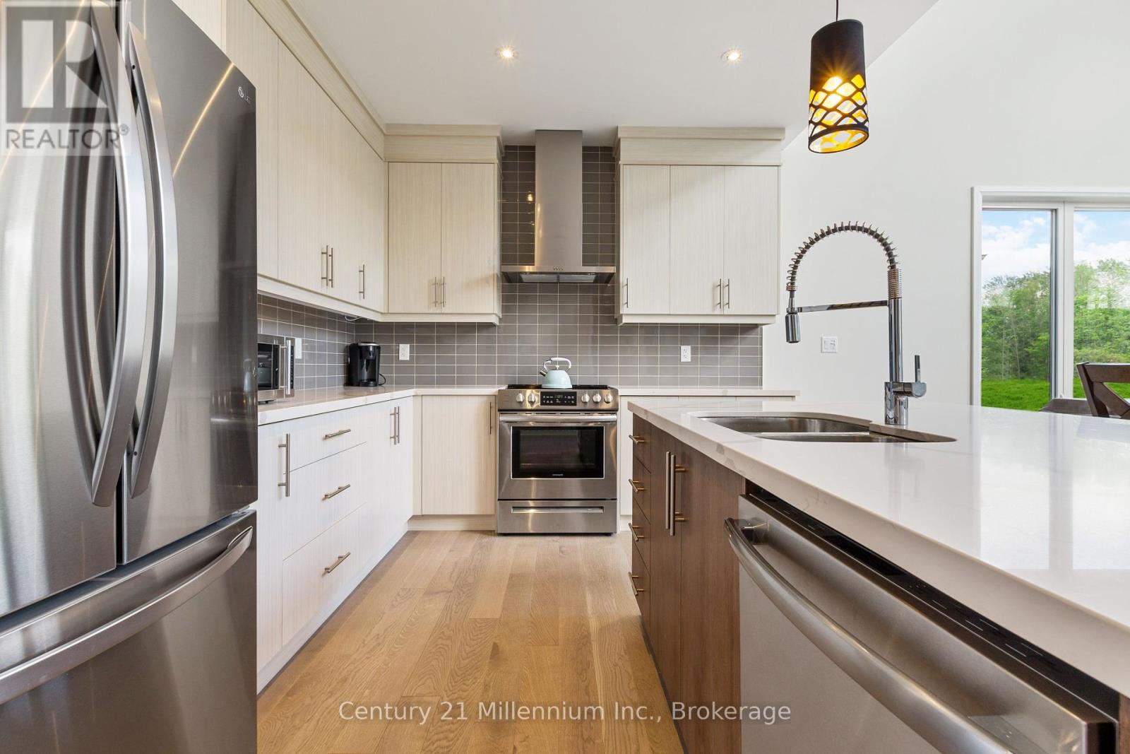 FURNISHED SKI SEASON RENTAL(available for a 6-12 month lease)- A rare 5 Star Oasis located on Stillwater Crescent in The Blue Mountains. For the discerning client, minutes from Blue Mountain Village and Ski Resort by foot or year-round private pick-up and drop-off shuttle service. (Restaurants, Bars, Starbucks, Clothing, Art Stores, Spa, Yoga, and unlimited entertainment, all year). 10-minute walk to Scandinave Spa with private entrance. Minutes to Craigleith, Alpine, and Osler Ski Club. Soaring 25-foot cathedral ceiling with white oak floor-to-ceiling window overlooking the natural forest and a 5-acre private walking trail with ponds. Custom build brand new home (2021) Designer furnished | 4 beds with private ensuite bathrooms | Commissioned Local Artwork Collection-Oil on Canvas | Private home Beautiful bright, airy home: - 1 bedroom/1 Office on main (one double pull out couch and one king) that are kitty-cornered from each other to maximize privacy - 2 bedrooms up ( 2 single and 1 queen) properly separated for privacy. - Professional workstation outside of Great Room and Dining room - Double Car Garage All brand new, top-of-the-line, furnishings, mattresses, and appliances. Quiet Community. Please inquire about pets. December 16th, 2025 onward. Flat Fee off $500/month for Utilities/Snow Removal. Cleaning Fee extra. $5,000 Damage Deposit. SPRING/SUMMER/FALL- $4750 (all inclusive)