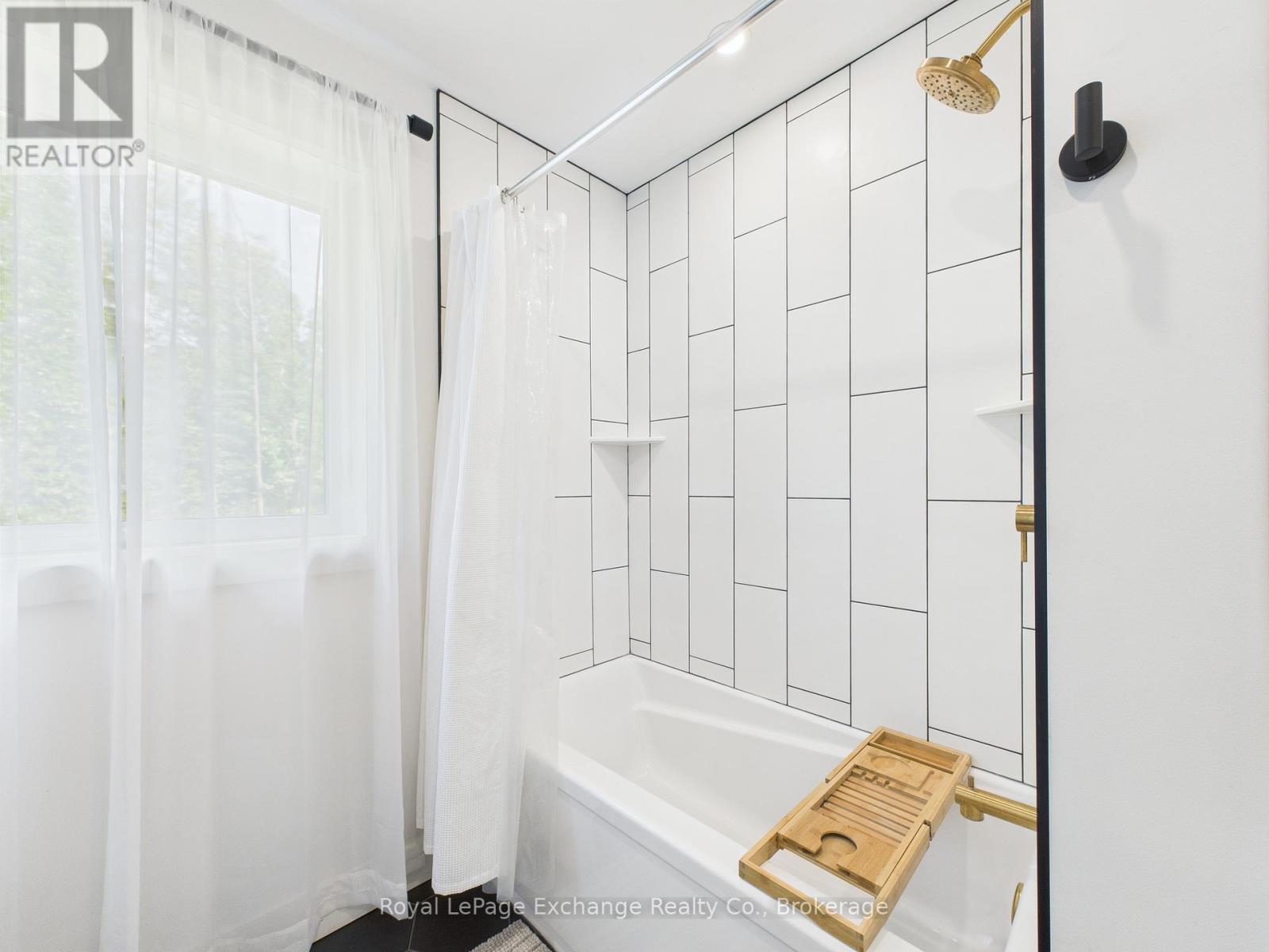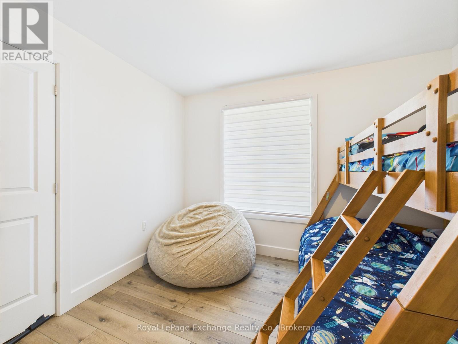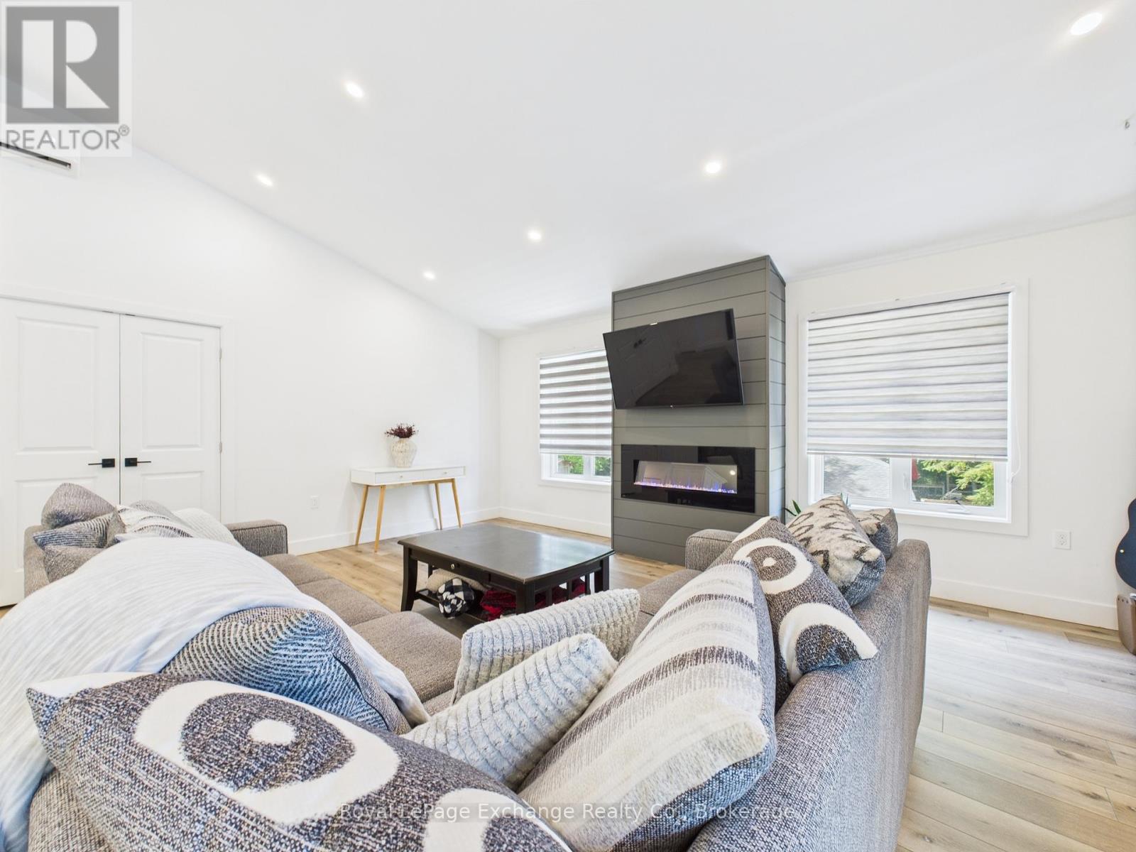 Welcome to 127 Hemlock Street in Point Clark-a stunning modern chalet-style home built in 2021, designed for comfort, style, and convenience. Just 1.1 km from the pristine sandy beaches of Lake Huron, this residence invites you to enjoy a tranquil lakeside lifestyle with the benefits of contemporary living. Enter through the spacious 29' x 22.5' double car garage, beautifully finished with Trusscore paneling and offering ample room for vehicles, tools, or recreational gear. Versatile in design, it can easily transform into a lively retreat with space for a pool table, couches, TV, or ping pong. Behind the garage, an attached storage shed with exterior access provides extra space for seasonal items or workshop needs. A long gravel driveway with a concrete apron welcomes guests and ensures plenty of parking. Inside, the open-concept main living area features vaulted ceilings, abundant pot lights, and a sleek electric fireplace that anchors the room in warmth and style. The high-end kitchen showcases stainless steel appliances, a large double sink, and a practical pot filler, all seamlessly flowing into the dining and living areas. Step out to the 305 sq. ft. covered balcony-ideal for outdoor dining or morning coffee. The ground level includes a bedroom and a stylish three-piece bath for flexible living. Upstairs, discover two generous bedrooms, including a primary suite with a walk-in closet and a three-piece ensuite featuring a tiled shower. A four-piece bath with tiled floors and ample cabinetry completes the upper level. Comfort is ensured year-round with radiant in-floor heating and efficient dual-unit ductless splits for cooling. Just 15 minutes to Kincardine and 30 minutes to Bruce Power, this exceptional home blends lakeside living with modern luxury-a truly unique opportunity in Point Clark.
