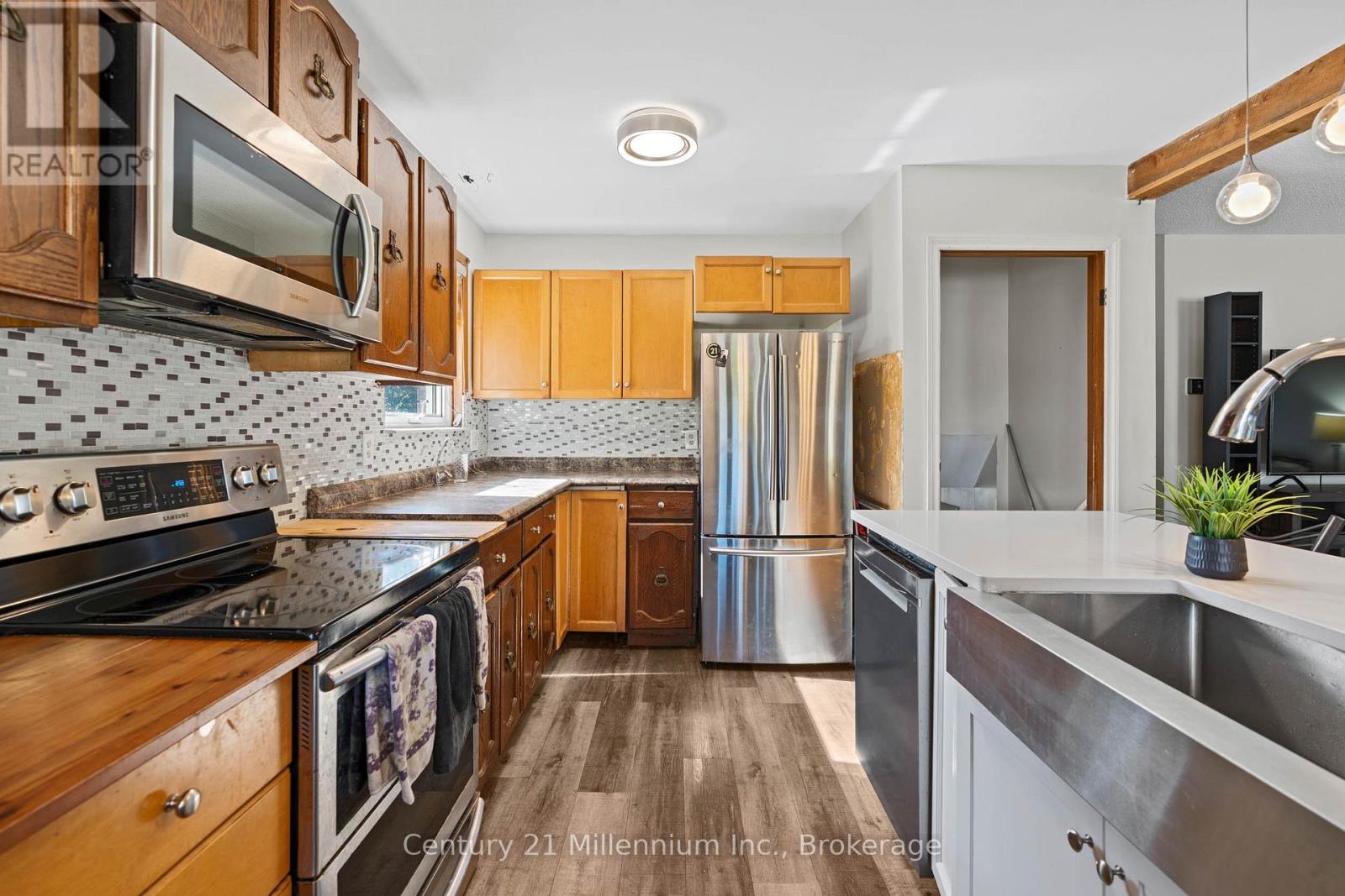 This 4-bedroom, 2-bath backsplit offers incredible value on Owen Sounds sought-after East Side. If you've been looking for a property that's priced right, and that will allow you to do some renovations on that will improve your value, this one is it. Set on a large lot with a detached garage (with hydro), a 150 deep backyard, and a spacious laneway with plenty of parking, this home checks all the boxes for space and location. Step out to your private patio area with a covered pergola and hot tub perfect for relaxing or entertaining on summer evenings. The property features a great layout and solid fundamentals, ready for you to add your own finishing touches and make it truly your own. Recent mechanical updates include a newer furnace and central air system, giving you a strong foundation to build from. Located in a desirable East Side neighbourhood close to Timber McArthur Park, Saint Mary's, schools, the YMCA, transit, and all major amenities this is a complete package of space, value, andopportunity that's hard to beat.