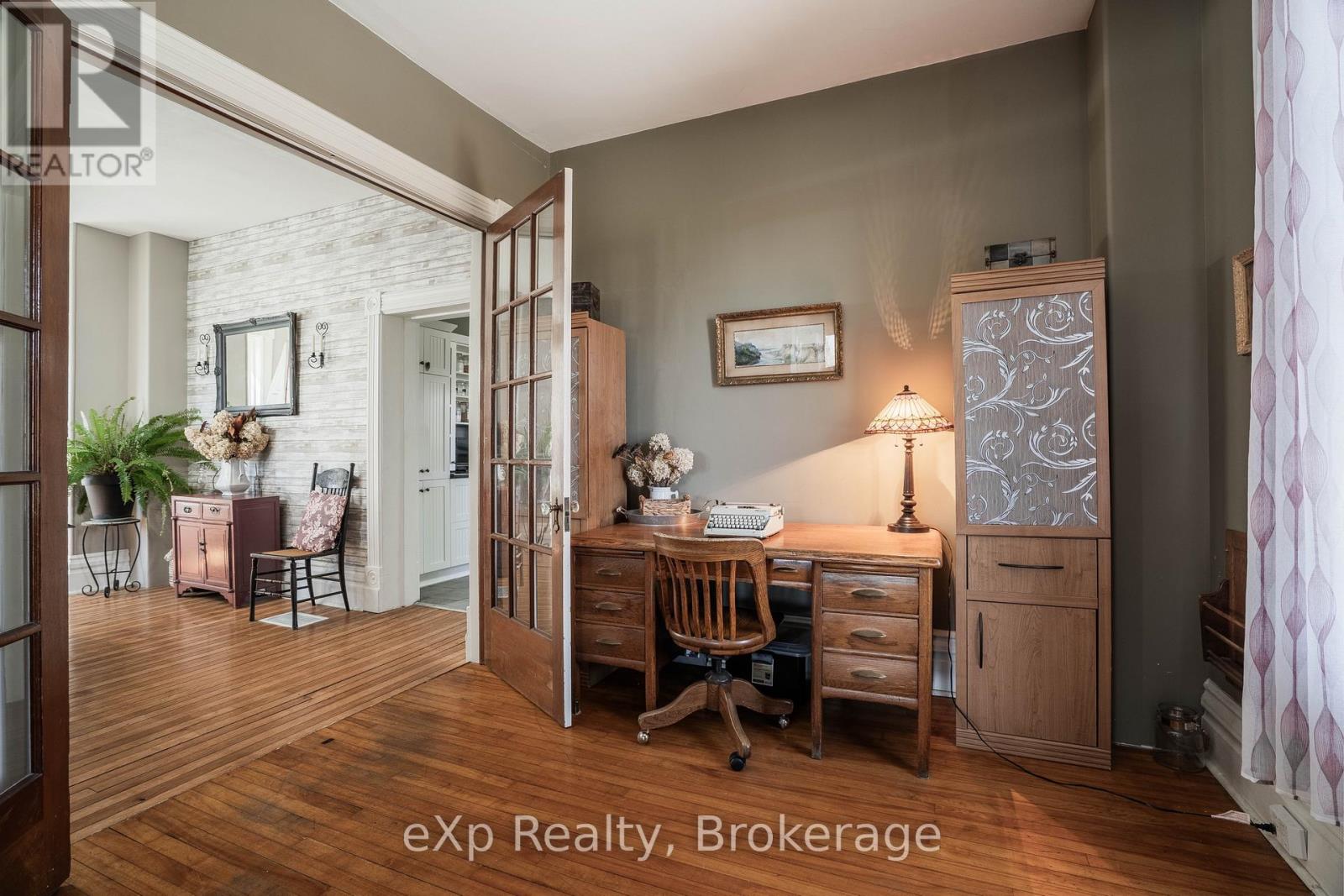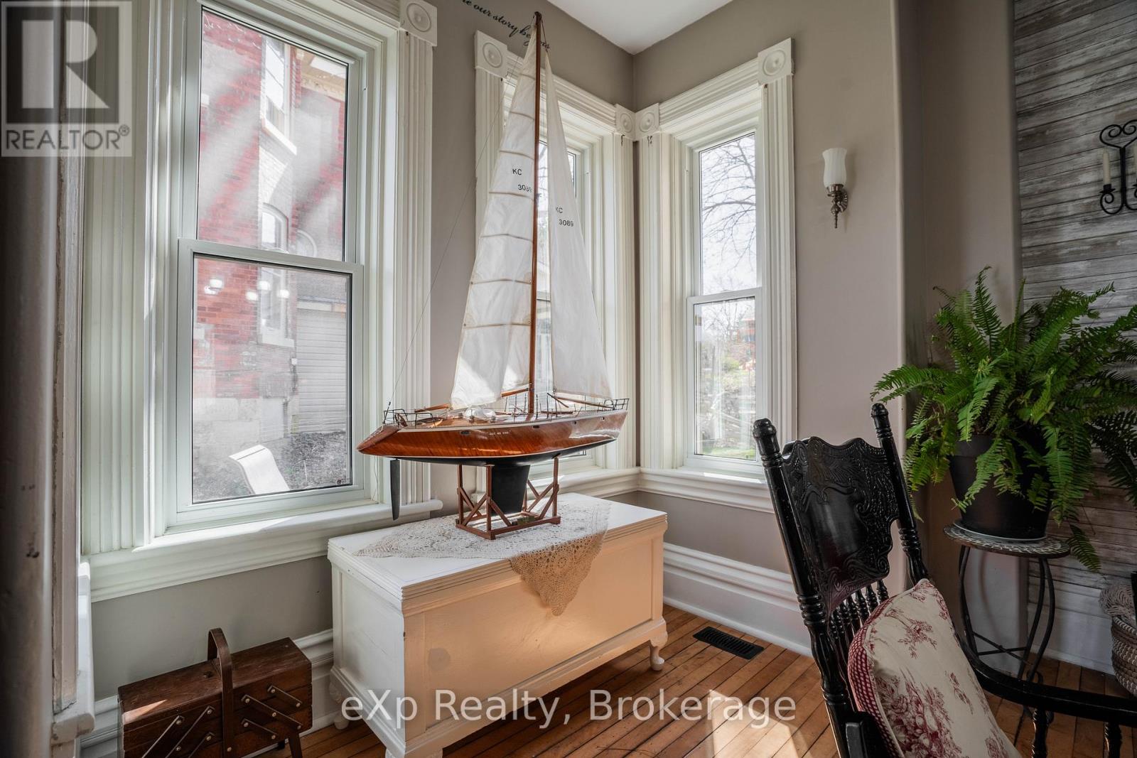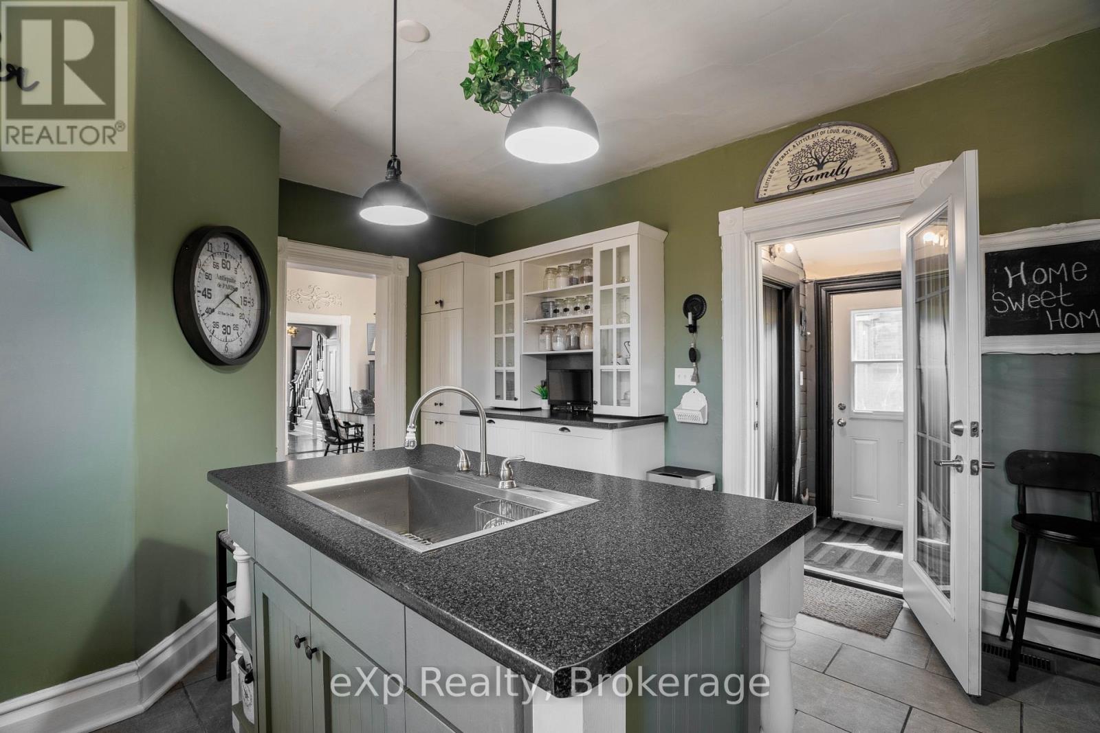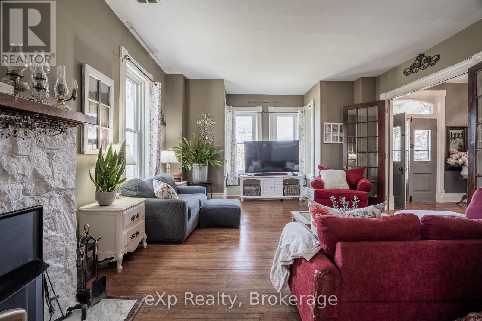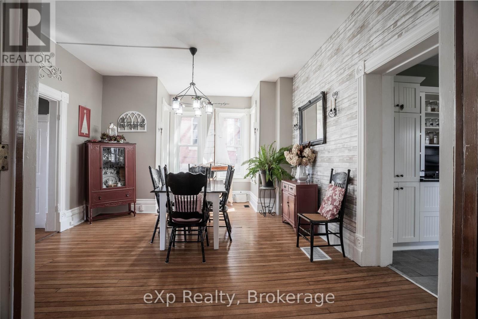This beautiful solid brick century home offers timeless character and modern comfort, nestled in the vibrant core of Wiarton. Featuring 4 spacious bedrooms and 2 bathrooms, this home boasts high ceilings, large windows, and generously sized rooms filled with natural light.The inviting kitchen and dining area are perfect for family meals or entertaining guests. Step outside to enjoy meticulously landscaped grounds, a garden pond, and perennial flower beds; an ideal setting for unwinding and soaking in the refreshing Georgian Bay breeze. Conveniently located within walking distance to shops, restaurants, parks, and all the amenities Wiarton has to offer.