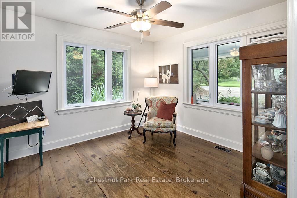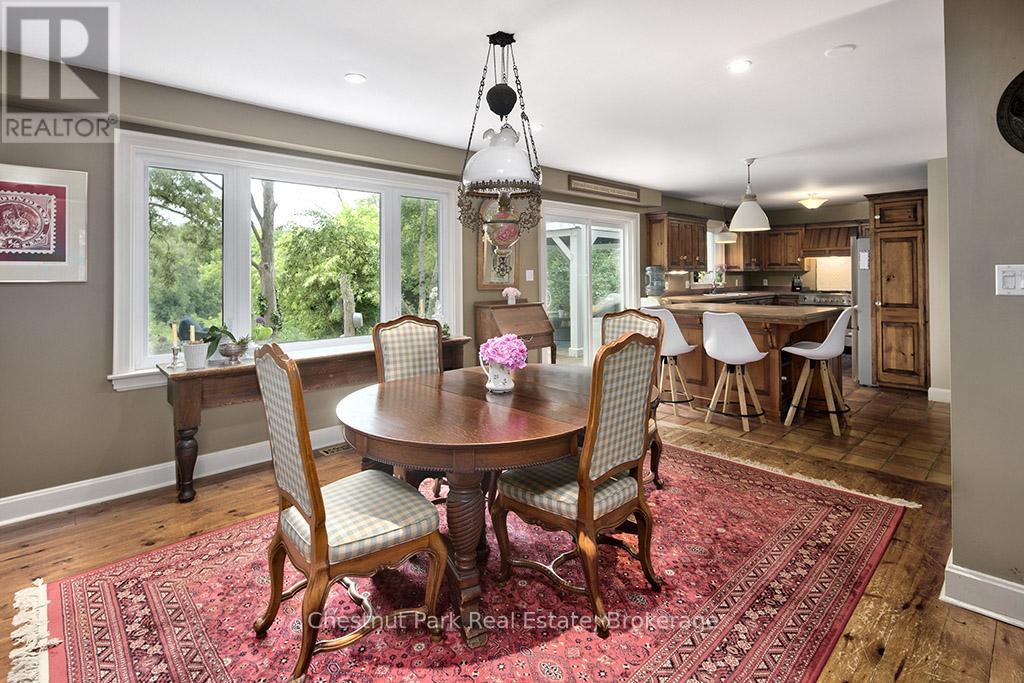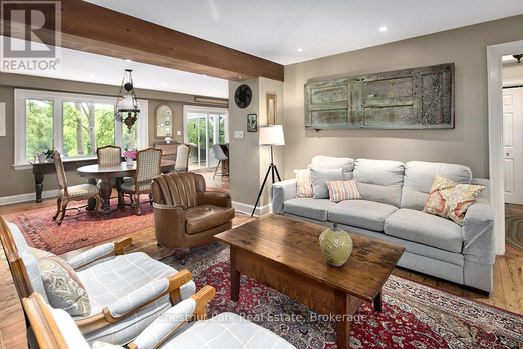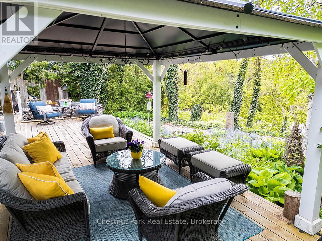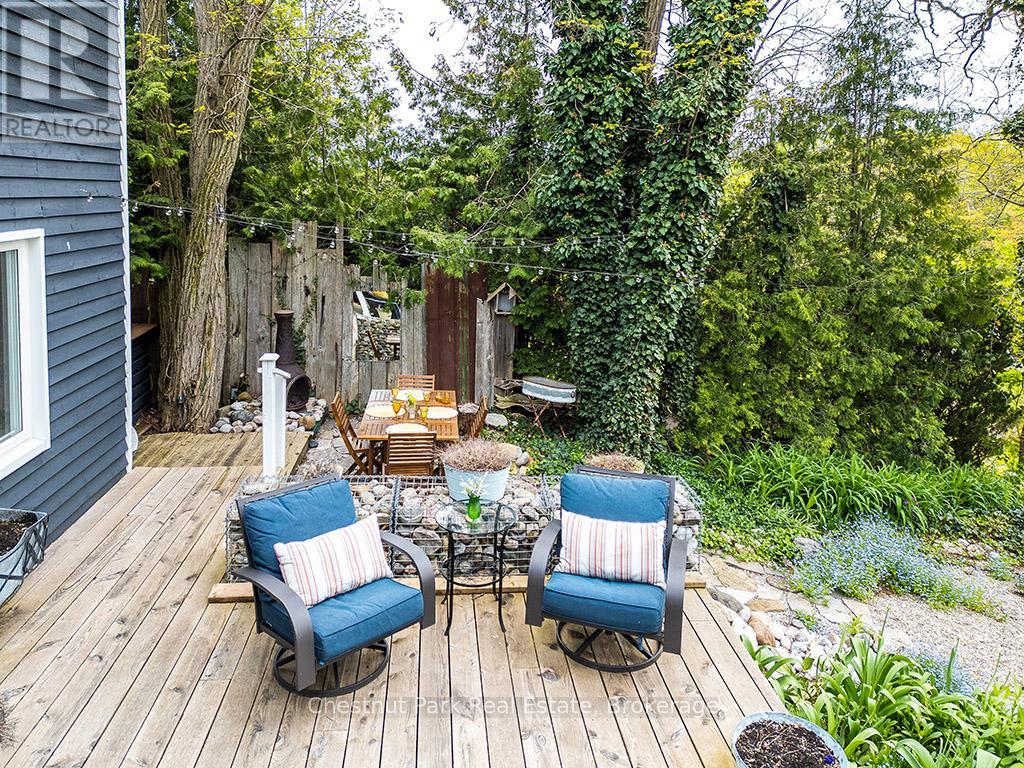 Charming Cape Cod Home on the Beaver River! 114 Clark Street, Clarksburg. Welcome to this idyllic 2658 sq ft 4-bedroom, 3-bathroom Cape Cod-style home perfectly nestled on the banks of the serene Beaver River in the heart of Clarksburg. Set on a beautifully landscaped lot, this property is a true retreat, featuring an enchanting English garden and thoughtfully designed outdoor spaces ideal for alfresco dining under the stars. Step inside to discover a warm and inviting interior where comfort meets character. The main floor offers a spacious open-concept layout with a cozy wood-burning fireplace, ideal for family gatherings or quiet evenings at home. Large windows throughout frame stunning river views, bringing the outdoors in and filling each room with natural light. The country-style, Pinetiques kitchen offers charm and functionality, the adjoining outdoor lounge area offers the perfect setting for enjoying your morning coffee or evening glass of wine, accompanied by the gentle sound of the flowing river. Upstairs, three generous bedrooms provide plenty of space for family and guests, and the two well-appointed bathrooms offer both convenience and privacy. Outside, the magic continues with lush perennial gardens, mature trees, and a private outdoor dining area overlooking the river an entertainers dream. Paddleboards, kayaks, and nature await just steps from your backyard. Located within walking distance to Clarksburg's art galleries, shops, the Clendenan Dam trail system, and only minutes from Thornbury's amenities and Georgian Bay, this property offers a rare blend of peaceful living and vibrant community access. Don't miss the opportunity to make this riverfront gem your forever home.