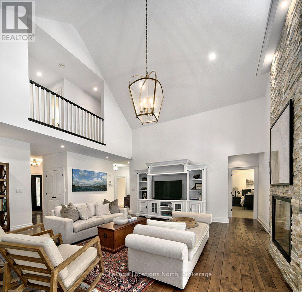 Beautiful Lora Bay home, situated along the picturesque 4th hole of the golf course, this 6-bedroom, 3.5-bath residence is surrounded by meticulously landscaped perennial gardens. Many updates throughout including freshly painted main floor and upper hall walls and trim (2023) and finished lower level (2017).The main floor grand cathedral ceiling adds a sense of openness and sophistication, complemented by a double-sided gas fireplace that warms both the living room and a charming sunroom. Gleaming hardwood floors flow seamlessly throughout, enhancing the home's timeless appeal. The spacious primary suite offers a spa-like ensuite bath and 2 good sized walk in closets!The kitchen is a culinary enthusiast's dream, featuring a convenient walk-in pantry with updated cabinetry and electrical and wine/beer fridge (2023), ample dining space, in-floor heating and granite countertops. A formal dining room provides a great setting for hosting gatherings with family and friends, ensuring that every occasion is memorable.Upstairs, three additional bedrooms and a well-appointed bath provide flexibility for family or guests.The basement, equipped with hydronic radiant in-floor heating and oversized windows features 2 bedrooms, rec room and 3pc bathroom.Step outside to discover your own private oasis. Dine al fresco under the freshly painted pergola (just rebuilt in Spring 2025), surrounded by the beauty of the meticulously landscaped stone patios. The thoughtful design of the outdoor space creates the perfect setting for relaxation and entertainment and the pergola offers shade during hot summer days.Located just minutes from Thornbury, Lora Bay offers a host of amenities, including a golf course, a delightful restaurant, a members-only lodge, a gym, and two beautiful beaches. Embrace the sense of community in this welcoming enclave, where every day feels like a retreat.