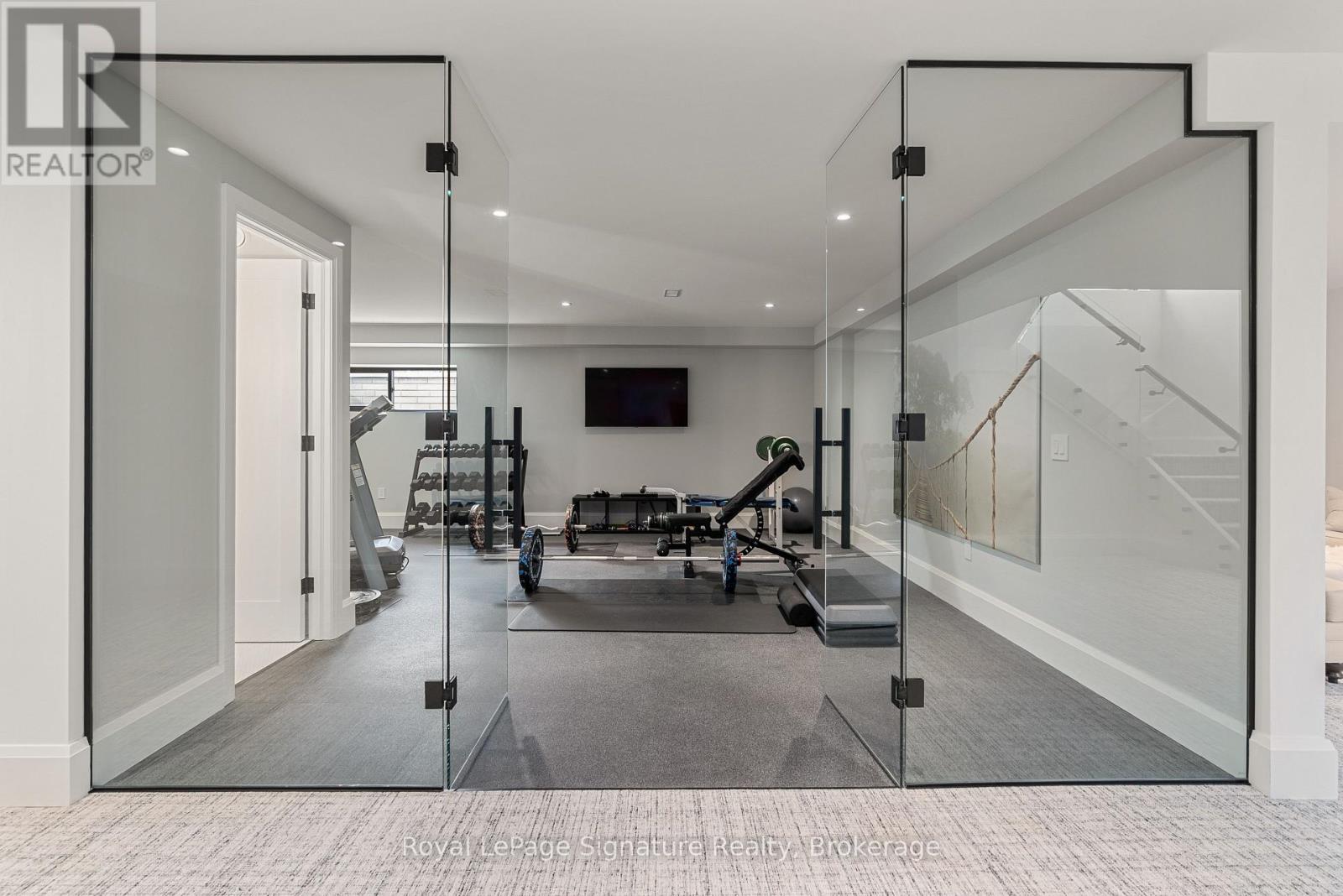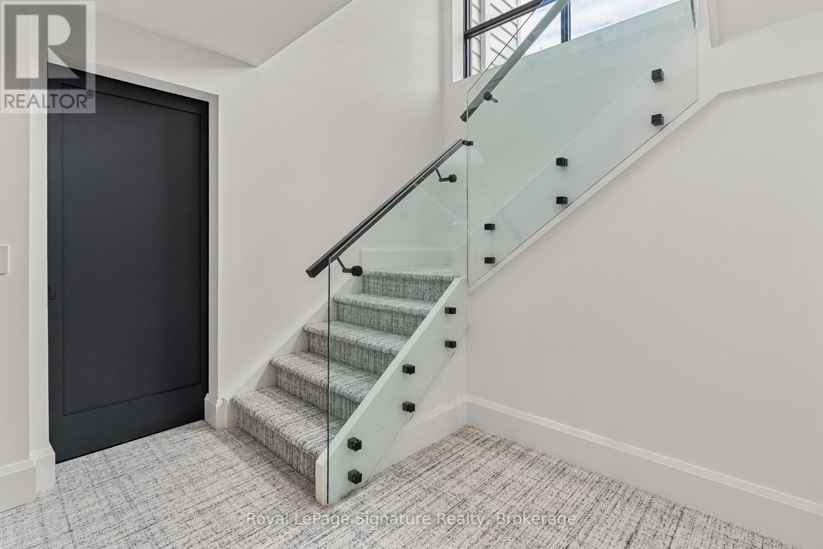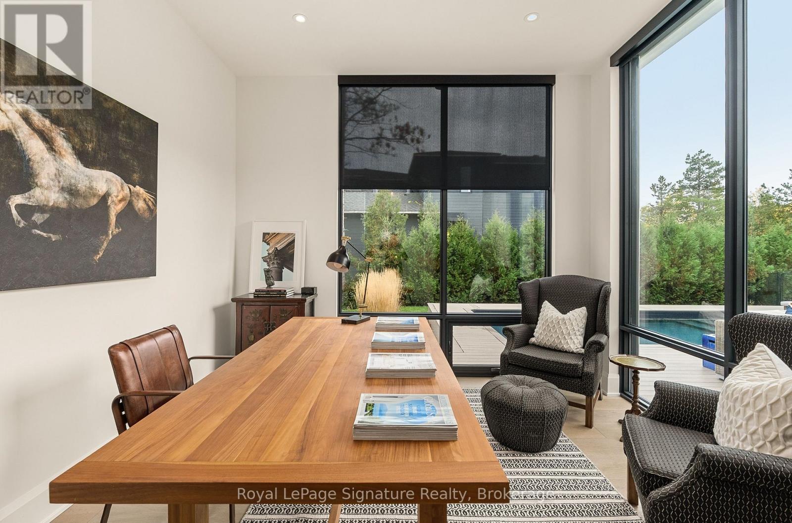Nestled in the exclusive Peaks Bay community, this stunning modern bungalow offers over 5,000 square feet of finished living space, thoughtfully designed for comfort, style, and connection to nature. This custom-built home reflects craftsmanship and quality in every detail - from vaulted ceilings and Restoration Hardware fixtures to the warmth of wide-plank hardwood floors and a double-sided limestone fireplace that anchors the heart of the home.The open-concept kitchen, dining, and great room flow effortlessly onto an expansive 1,200-square-foot deck - perfect for entertaining after a day on the slopes or relaxing by the saltwater pool on a summer afternoon. The custom kitchen features Hanstone quartz surfaces, JennAir appliances, a walk-in pantry, and a servery with a wine fridge, making it ideal for gatherings with family and friends. The primary suite is a true sanctuary with a spa-like ensuite, his-and-hers showers, and a freestanding tub. Three additional bedrooms, an office with floor-to-ceiling windows, and a finished lower level with a gym and full bath provide space for everyone to unwind. Set on a beautifully landscaped lot between the mountains and the bay, this home captures the essence of the Blue Mountains lifestyle. Walk or bike to the crystal-clear shores of Georgian Bay, enjoy skiing at nearby Georgian Peaks, Alpine, Craigleith, and Blue Mountain resorts, or explore the area's hiking and cycling trails right from your door. Whether you're hosting apr\u00c3\u00a8s-ski evenings by the fire or quiet mornings with coffee on the deck, 101 Deer Lane is the perfect place to call home.