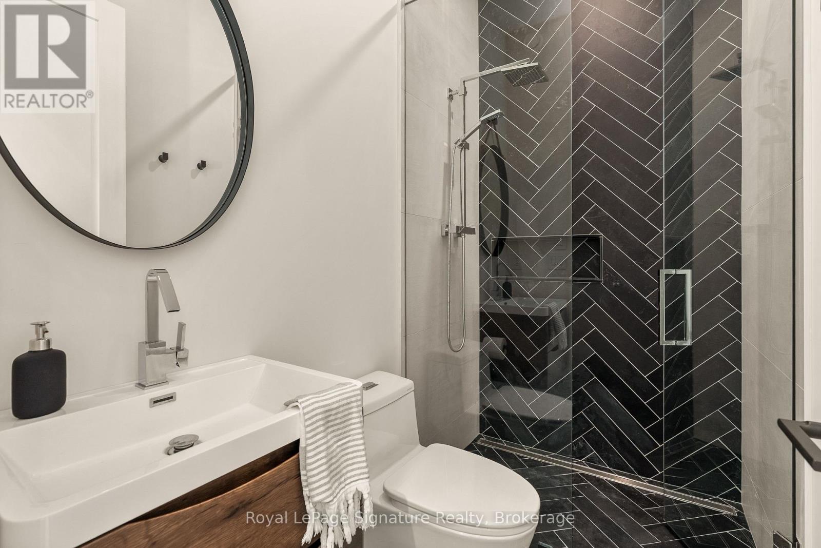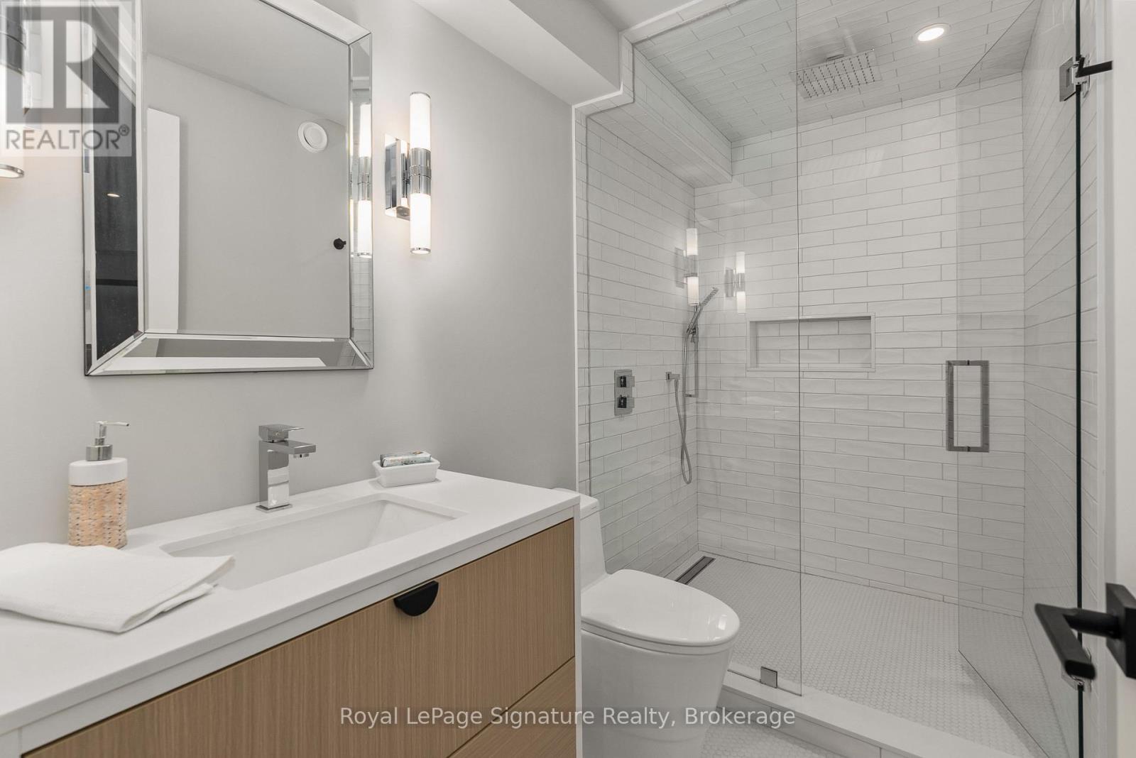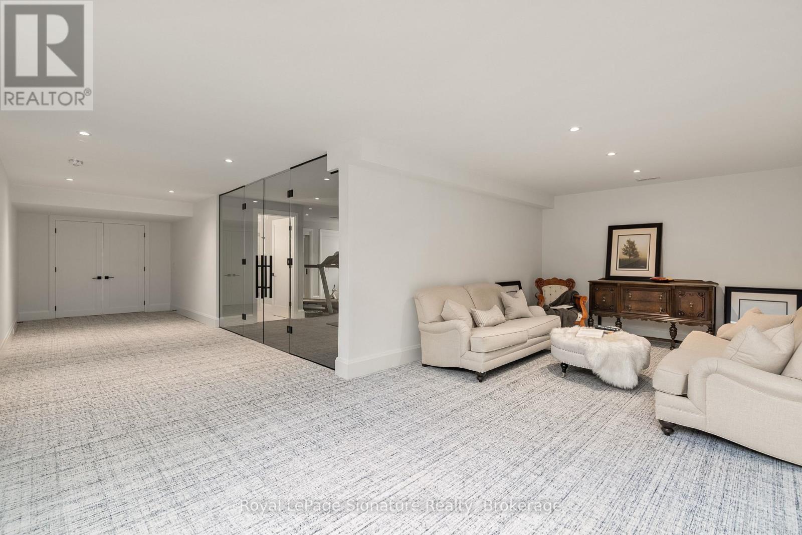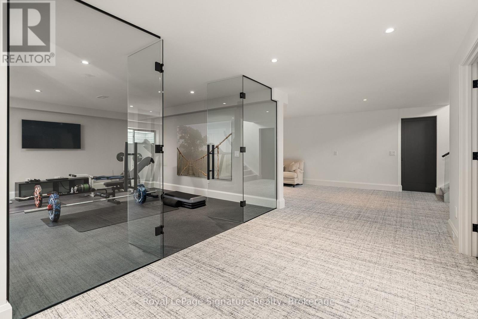 Nestled in the exclusive Peaks Bay community, this stunning modern bungalow offers over 5,000 square feet of finished living space, thoughtfully designed for comfort, style, and connection to nature. This custom-built home reflects craftsmanship and quality in every detail - from vaulted ceilings and Restoration Hardware fixtures to the warmth of wide-plank hardwood floors and a double-sided limestone fireplace that anchors the heart of the home.The open-concept kitchen, dining, and great room flow effortlessly onto an expansive 1,200-square-foot deck - perfect for entertaining after a day on the slopes or relaxing by the saltwater pool on a summer afternoon. The custom kitchen features Hanstone quartz surfaces, JennAir appliances, a walk-in pantry, and a servery with a wine fridge, making it ideal for gatherings with family and friends. The primary suite is a true sanctuary with a spa-like ensuite, his-and-hers showers, and a freestanding tub. Three additional bedrooms, an office with floor-to-ceiling windows, and a finished lower level with a gym and full bath provide space for everyone to unwind. Set on a beautifully landscaped lot between the mountains and the bay, this home captures the essence of the Blue Mountains lifestyle. Walk or bike to the crystal-clear shores of Georgian Bay, enjoy skiing at nearby Georgian Peaks, Alpine, Craigleith, and Blue Mountain resorts, or explore the area's hiking and cycling trails right from your door. Whether you're hosting apr\u00c3\u00a8s-ski evenings by the fire or quiet mornings with coffee on the deck, 101 Deer Lane is the perfect place to call home.