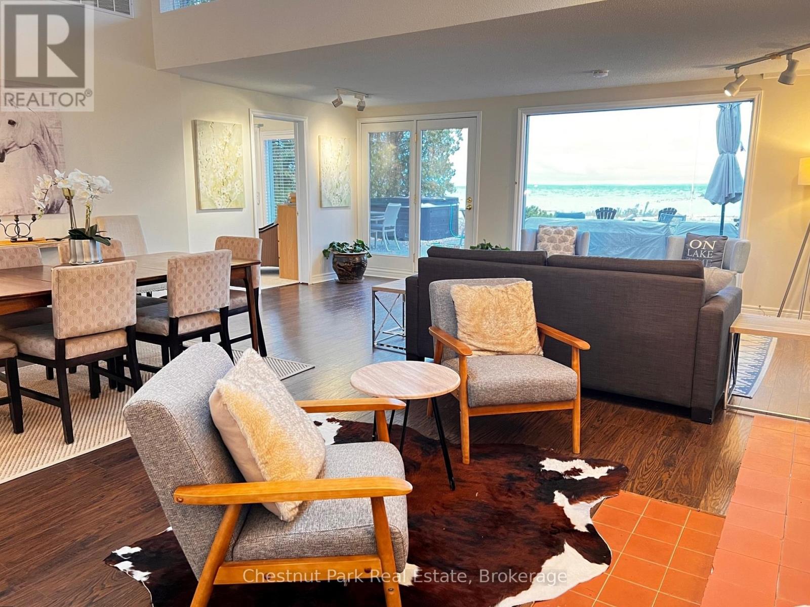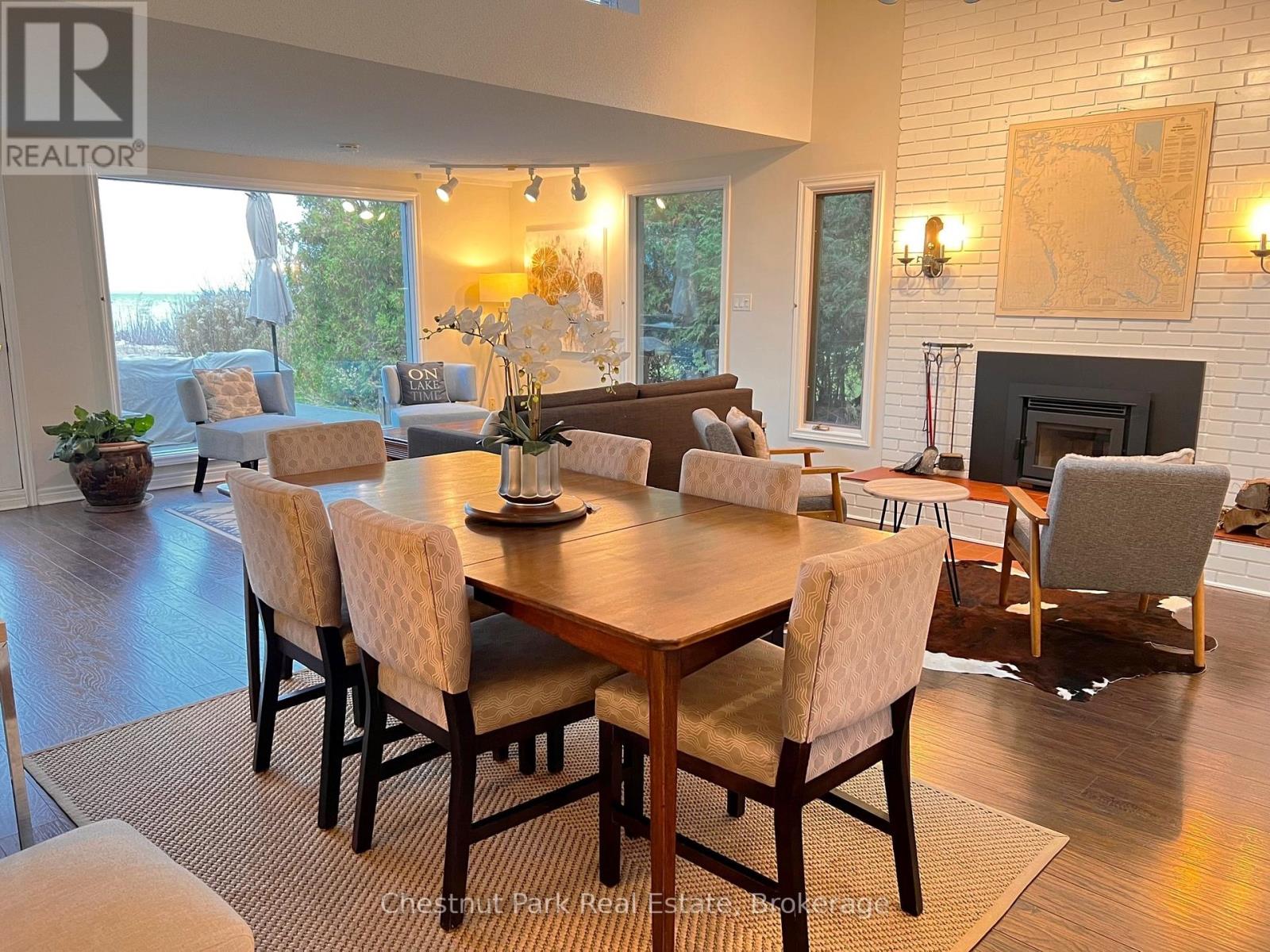WATERFRONT SEASONAL LEASE IN COLLINGWOOD! Located directly on the shores of Georgian Bay, this charming 3-bedroom, 2-bath waterfront home offers approximately 1,300 sq. ft. of comfortable, year-round living. The bedroom layout includes two queen beds and two single beds, making it ideal for families or guests. Perfectly situated just minutes from Blue Mountain, this property offers the best of every season! Enjoy golfing and boating in the summer, skiing in the winter, and endless outdoor recreation year-round. Inside, enjoy a bright open-concept layout featuring a cozy wood-burning fireplace, a dining area with seating for six and stunning bay views, and a well-equipped kitchen with a built-in oven and cooktop. Step outside to a large waterfront deck complete with a BBQ, outdoor furniture, and a firepit perfect for relaxing and entertaining. The surrounding area offers endless activities, including scenic hiking and biking trails, boutique wineries, theatre, shopping, spas, and excellent local dining all just minutes away. Parking: One small vehicle fits in the detached garage (with extra storage), plus ample driveway parking. Please note: This property is not available for annual lease.