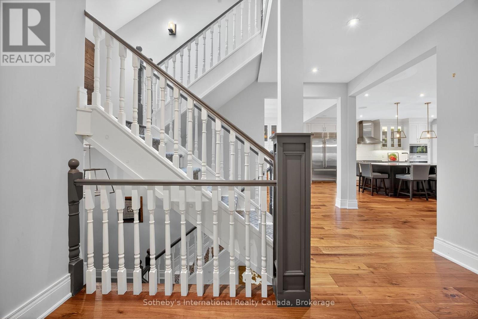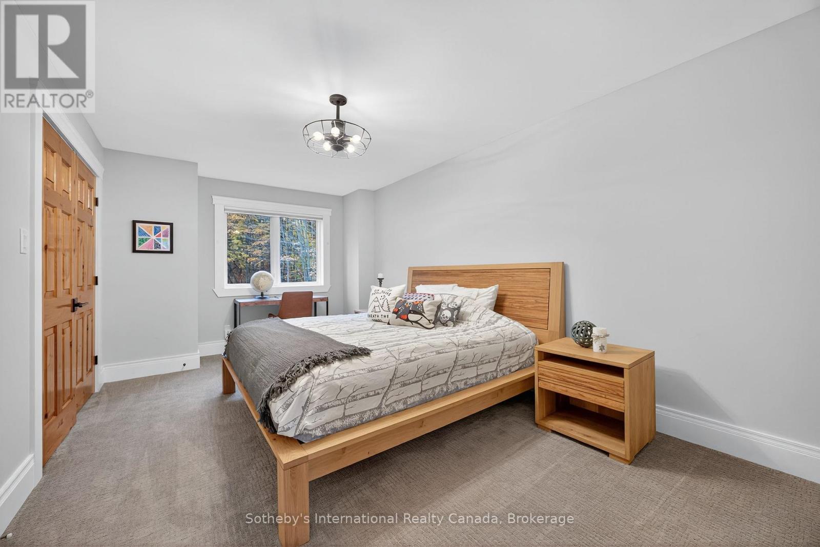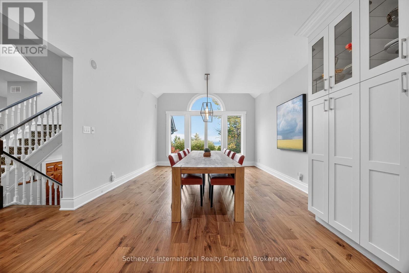 5500+ sq ft Luxury Mountain Retreat at the Base of Craigleith & Alpine Ski Clubs. Experience four-season resort living at its finest in one of Ontario's most prestigious ski community locations - a rare property where you can walk to the slopes or ski right from your door. Nestled on a private wooded lot with a soothing creek, fire pit, putting green, and picturesque bridge path, this residence offers the perfect balance of natural beauty and refined luxury.Boasting views of the ski hills and Georgian Bay, this fully renovated (2016) home features soaring ceilings, expansive windows, and three fireplaces-including a floor to ceiling stone gas fireplace in the great room, a cozy wood-burning fireplace in the upper living area, and additional gas fireplace in the family room creating a relaxing ambiance in multiple areas . The gourmet kitchen is a chef's dream, featuring high-end appliances, an oversized island with seating for eight. The open-concept dining area, framed by expansive bay views, comfortably seats ten, beer taps & multiple wine/beverage fridges-perfect for hosting apr\u00c3\u00a8s-ski dinners and family gatherings. Home includes a games room, gym, and lower-level walkout. After a day on the slopes, enter through the grand mudroom with custom cabinetry and heated floors, offering seamless comfort and function. Main floor primary suite opens directly to the back deck and features a spa-like ensuite with a glass shower, soaker tub, and dual sinks. Additional luxuries include two laundry rooms with stainless steel front-load appliances and whole-home speaker system.Outdoors, enjoy beautifully landscaped grounds with a winding, illuminated driveway, a hot tub overlooking the bay, and a basketball hoop. The steel roof adds enduring quality and peace of mind.Whether you're skiing, hiking, snowshoeing, or teeing off at nearby golf courses, this is the ultimate four-season lifestyle. Just minutes from Blue Mountain Village, Thornbury, and Collingwood's shops and bistros.