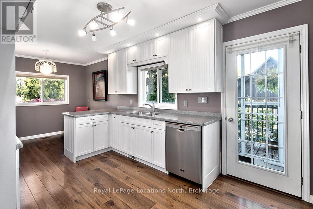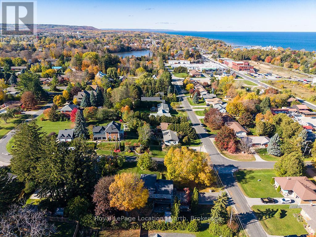 Lovingly built and cherished by the same family for over 50 years, this is the first time this wonderful Thornbury home has been offered for sale. Set on a generously sized corner lot in one of Thornbury's most desirable neighbourhoods, the property is surrounded by mature trees, lush gardens, and natural privacy - a true in-town oasis. Ideally located, enjoy a short walk to the waters of Georgian Bay at Bayview Park, featuring a brand new play structure, swings, and open green space for afternoons by the bay, as well as steps to the Beaver River Trail system. This four-bedroom family home is ready for its next chapter.The spacious driveway offers parking for the whole family, along with an attached garage for convenience during the winter months. Inside, the four-level back split layout provides functional and flexible living spaces for every stage of family life. The main level features inside access to the garage and a large, inviting family room with expansive windows - perfect for a rec room, kids' hangout, or cozy movie nights. Upstairs, the second level includes a generous bedroom, a modern 3-piece bath with glass shower, a laundry room, and ample storage.The third level opens to a bright and welcoming living room with a beautiful bay window overlooking the treetops, creating a warm, elevated atmosphere. Step out to the spacious outdoor terrace above the garage - ideal for morning coffee or evening entertaining. An updated kitchen with timeless white cabinetry, ample storage, and an eat-in dining area completes this level. On the top floor, you'll find three excellent-sized bedrooms and a generous 4-piece bath, each enjoying abundant natural light and views of the surrounding greenery.Outside, the property shines with mature landscaping, vibrant gardens, and a charming garden shed for tools and toys. Just minutes from downtown Thornbury shops and restaurants, parks, schools, and trails, this is a rare opportunity.