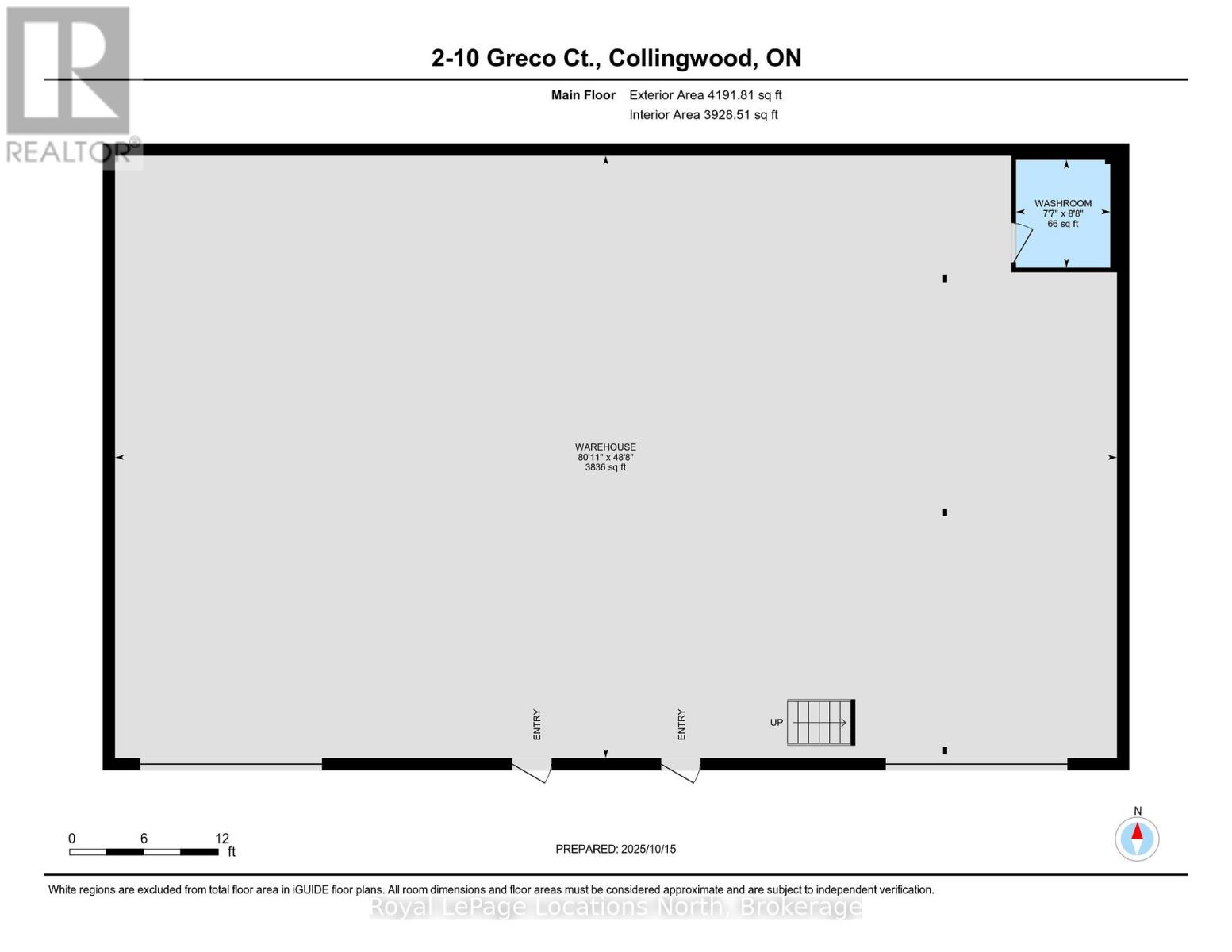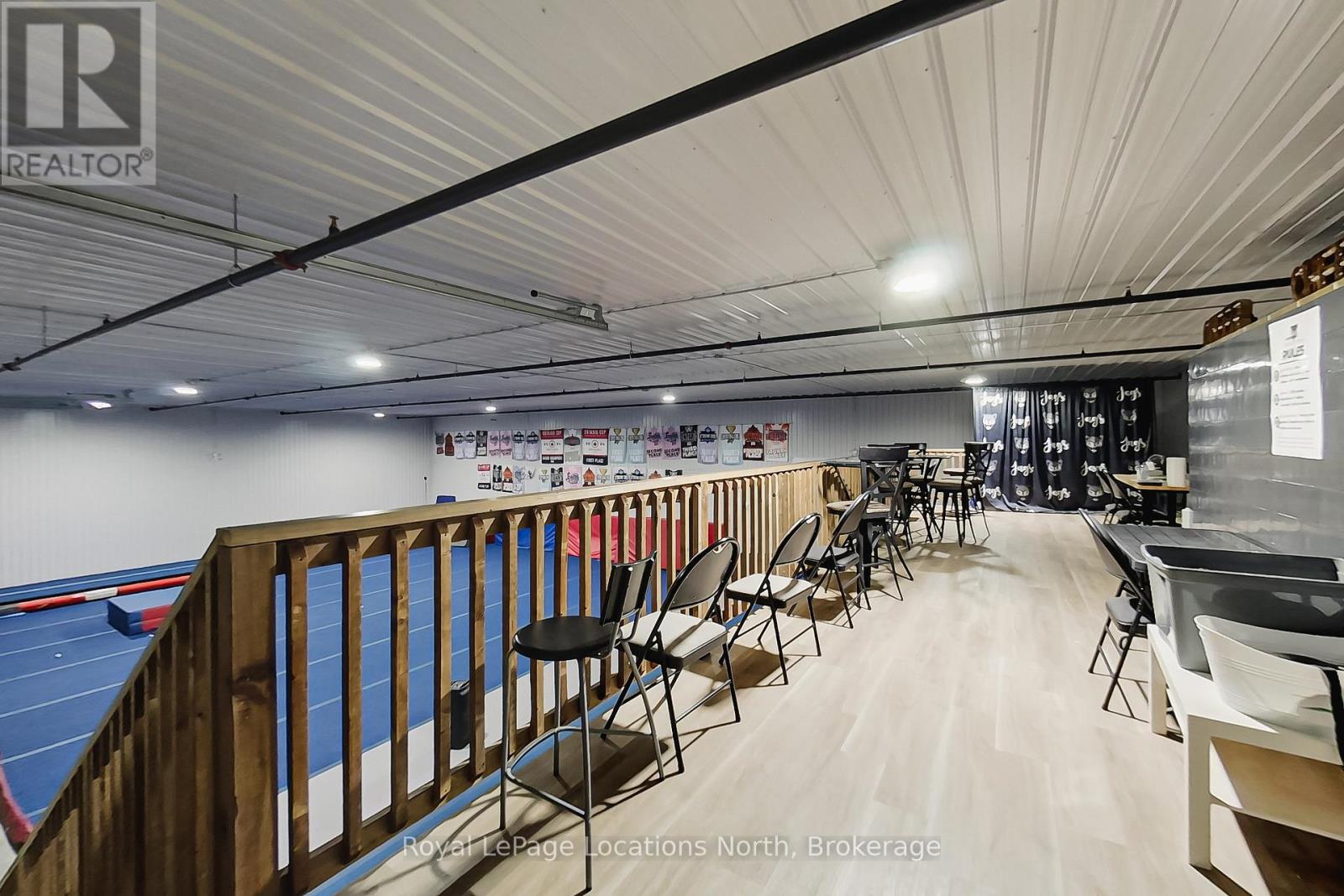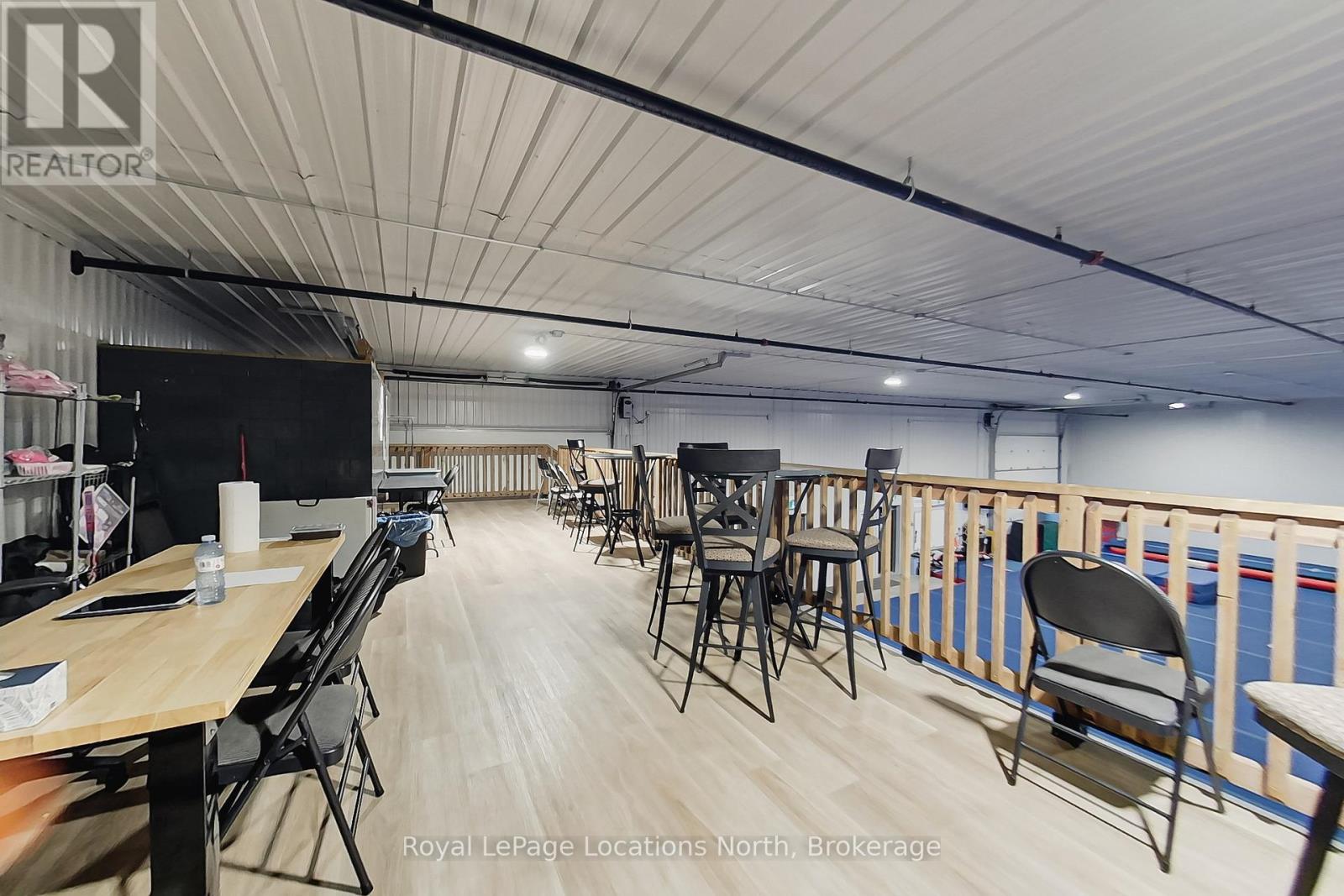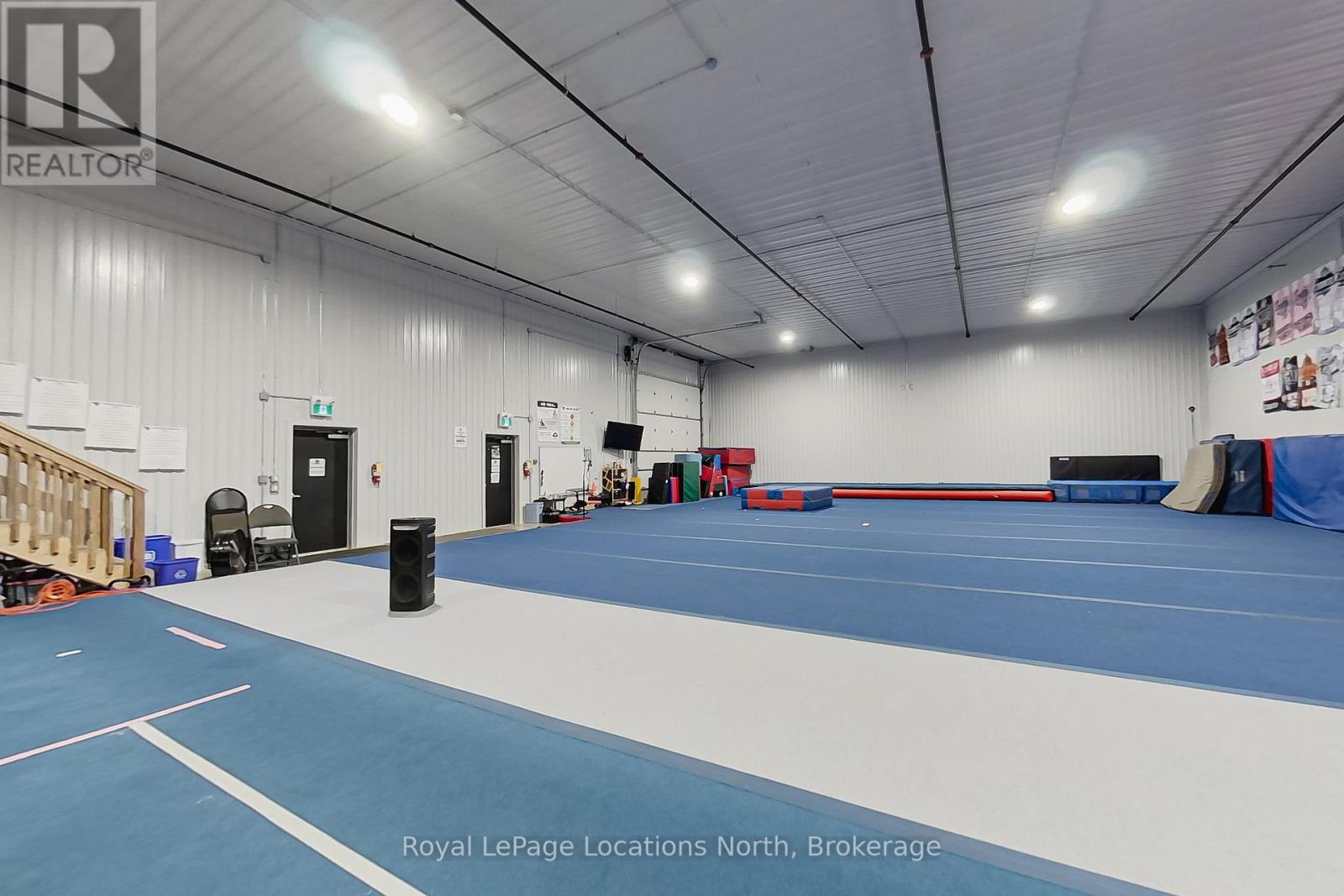 Available for lease from MILLGAR Developments, this premium industrial unit is ideally located on the highly sought-after Greco Court, just off Mountain Road in Collingwood, offering excellent accessibility and professional appeal for a wide range of permitted uses under flexible M5 zoning. The unit features 4,191.81 square feet of main-floor industrial space with 18-foot clear ceilings, two 14' x 14' drive-in bay doors, two man-door entrances, and energy-efficient in-floor heating. Currently configured as a large open-concept gymnasium, the main space remains largely untouched and ready to accommodate a variety of business visions. A functional layout supports efficient operations, while an additional 715.19 square feet @18.50 /sq ft on the second-level mezzanine offers versatile space suitable for a viewing area, office, or other business needs. Other available option is to take half the unit and Owners would build division wall.