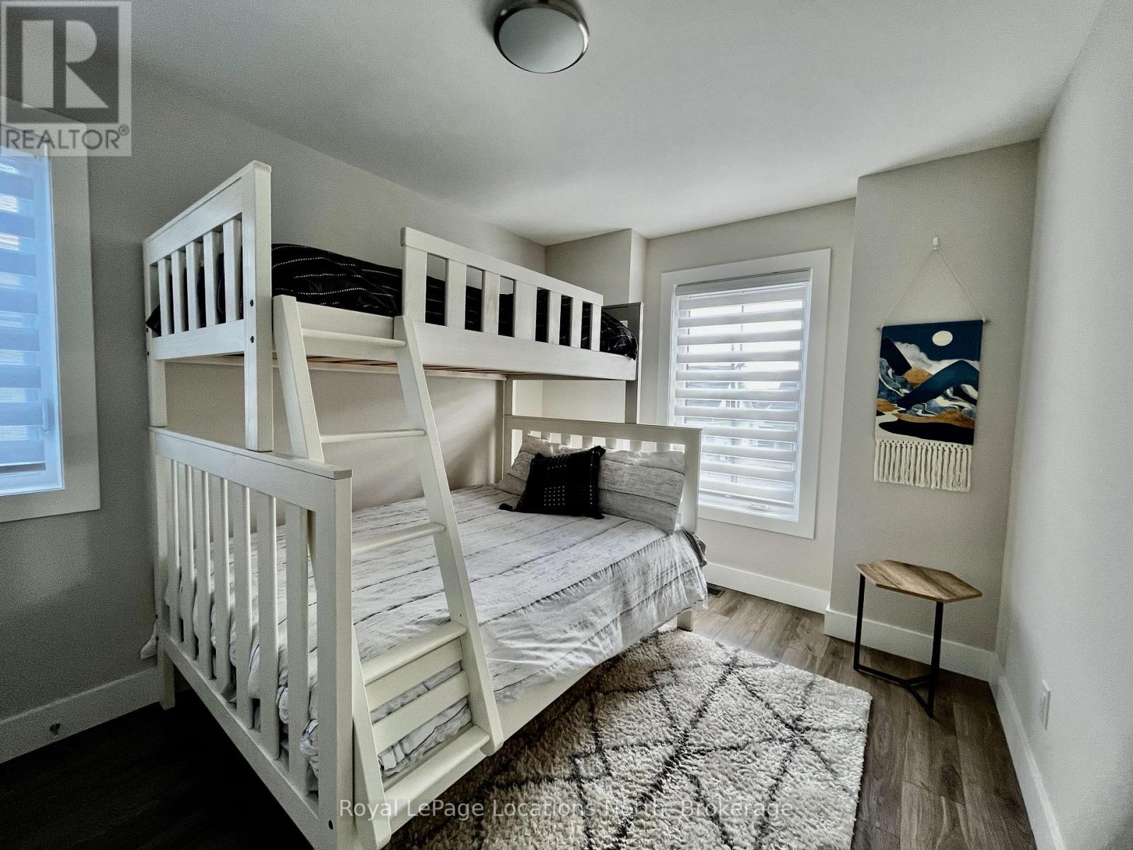 LAST MINUTE SKI SEASON or Escape to Windfall in this fully furnished 3-bedroom, 3.5-bath home nestled at the base of Blue Mountain. Enjoy a prime location just steps to the Village, close to Georgian Bay trails, beaches, and area attractions. The open-concept kitchen and living area is perfect for relaxing or entertaining, with a BBQ on the deck and a rec room featuring foosball. The upper level offers a spacious primary bedroom with ensuite and walk-in closet, a second bedroom with a double bed, a third with bunks, and convenient upper-floor laundry. Includes access to "The Shed" amenities: outdoor hot and cold pools, sauna, and fitness room. Lockable garage for sporting equipment and parking for two cars. Utilities (gas, hydro & water) and departure cleaning are extra; a $2,500 utility and damage deposit is due 21 days prior to occupancy. No pets or smoking (allergies).