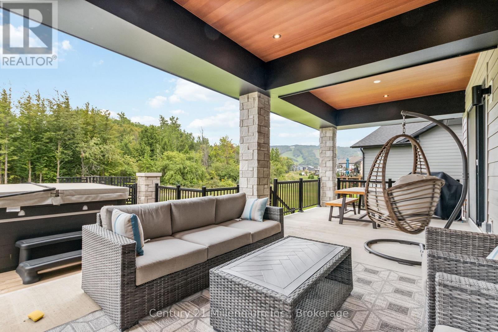 PREMIUM LOT | $340K IN UPGRADES | FULLY FURNISHED | HOT TUB | SHUTTLE TO VILLAGE! Experience the pinnacle of four-season luxury in this brand-new "Chutes" model located on a premium lot in the prestigious Blumont community. Just steps from the action and serviced by an on-demand shuttle to Blue Mountain Village, this stunning chalet offers a rare combination of resort convenience and residential elegance.The interior impresses with striking vaulted ceilings that soar from the foyer to the rear lodge room, creating an expansive, light-filled atmosphere. Designed as an entertainer's dream, the gourmet kitchen features a large central island flowing seamlessly into the dining area. For the active family, a convenient main-floor mudroom provides ample gear storage. Transition outdoors to your private covered loggia, a year-round sanctuary featuring a cozy gas fireplace and a private hot tub-the ultimate spot for apr\u00c3\u00a8s-ski relaxation.This premium residence comes fully furnished and turnkey, thoughtfully configured to accommodate large groups with 6 spacious bedrooms and 7 beds (3 Kings, 2 Queens, 1 Double, 1 Twin). The upper level is dedicated to rest with four generous bedrooms, while the fully finished lower level serves as the ultimate entertainment hub. This level features a massive recreation and games room equipped with a pool table and foosball table (both included), a stylish wet bar, two additional bedrooms, and a full bath.Beyond the home, ownership includes exclusive BMVA privileges: access to a private beach, on-call shuttle service, and discounts at Village shops/restaurants. With over $340,000 in upgrades, a transferable Tarion Warranty, and proven potential for significant seasonal income ($40k+ for ski season), this is a sophisticated investment in Ontario's premier resort destination. Your four-season adventure starts here.