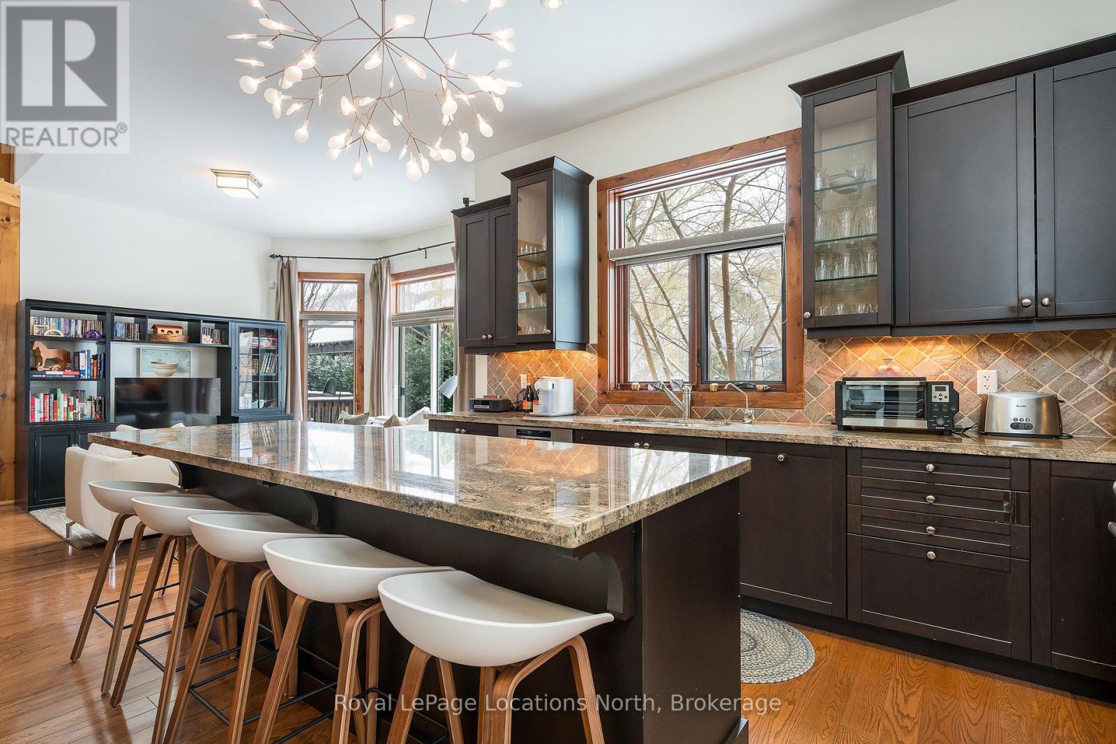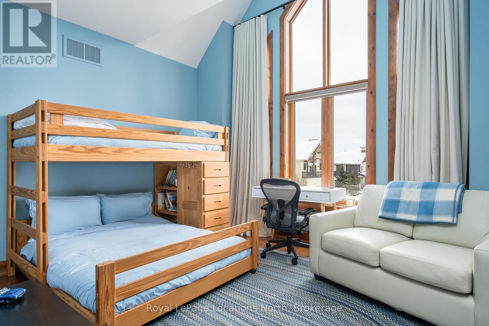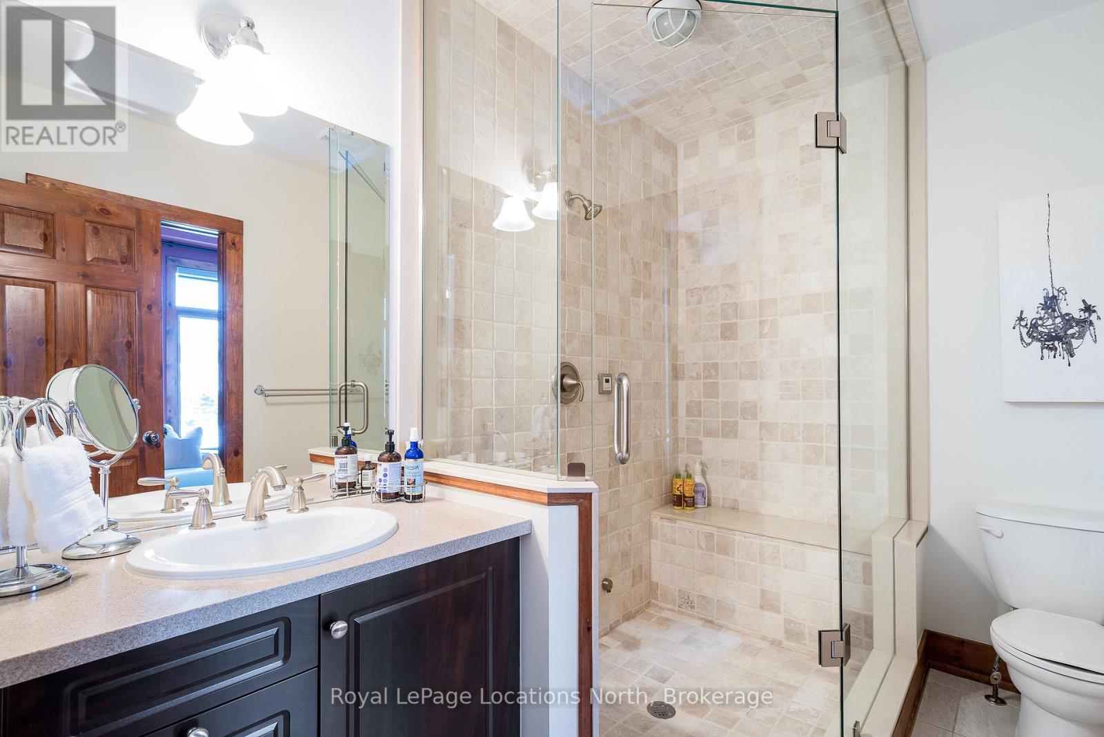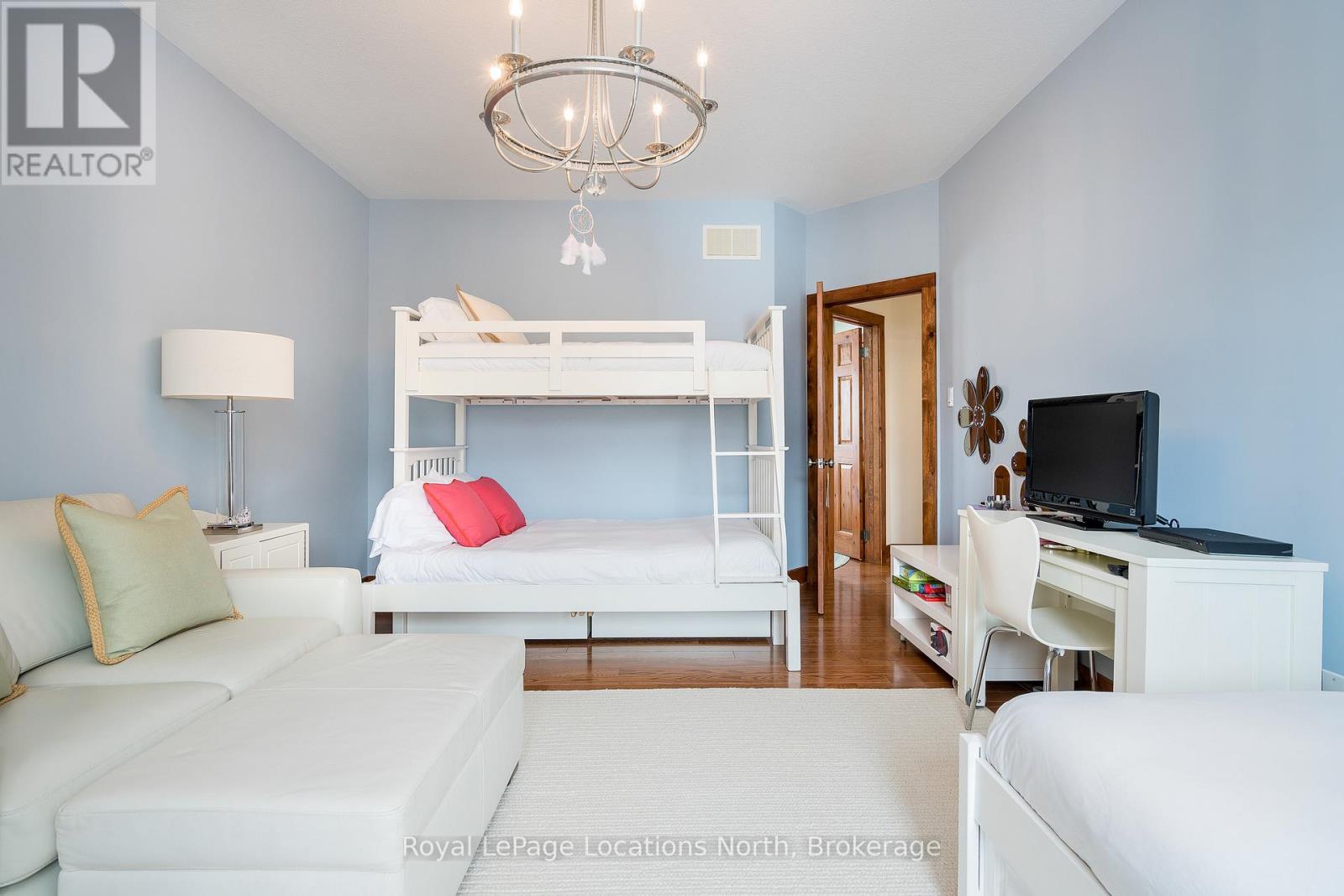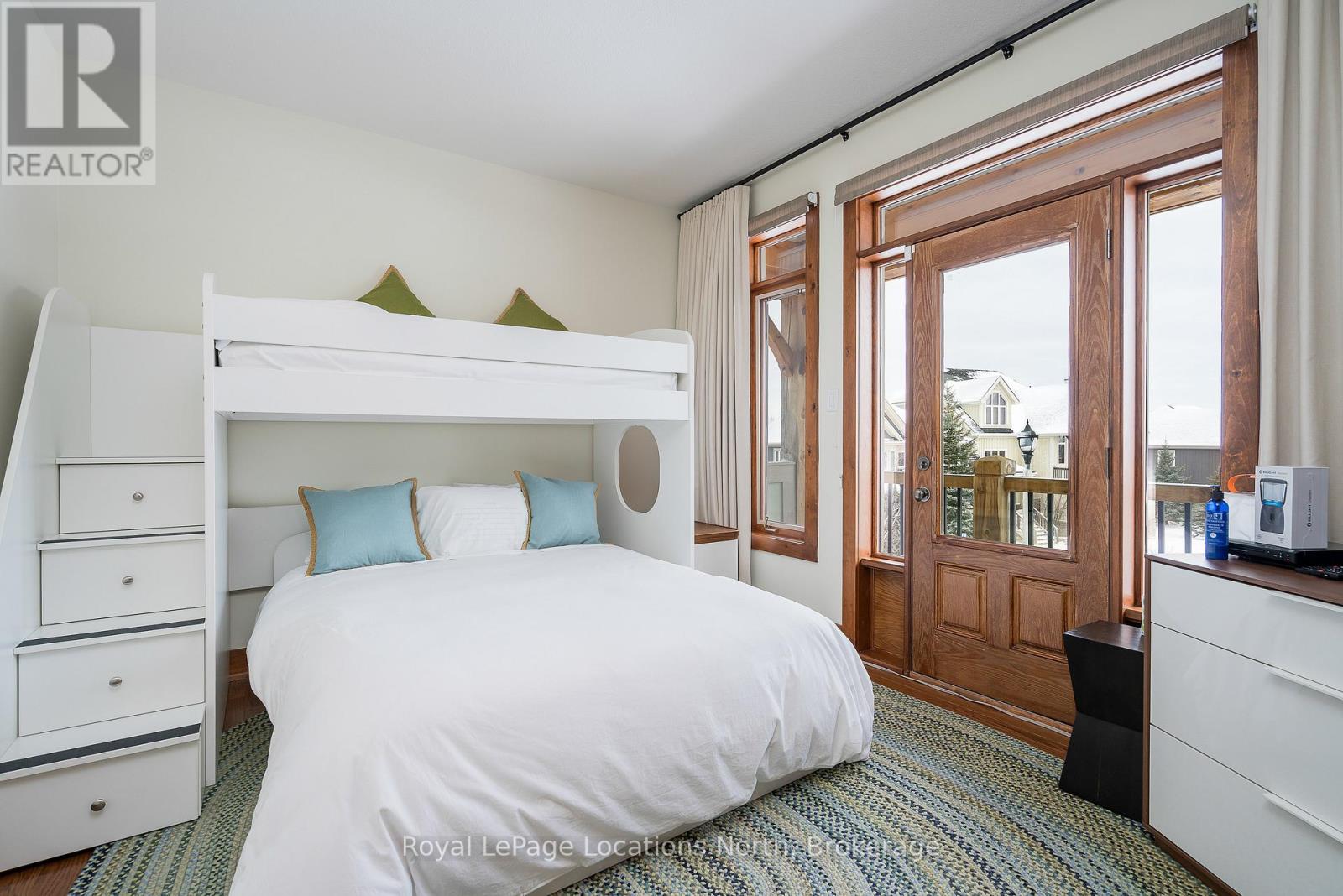 Cherished by the same family for over 15 years, this spacious 7-bedroom, 5-bath Lake Louise model in the sought-after Orchard community is ready for its next owners. Ideally located within walking distance to Craigleith Ski Club and Toronto Ski Club, and just minutes from Alpine, Blue Mountain Resort, and Northwinds Beach, this property offers exceptional four-season living. With over 4,000 sq. ft. of finished space, the home is designed for gathering and relaxation. The dramatic great room features a double-height ceiling, hardwood floors, beam accents, and a stunning double-storey stone wood-burning stove with a pine mantel. The main floor includes a guest bedroom, a 3-piece bathroom with a steam shower, a large kitchen with granite counters, gas range, island, walk-in pantry, and buffet/serving area, plus a cozy sitting area. The mudroom serves as main-floor laundry and opens to a covered BBQ porch.Upstairs you'll find four generous bedrooms and three full bathrooms, including a primary suite with a walk-in closet and ensuite featuring a soaker tub and glass shower. One guest room includes a private ensuite, another offers a balcony, and a full bath plus walk-in linen closet complete this level. Seasonal ski-hill views can be enjoyed in winter, with lush privacy in summer. The fully finished lower level adds two more bedrooms, a bathroom, sauna, two recreation areas, and excellent storage for gear.Outside, the premium lot backs onto Craigleith Ski Club and features mature landscaping, apple trees, a play set and swings, and a gate leading to a walking path directly to the club. A double-car garage with EV charger completes this exceptional offering. A rare opportunity in an unmatched location.