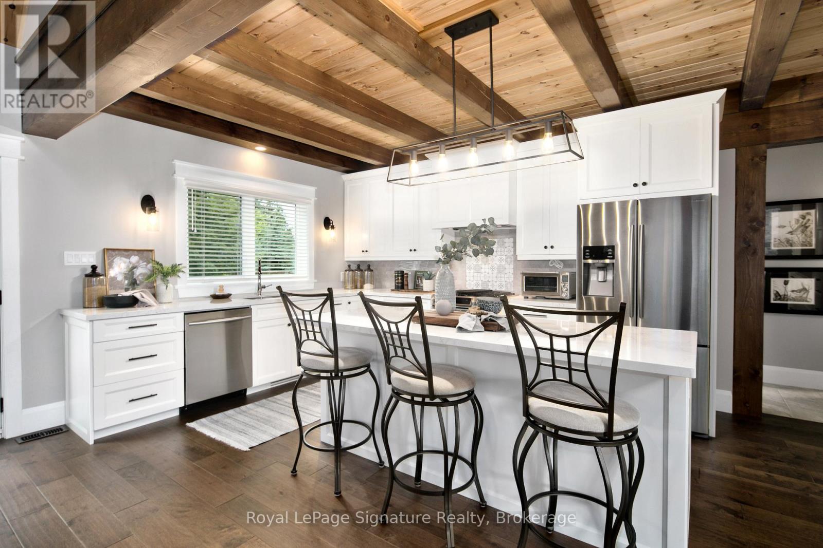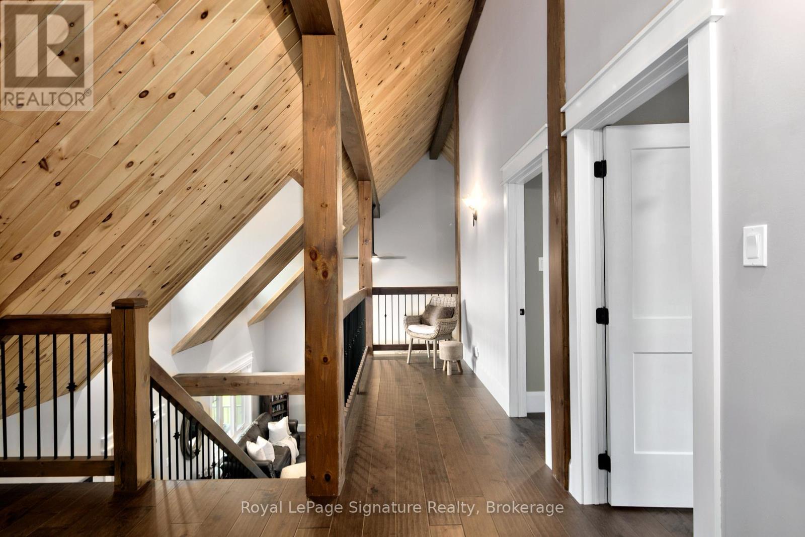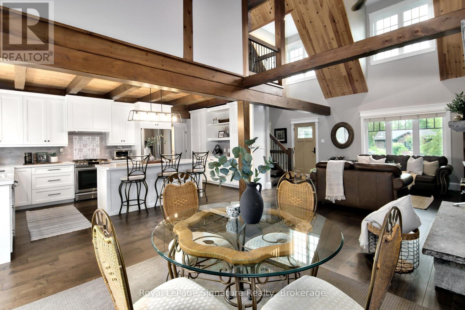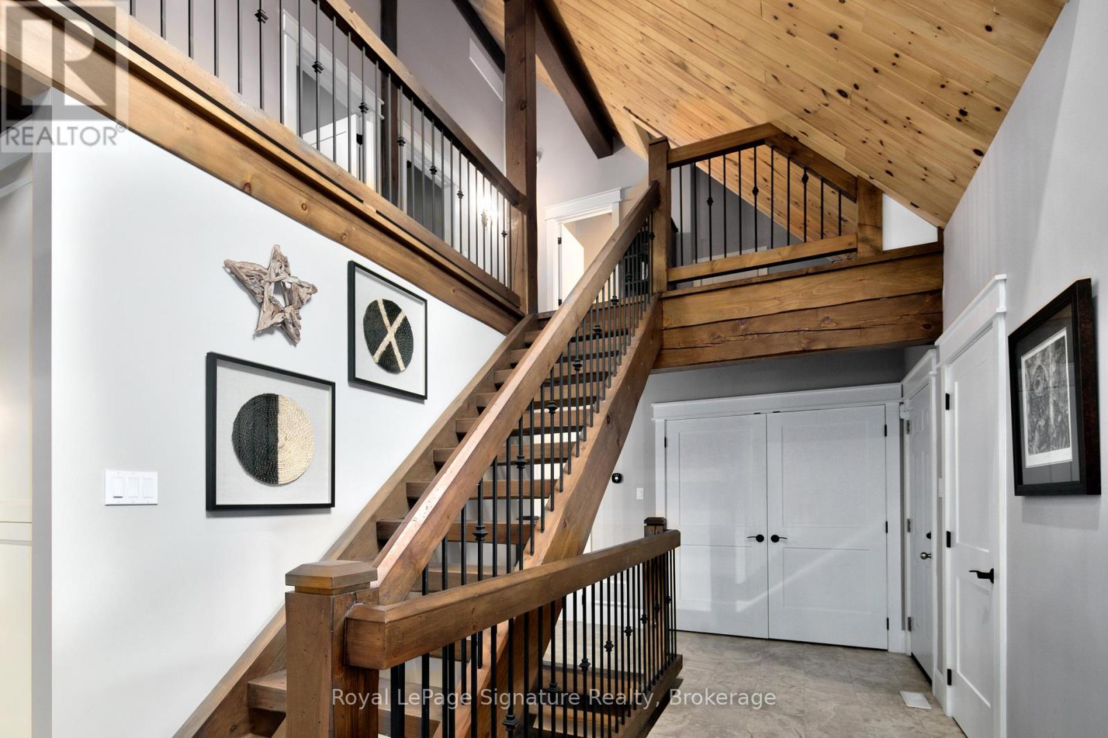 Located just minutes from the base of Blue Mountain and the Village, this stunning Legendary Group timber frame home blends mountain-inspired design with modern comfort. The bright, open-concept layout is perfect for entertaining or relaxing after a day on the slopes or trails. The main floor primary suite offers convenience and privacy, featuring a spacious five-piece ensuite. Upstairs, you'll find two additional bedrooms and a full bath, plus a large bonus room over the garage, ideal for a family room, home office, or future guest suite. With 9-foot ceilings on every level, this home feels airy and inviting. The unfinished lower level, complete with a rough-in for a bathroom and wet bar, provides endless possibilities for customization. Enjoy a private backyard surrounded by nature and the peace of a quiet setting, just minutes from shops, dining, and year-round activities at Blue Mountain Village. Additional highlights include an EV rough-in in the garage and modern construction built in 2018 for worry-free living. Experience the perfect balance of adventure, relaxation, and refined mountain living.