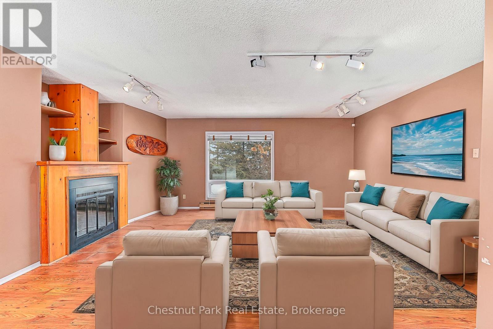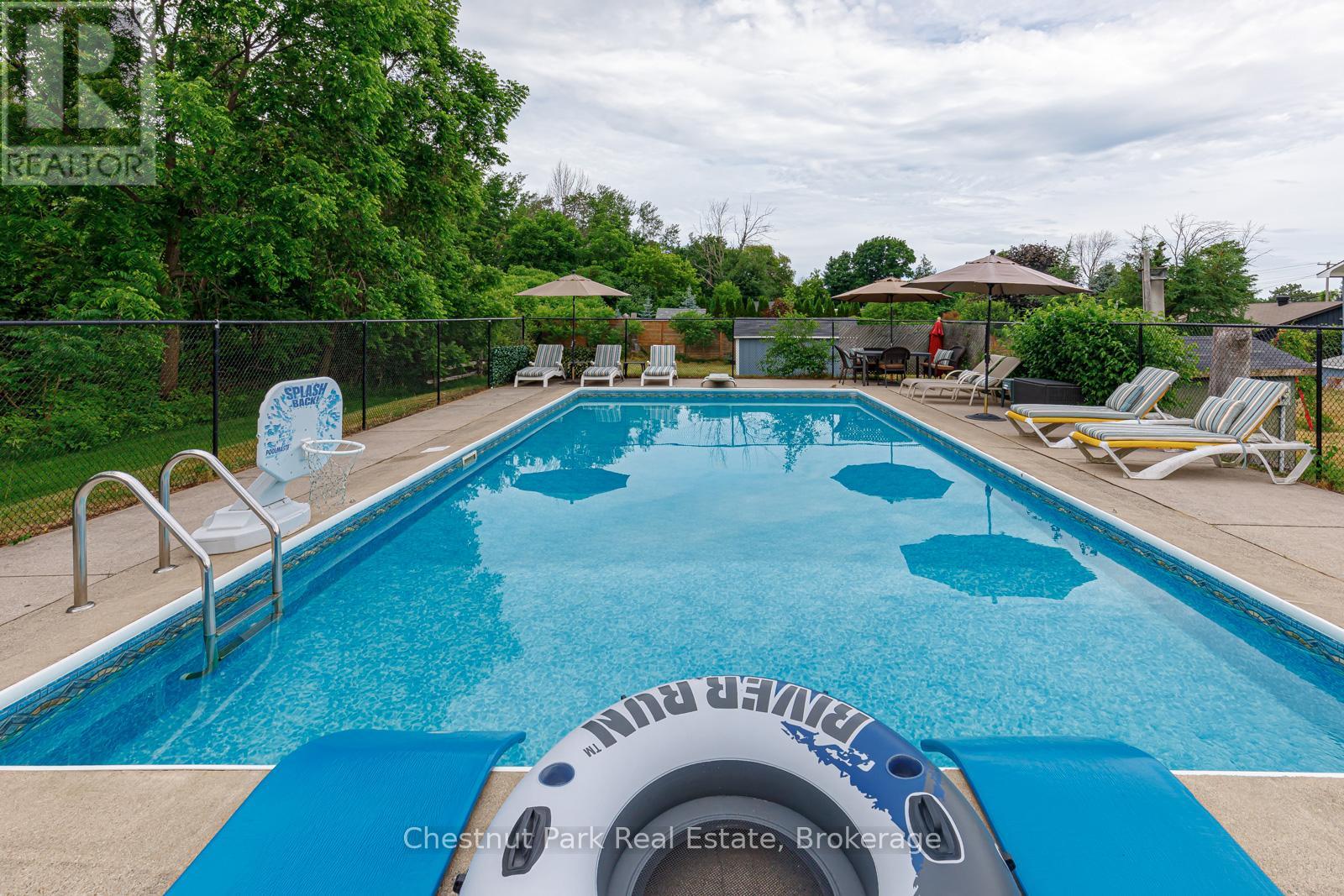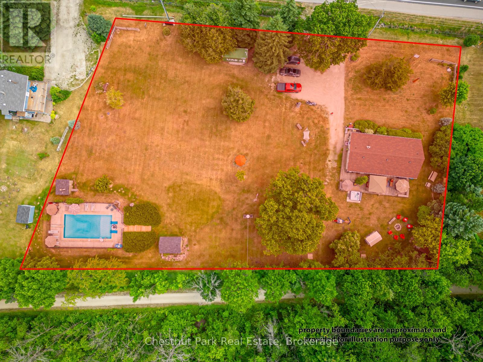 Your dream property awaits on this nearly one-acre lot in Craigleith! Located just minutes from Collingwood, the Blue Mountains, and Thornbury, this property offers direct access to the Georgian Trail and picturesque views of Georgian Bay right across the street. This charming home currently features three bedrooms and one and a half baths, along with an open-concept kitchen, living, and dining area. A walkout leads to a spacious porch complete with a gazebo, while a wood-burning fireplace provides a cozy retreat after a long day on the slopes. In the summer, enjoy the 20x40 saltwater pool, ideal for relaxation and entertainment. The private backyard, complete with a fire pit, offers ample outdoor space to create your own oasis. Whether you choose to expand the existing structure or build your dream home or ski chalet from the ground up, the possibilities are endless. This property serves as a perfect four-season retreat, conveniently located near numerous amenities, including hiking and biking trails, snowshoeing, ski hills, Northwinds Beach, and downtown shops and dining. Dare to dream big! Some photos are virtually staged. Also listed FOR SEASONAL LEASE MLS X12643542