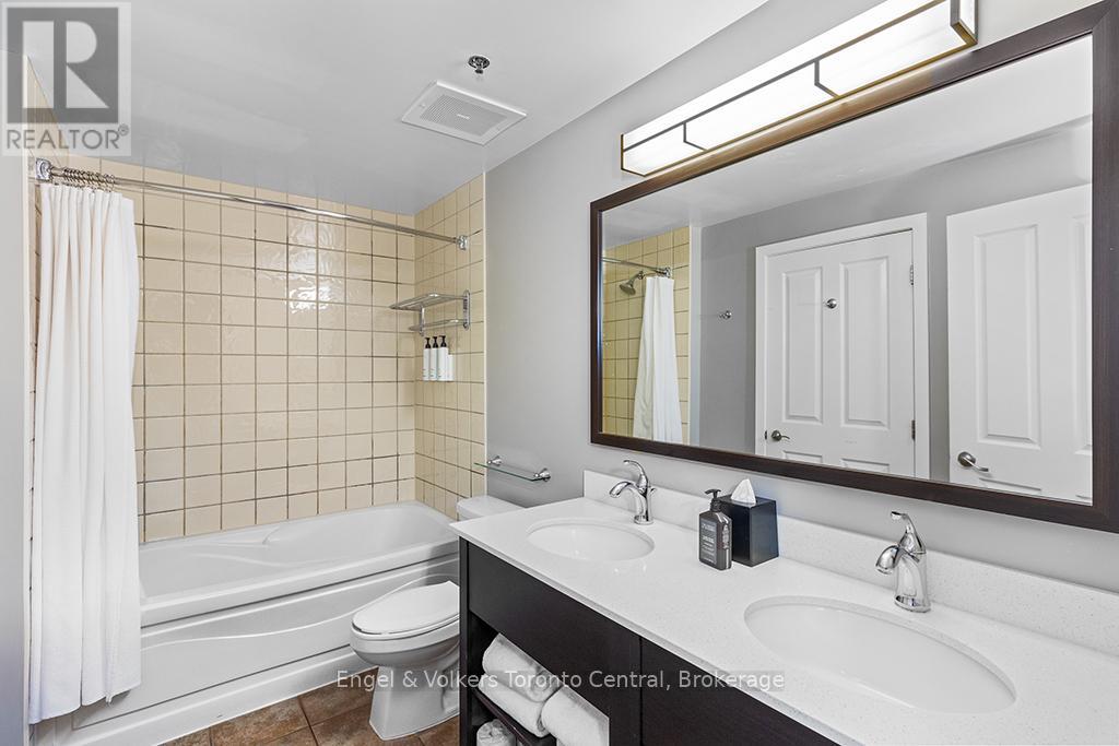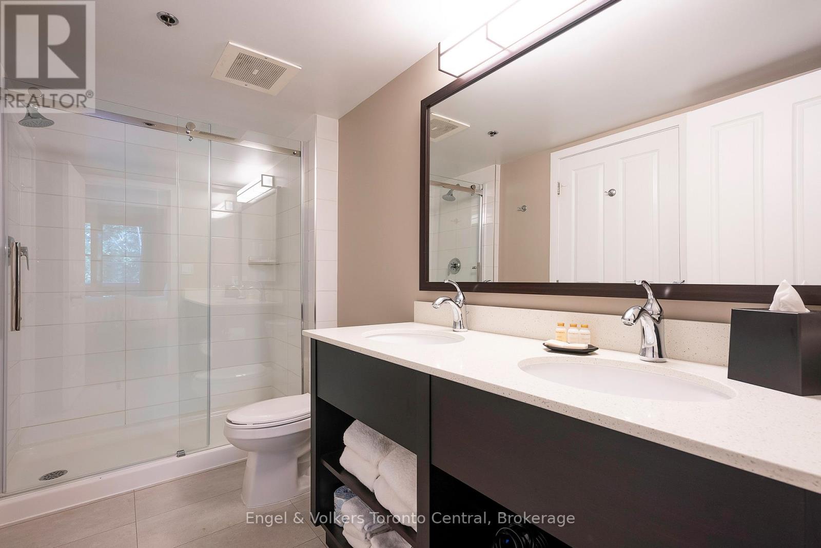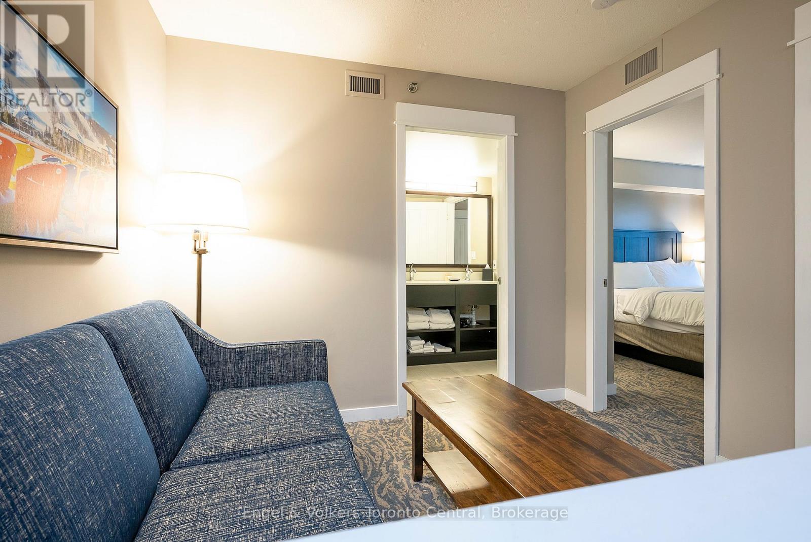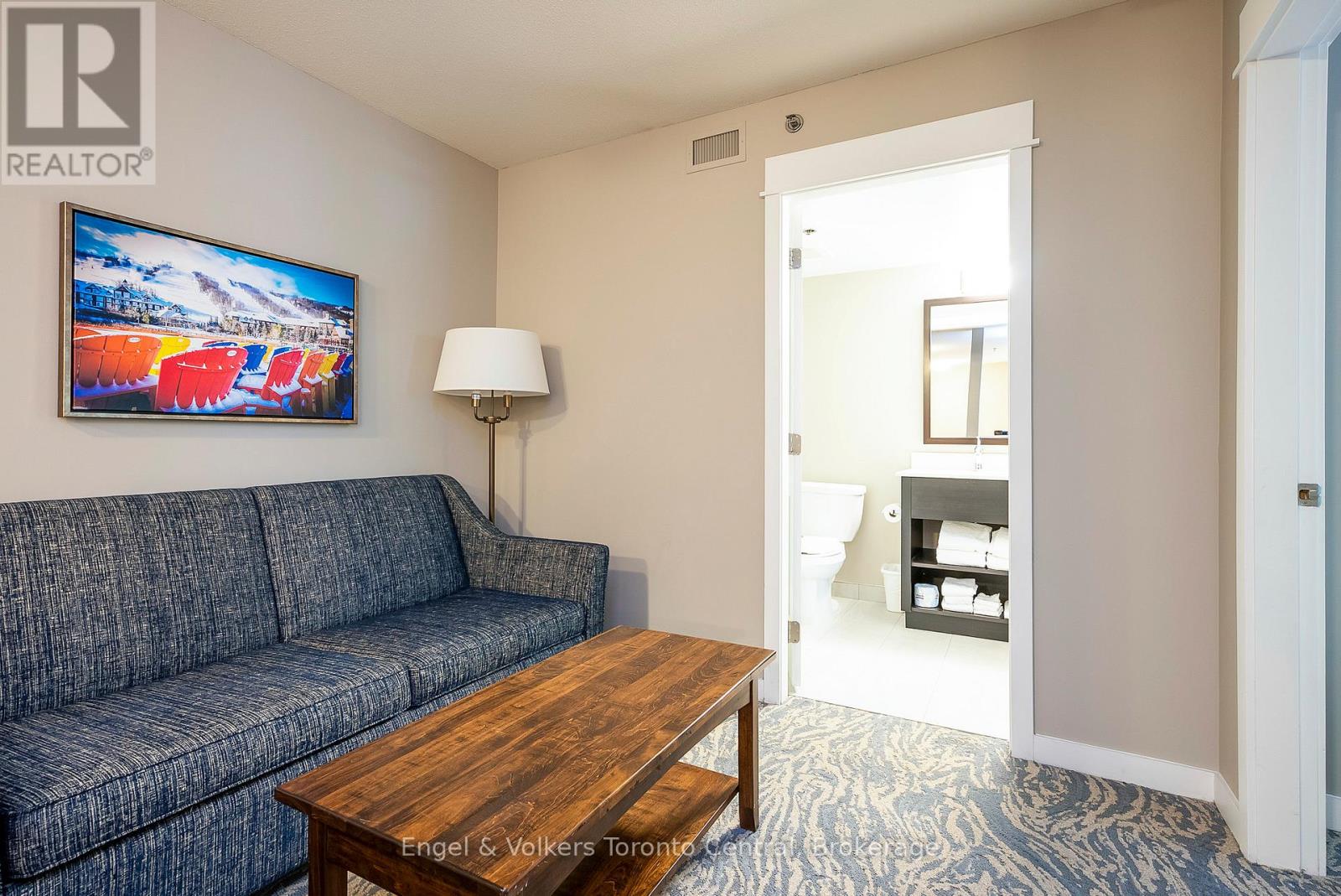 GRAND GEORGIAN ONE-BEDROOM PLUS DEN SLEEPS 6 - Fully furnished One Bedroom + Den in the beautiful Grand Georgian, located in Blue Mountain Village, Ontario's most popular four-season resort. Close to restaurants, shops, activities and amenities making your stay enjoyable. The Grand Georgian features an in-ground outdoor seasonal pool, 2 year round hot tubs, a sauna, exercise room and warm underground parking. Suite Sleeps up to 6! Full kitchen, large bathroom with double sinks! Enjoy the nice gas fireplace after a day on the ski hills. Very spacious with a king size bed in master with private access to 4 piece bathroom. Two pull out sofas. Choose to participate in optional Blue Mountain Resort Rental Pool Program that generates income and allows for personal use. Condo Fees include all utilities. This suite is currently in the Blue Mountain Resorts rental program. HST is applicable on the purchase price but can be deferred by the buyer obtaining an HST number. 2% Village Association Fee is applicable on closing. $1.08 per square foot annual Blue Mountain Village Association Membership fee paid quarterly.