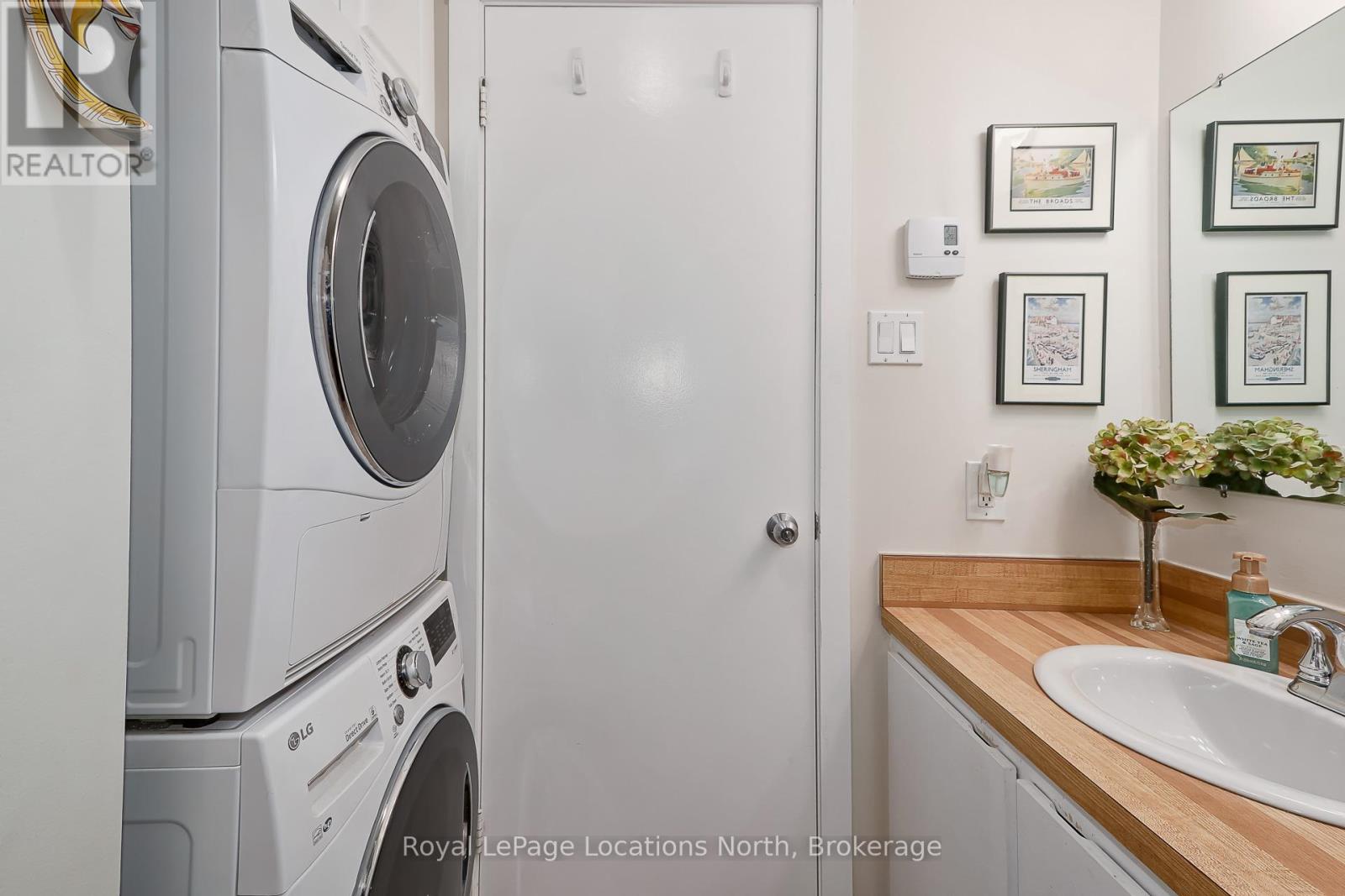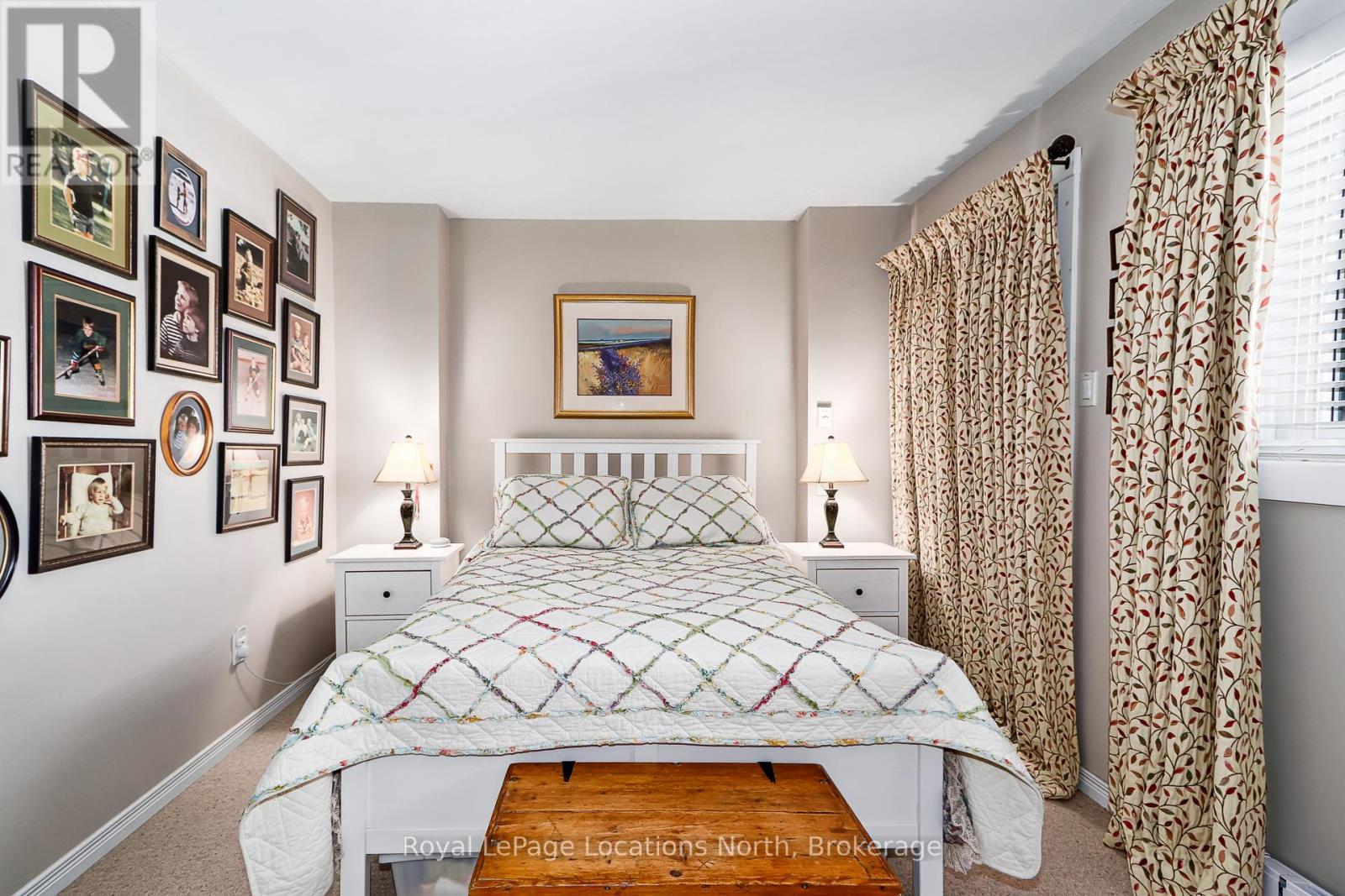 An extremely rare opportunity in Collingwood-featuring gas heating, an exceptional and seldom-found feature. Enhanced with custom ductwork to the main floor, this efficient system offers year-round comfort and meaningful cost savings. Showcasing exceptional views of Blue Mountain, this condo is not to be missed.The spacious main-floor primary bedroom is filled with natural light, offering ample closet space, and patio walkout. A well-sized secondary bedroom also provides plenty of natural light and flexibility. The bathroom features a newer stacked washer and dryer for added convenience. Upstairs, enjoy bright, open-concept living the vaulted ceiling and cozy fireplace create a warm and inviting atmosphere. The kitchen is thoughtfully designed with backsplash, shaker-style cabinetry, generous storage, and newer appliances. Plenty of upgrades including vinyl flooring, A/C, and authentic wool carpet.Experience the beautiful view and peaceful backyard on your private deck. Surrounded by scenic trails and a wide range of amenities this is a must see.