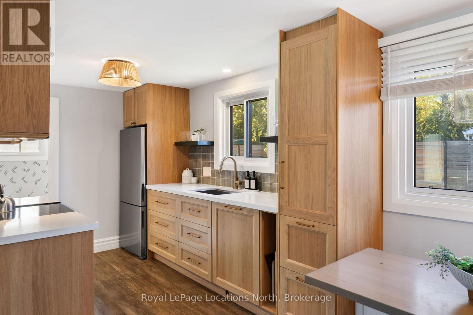Welcome to 19 Dell Parr Avenue, a fully updated 2 bed, 1 bath bungalow just 500 metres from the shores of Georgian Bay. This stunning property has been thoughtfully upgraded from top to bottom, featuring a brand new sleek contemporary kitchen with quartz countertops. The renovated bathroom and laundry area combine style and practicality, complete with in-floor heating for added comfort. Recent exterior updates include a new roof, siding, windows, doors, and garage door; while a heat pump and air conditioning system ensure efficient climate control year-round (2024). The insulated detached garage, six car driveway, and two sheds ensure there's storage for everything you love. The fully fenced backyard and spacious deck create the perfect space for entertaining or relaxing. Modern upgrades, refined comfort, and an unbeatable location - this Collingwood gem truly has it all. Book your private showing today!