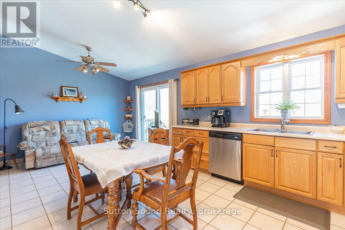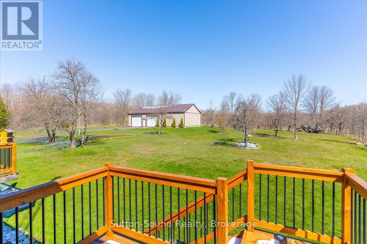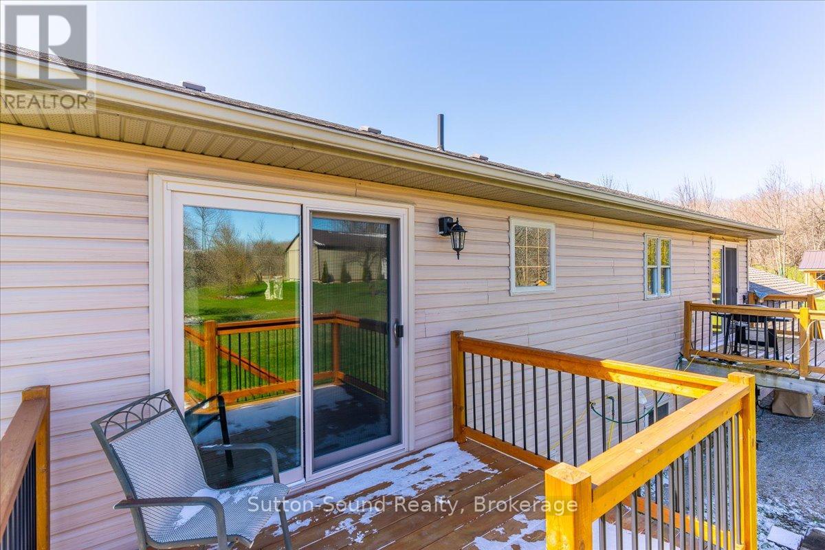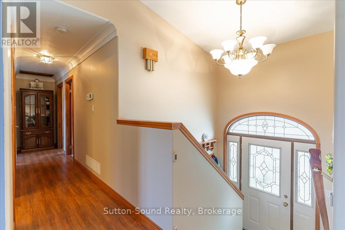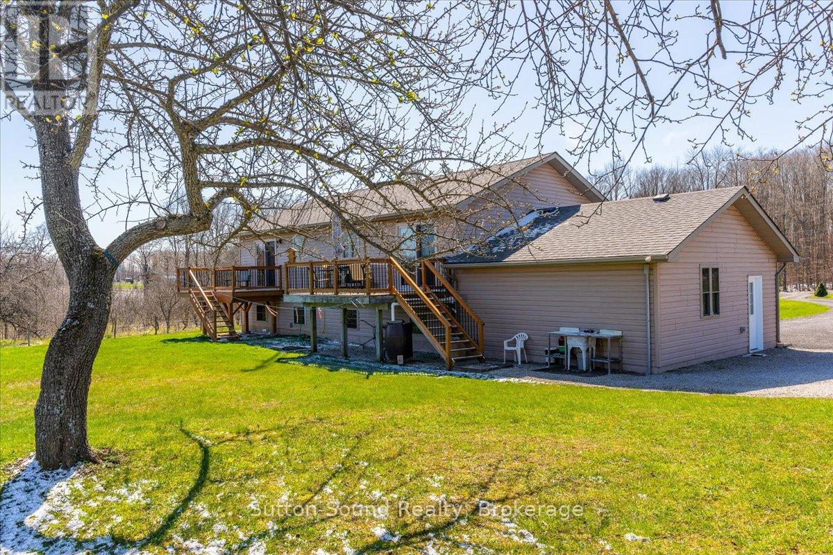 Welcome to your private country escape! Perfectly positioned between Wiarton and Owen Sound, this stunning 4-bedroom, 3-bathroom home on 1.97 acres offers the ideal blend of peaceful rural living and modern comforts. The gently rolling lawn, framed by mature trees, creates a picture-perfect backdrop for everyday life. Built in 2002 and meticulously maintained, this 1,700 sq. ft. home boasts an open-concept main floor designed for easy living and entertaining. The kitchen flows seamlessly into the dining and living areas, with patio doors leading to a spacious back deck perfect for morning coffee or summer BBQs with serene countryside views. The primary suite features a 3-piece ensuite, his-and-hers closets, and private deck access for ultimate relaxation. Two more bedrooms and a full bathroom complete this level.The fully finished lower level offers incredible versatility complete with a cozy family room, full bathroom, laundry room, and two large bonus rooms ideal for extra bedrooms, an office, or hobby space. Direct access to the attached garage ensures convenience in every season. For those who need room for projects or storage, you'll love the 36 x 60 detached shop (built in 2018) with 900 sq. ft. of heated space, plus a 12 x 14 garden shed for tools and equipment.Recent upgrades include a new furnace (2020), air conditioning (2024), upgraded insulation, and an energy-efficient ICF foundation for year-round comfort and lower utility costs.Whether you're seeking a peaceful retreat, a family home, or a property with space for your hobbies, this home delivers it all! Privacy, space, and modern amenities in a tranquil, natural setting.