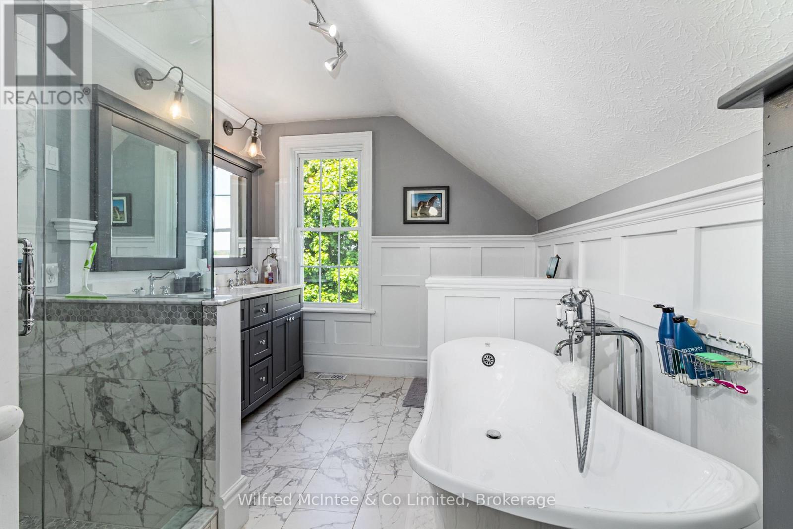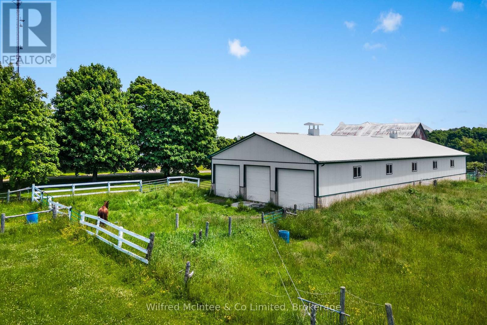 This extraordinary 98 acre farm perfectly balances historical soul with modern luxury. At its heart is a meticulously renovated 2,200 sq. ft. century home, featuring a custom kitchen anchored by striking blue Cambria quartz. From sun-drenched mornings in the bright sunroom to relaxing evenings in the classic clawfoot tub, every inch of this 4-bedroom residence has been designed for comfort. Beyond the home, the property transforms into an equestrian masterpiece. A state-of-the-art 40'x120' horse barn offers 12 premium stalls with swinging partitions for effortless maintenance, complemented by a dedicated wash bay and tack room. The grounds feature lush hay fields, fenced paddocks, and forest trails. The practical 30'x60' 4-bay shop with a mechanics pit rounds out the yard. With a guaranteed income from the cell tower lease and a location just minutes from Lake Huron and Bruce Power; this is more than a home, it's a legacy.