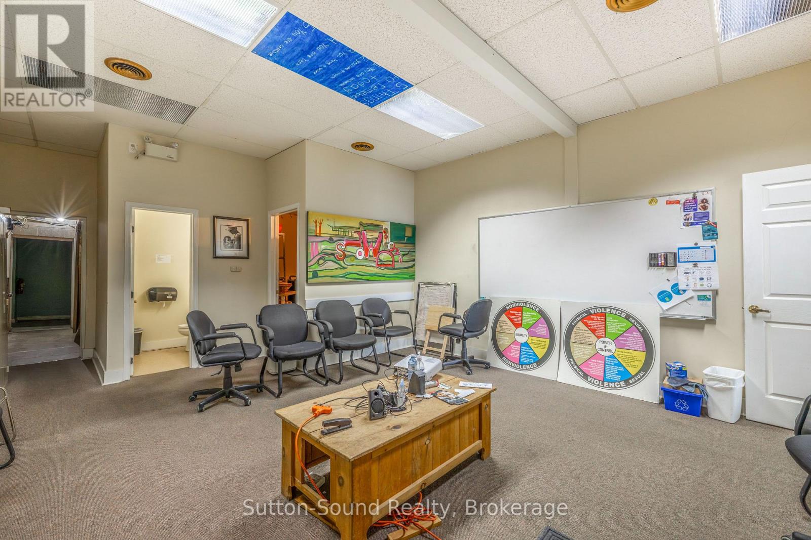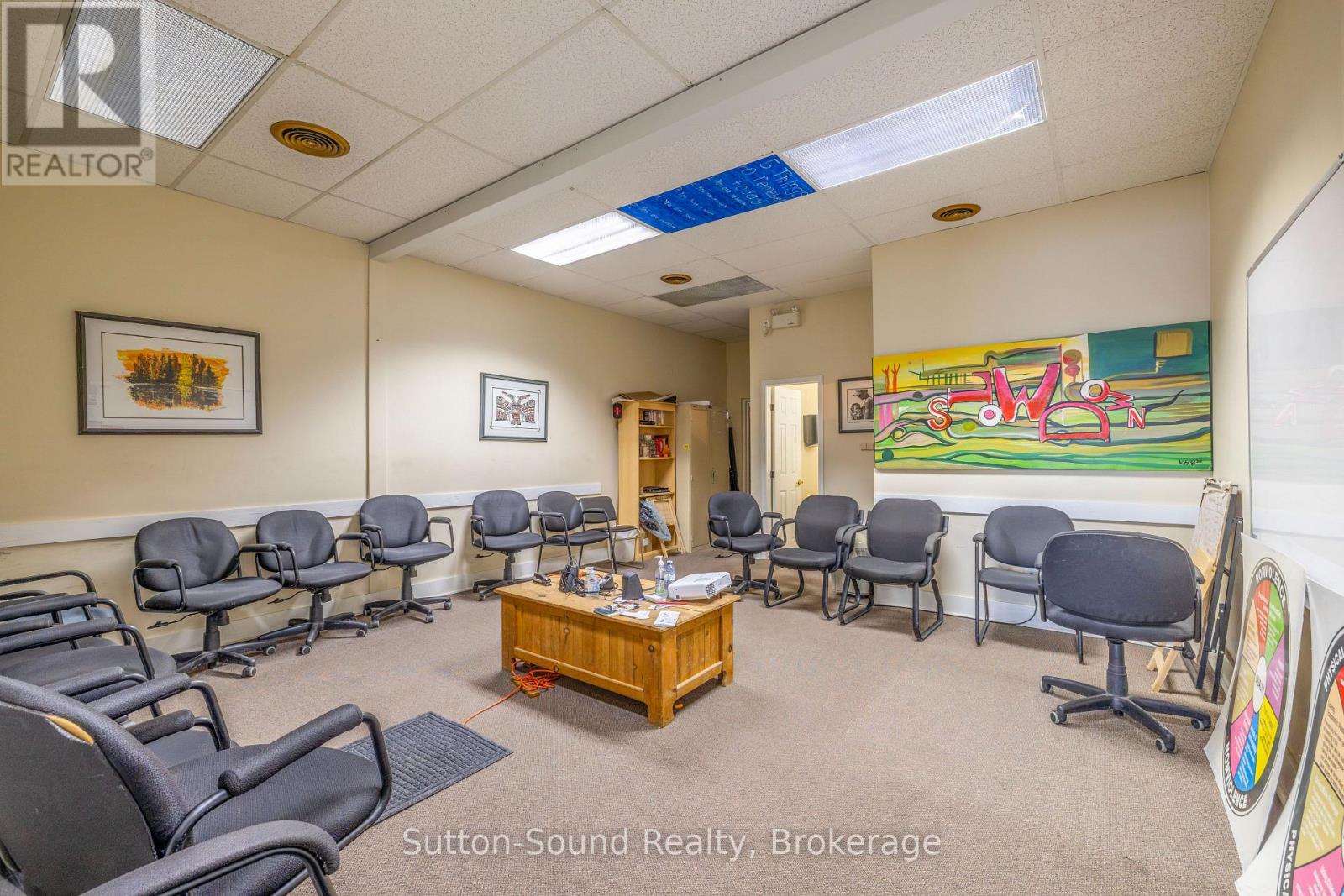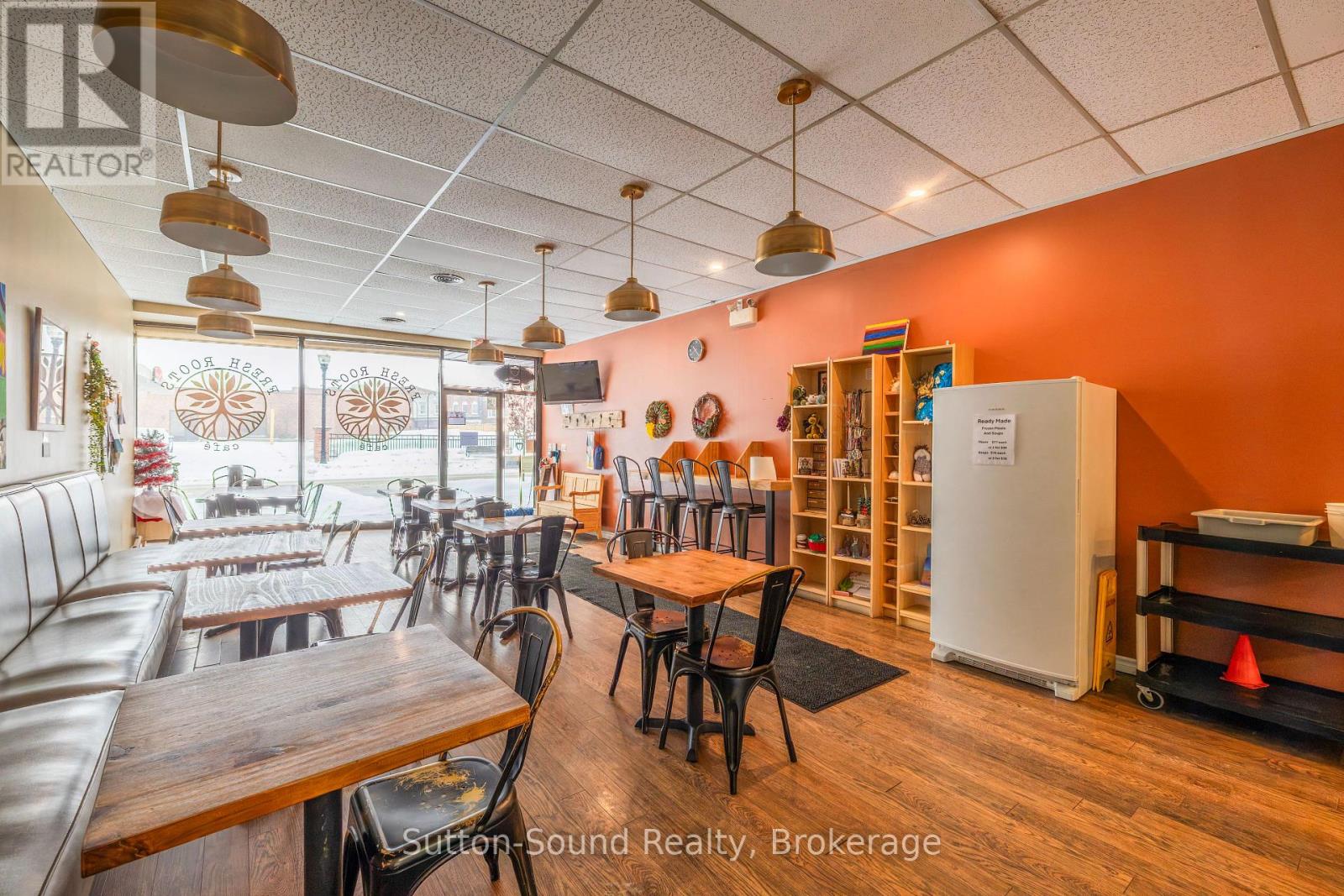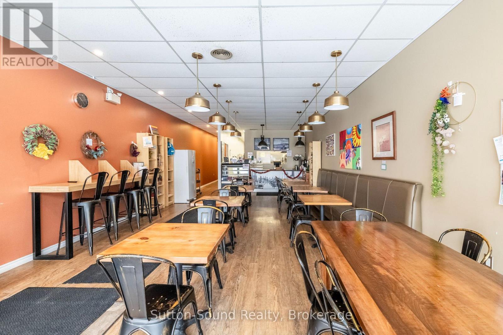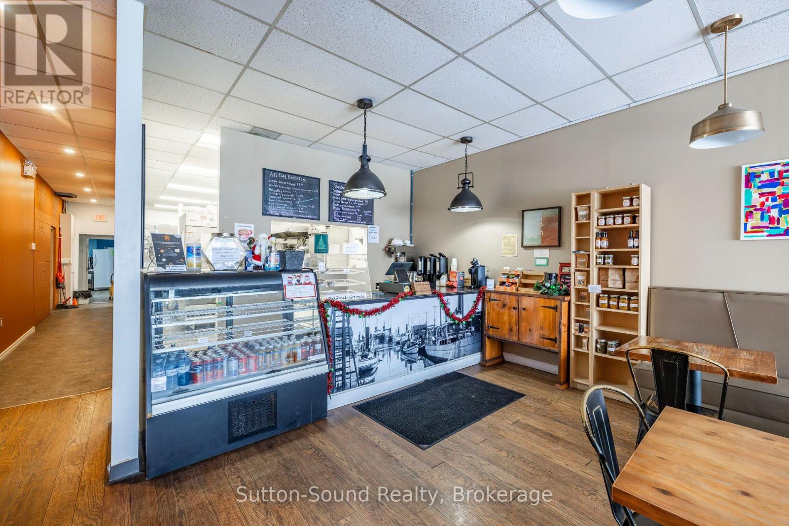 Ideally located in Owen Sound's sought-after Downtown River District, this versatile commercial property offers an excellent opportunity for both owner-users and investors. The property is currently occupied on a month-to-month basis, providing flexibility, and the existing caf\u00c3\u00a9 tenant has expressed interest in remaining, offering potential continuity of income. The building features two main Street entrances, allowing for the possibility of separating the space for multiple users or mixed-use configurations. The current layout includes a separate office component with its own main Street entrance, consisting of three offices, a large meeting room, washroom, and storage area. (See attached Floor Plans - measurements are approximate.) The caf\u00c3\u00a9 portion offers seating for approximately 24-30 patrons, two washrooms, an abundance of storage, and a large open rear area that includes three additional offices, providing flexibility for expansion or alternative uses. Additional features include two rear accesses to 1st Avenue East, parking for four vehicles, and a loading dock, enhancing functionality for retail, food service, or service-oriented operations. Note: This property is being sold in conjunction with 1024 2nd Avenue East, presenting a rare opportunity to acquire a significant presence in one of Owen Sound's premier downtown commercial locations.