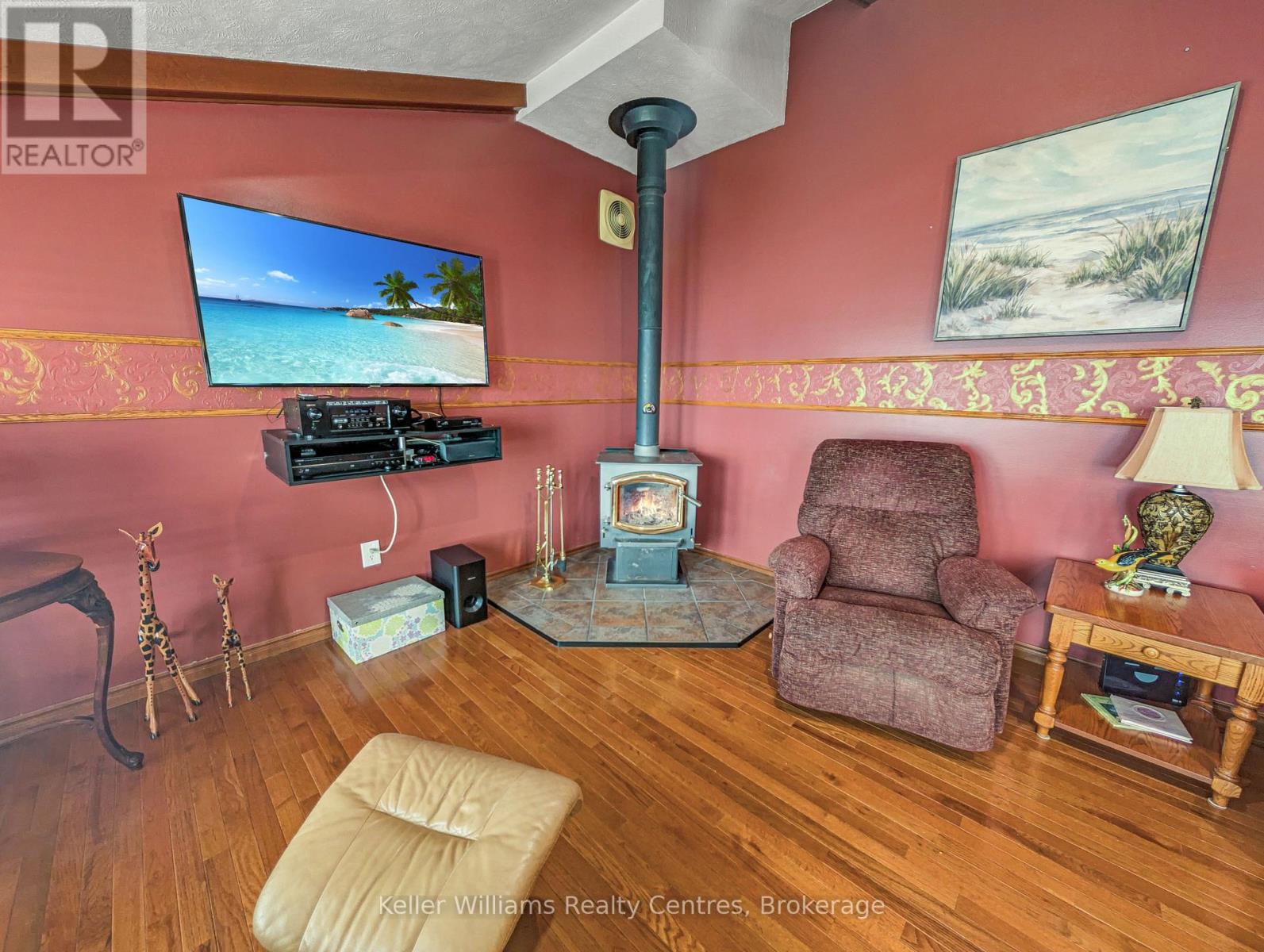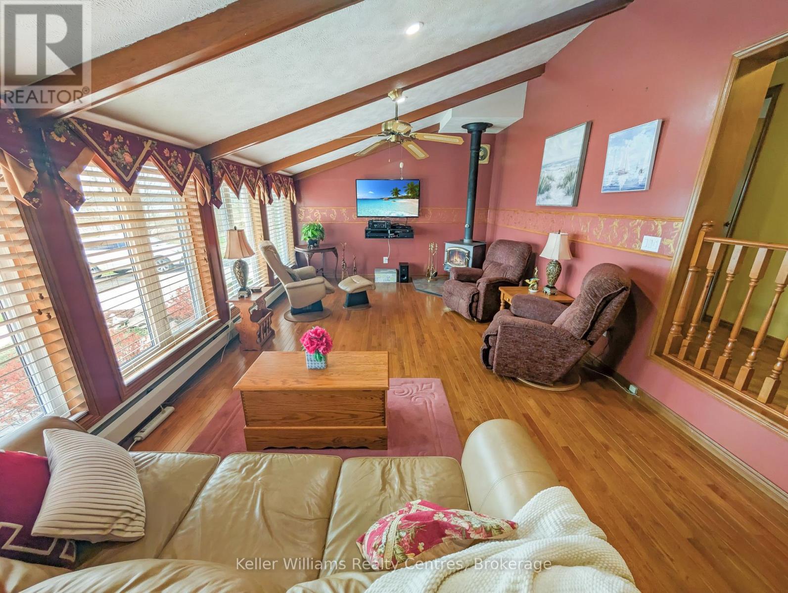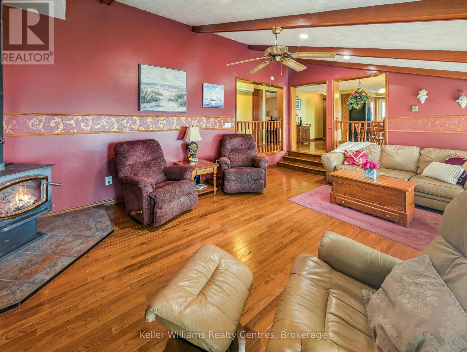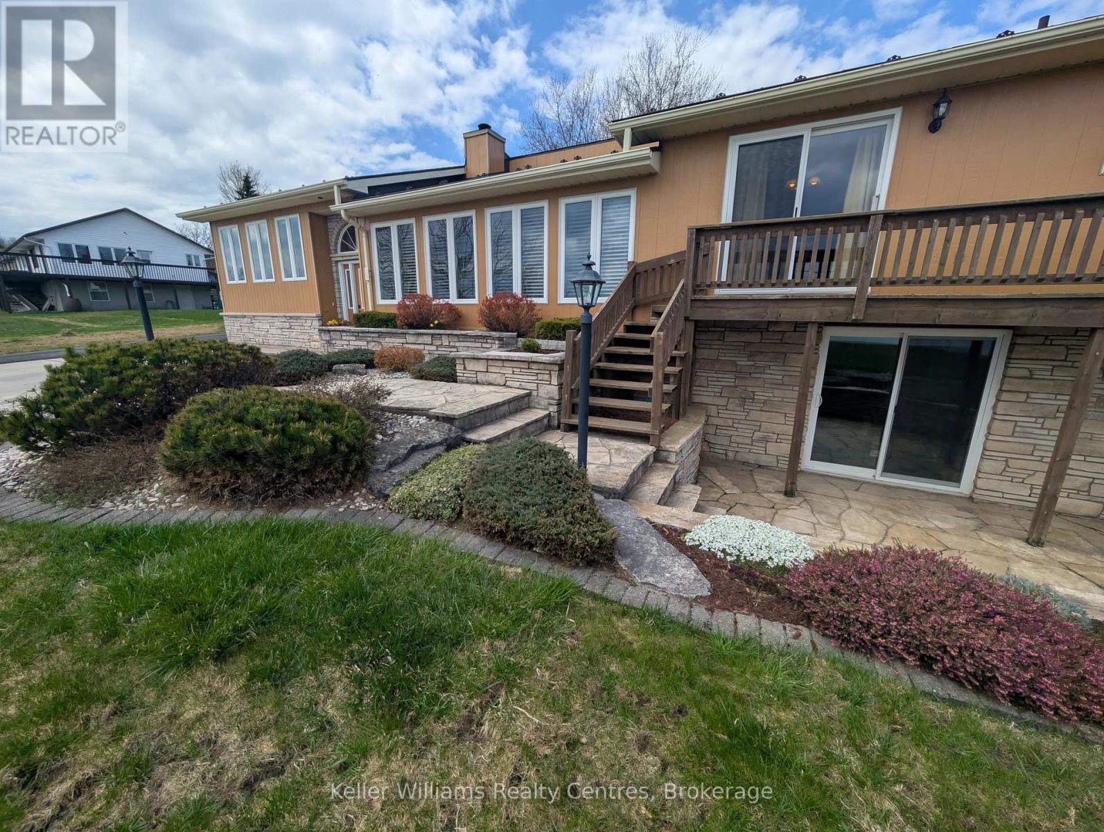 Welcome to your next chapter on the Bruce Peninsula where big views and quiet living come together. This charming 4-bedroom bungalow is perched perfectly above Colpoys Bay with a panoramic water view that never gets old. Whether you're sipping morning coffee on the deck or unwinding inside, the bay is your constant backdrop. Step inside to find a sun-filled open-concept layout with a warm wood-accented kitchen, seamless flow into the dining area, and cozy spaces to relax. Floor-to-ceiling windows in the living room flood the home with natural light and showcase that incredible view. The vaulted ceilings, exposed beams, and wood-burning stove add the perfect touch of rustic charm. The lower level is ready for your vision with a full walkout to a covered patio and stonework leading to beautifully landscaped gardens. Whether you're expanding the living space or keeping it for storage and hobbies, there's room to grow. Outside, enjoy the double-wide concrete driveway, detached garage, and a gazebo nestled among gardens. This home is move-in ready and offers comforts like ductless cooling, metal shake roof, water filtration system, and central vac. Located on a quiet stretch of the Peninsula, you're just a short drive to Wiarton and surrounded by some of the best fishing, hiking, and boating in the area. This is more than a home, its your waterfront escape. *Waterfront road between.