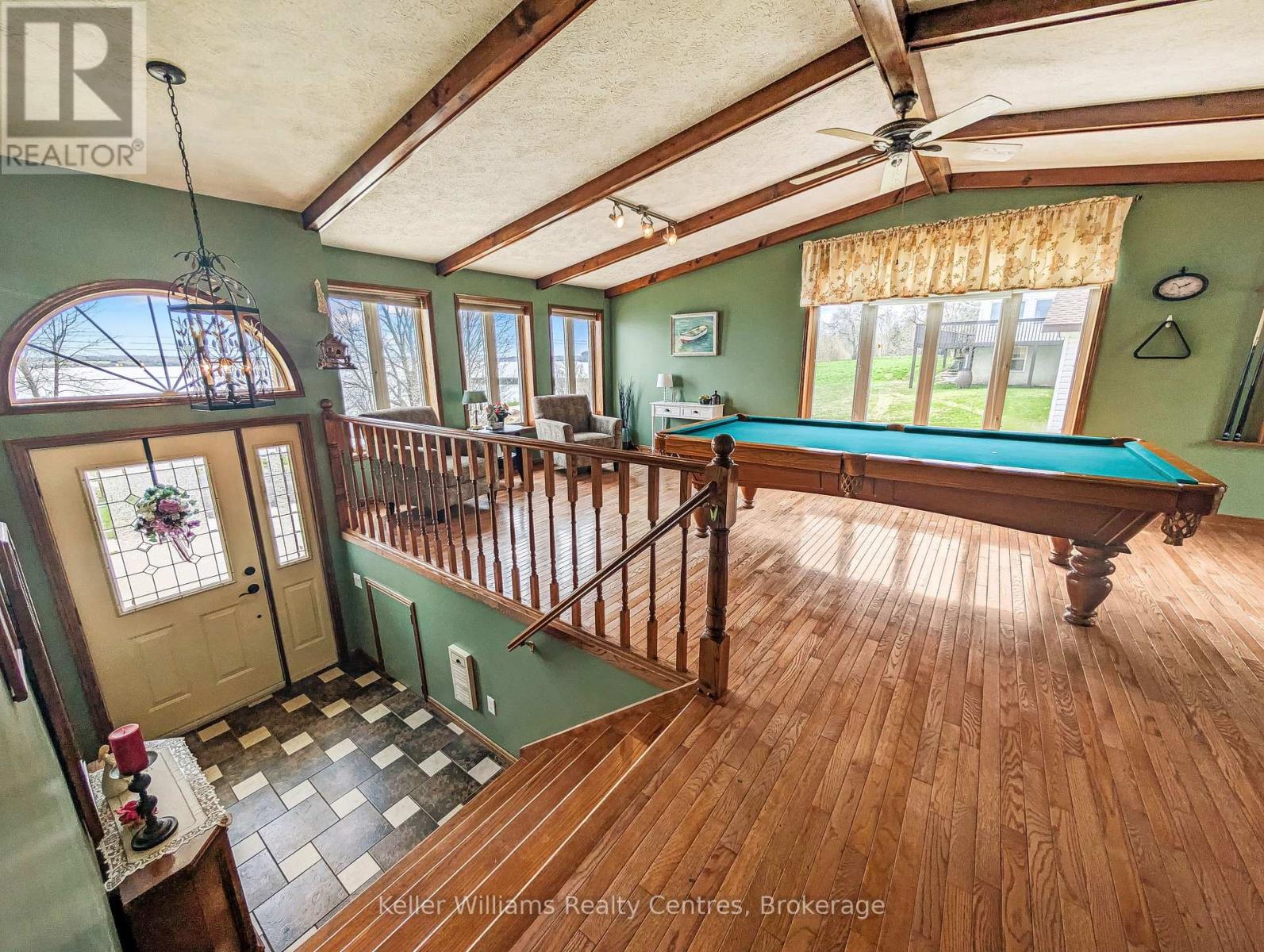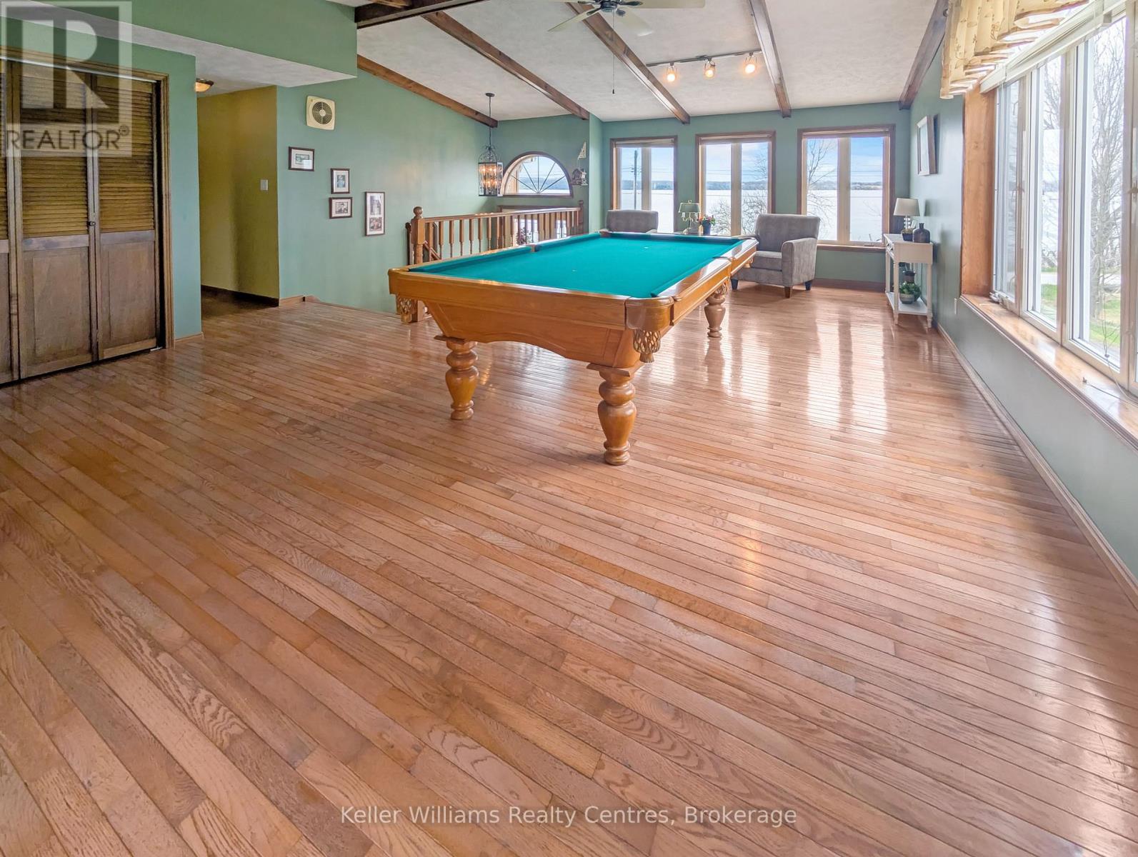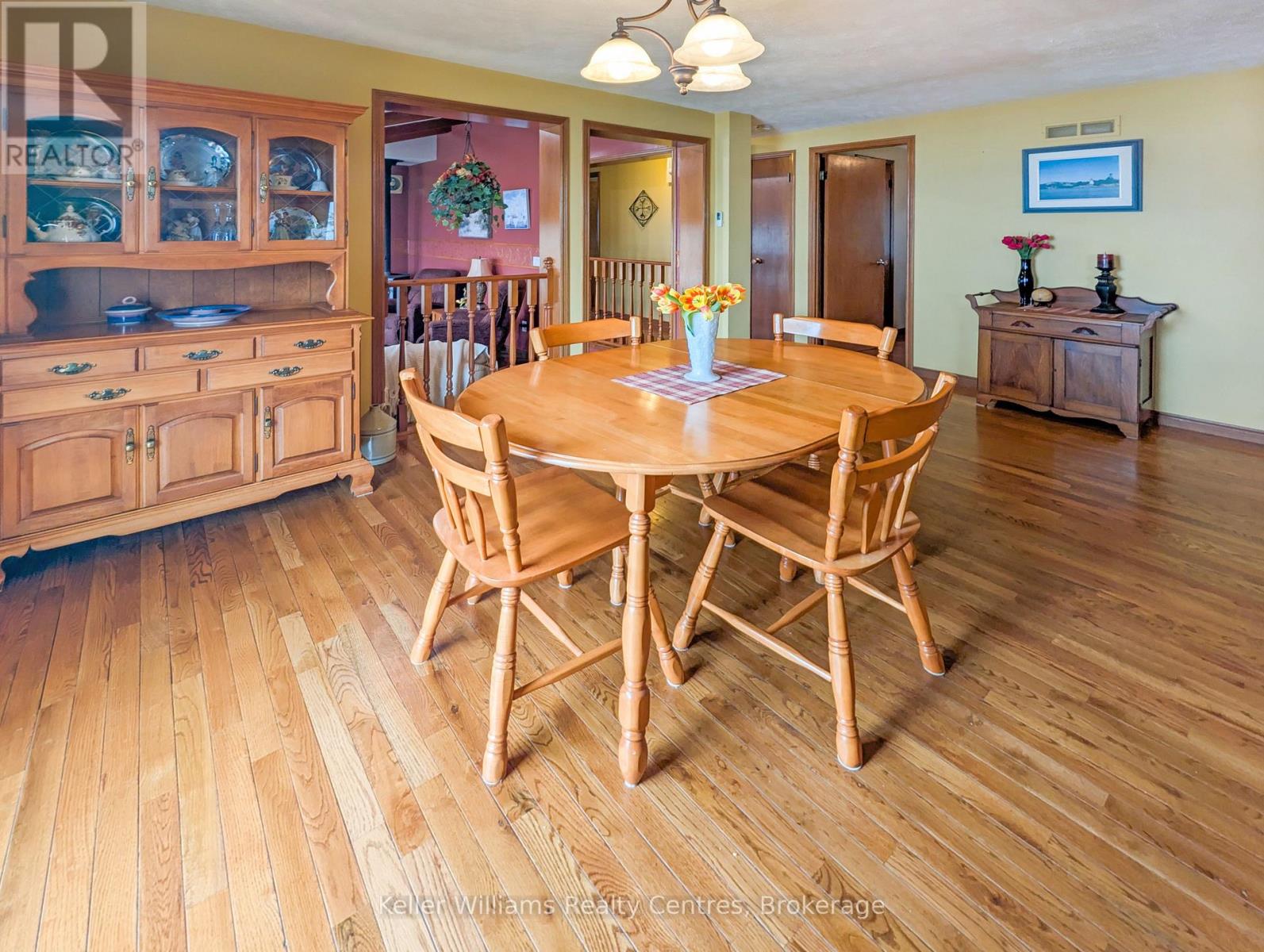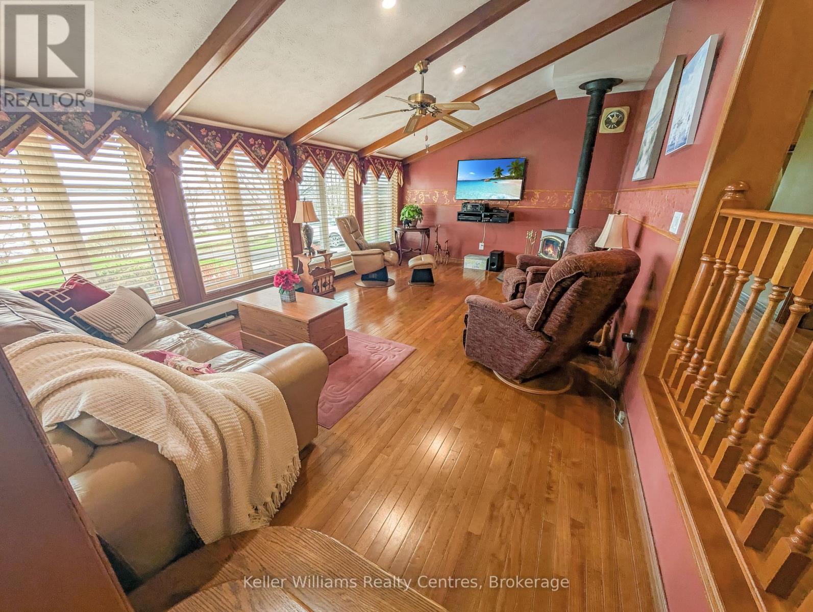 Welcome to your next chapter on the Bruce Peninsula where big views and quiet living come together. This charming 4-bedroom bungalow is perched perfectly above Colpoys Bay with a panoramic water view that never gets old. Whether you're sipping morning coffee on the deck or unwinding inside, the bay is your constant backdrop. Step inside to find a sun-filled open-concept layout with a warm wood-accented kitchen, seamless flow into the dining area, and cozy spaces to relax. Floor-to-ceiling windows in the living room flood the home with natural light and showcase that incredible view. The vaulted ceilings, exposed beams, and wood-burning stove add the perfect touch of rustic charm. The lower level is ready for your vision with a full walkout to a covered patio and stonework leading to beautifully landscaped gardens. Whether you're expanding the living space or keeping it for storage and hobbies, there's room to grow. Outside, enjoy the double-wide concrete driveway, detached garage, and a gazebo nestled among gardens. This home is move-in ready and offers comforts like ductless cooling, metal shake roof, water filtration system, and central vac. Located on a quiet stretch of the Peninsula, you're just a short drive to Wiarton and surrounded by some of the best fishing, hiking, and boating in the area. This is more than a home, its your waterfront escape. *Waterfront road between.
