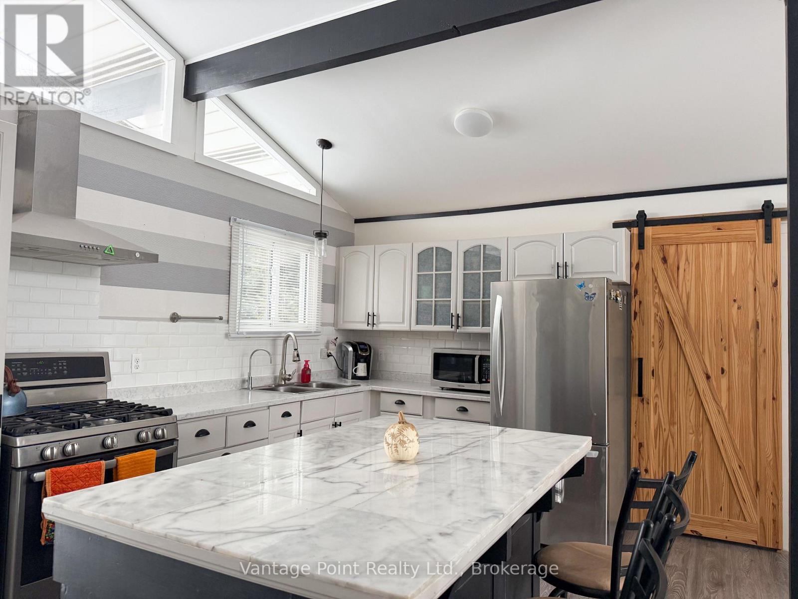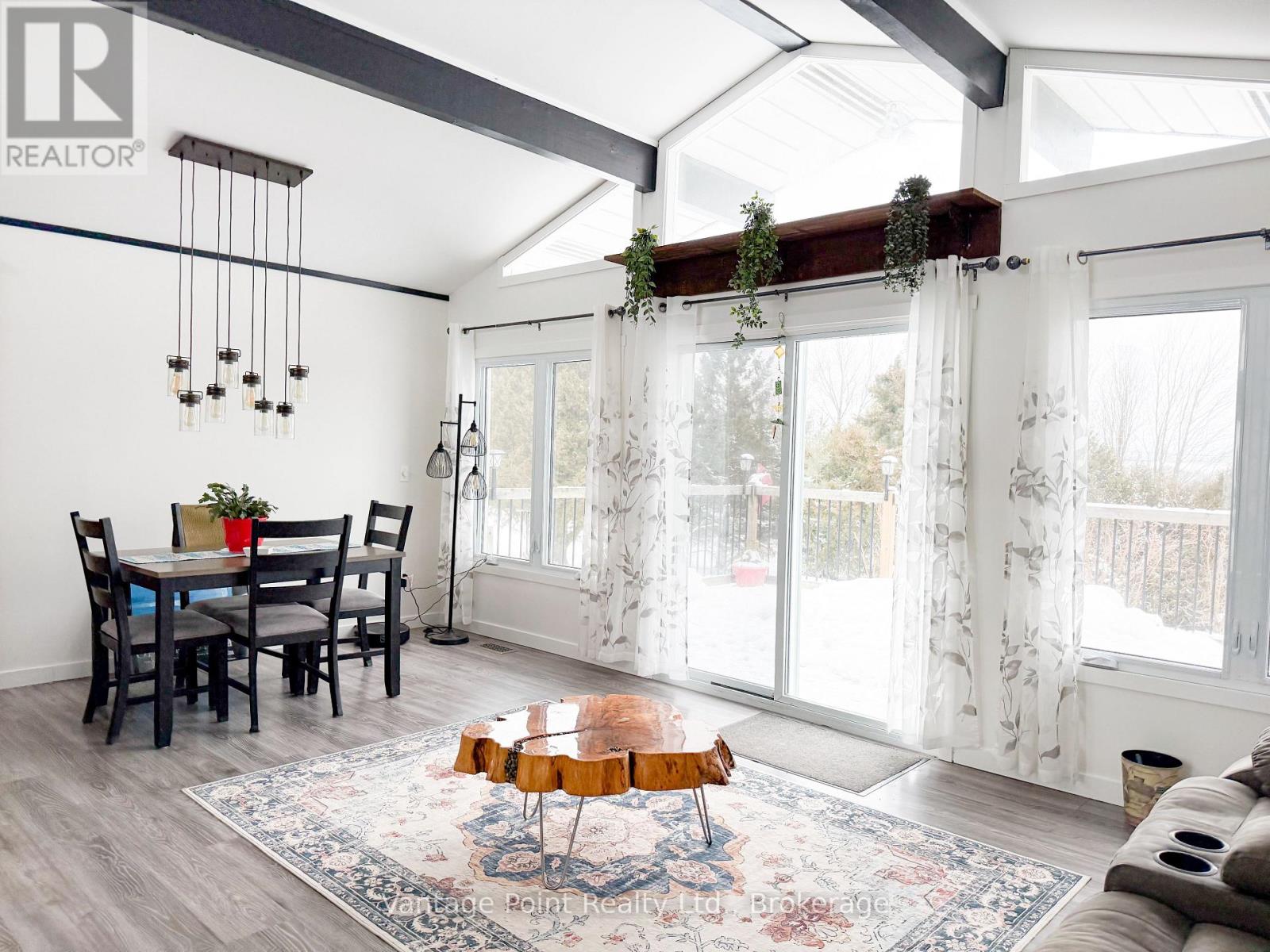 Set high on a gentle rise and surrounded by mature trees, this private retreat offers serene water views of Townsend Lake and a peaceful country atmosphere. Thoughtfully laid out, this move-in-ready 3-bedroom, 2-bath home is ideal as a full-time residence or a four-season getaway. The bright, open-concept main level is enhanced by vaulted ceilings and expansive windows that frame the lake beyond. A beautifully designed kitchen anchors the space, featuring stainless steel appliances, a spacious island, and a distinctive etched-glass pantry door. Step out to the private rear deck to enjoy quiet mornings overlooking the open land, or relax on the front deck while taking in the lake views, both ideal spaces for entertaining. The massive primary bedroom includes a walk-in closet and a 4-piece ensuite, while two additional bedrooms share a well-appointed main bath. The walk-out lower level provides direct access to the spacious garage and offers a generous family room, bonus room, laundry facilities, and ample storage. An asphalt driveway leads to the home, offering easy access and plenty of parking. With privacy created by surrounding trees and natural landscaping, this property delivers a true sense of seclusion while remaining close to recreation. Just a short walk to public access at Townsend Lake and a short drive to Bell's Lake, with nearby golf courses, ATV and snowmobile trails, and cross-country skiing, this is an exceptional opportunity to enjoy relaxed lakeside living year-round.