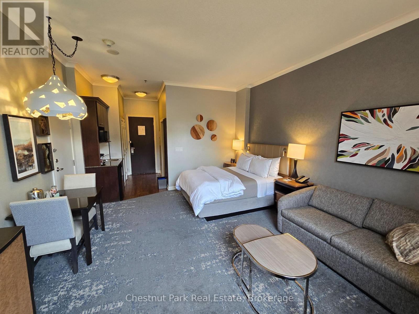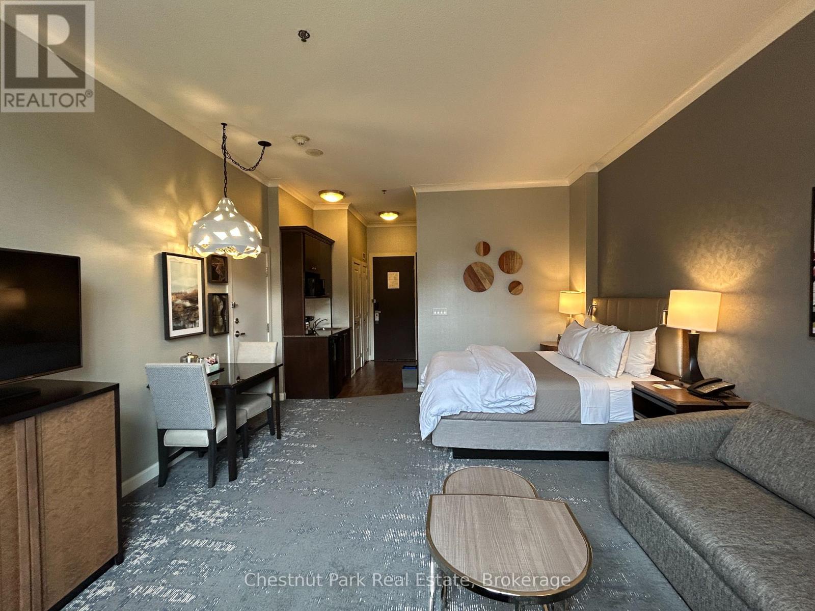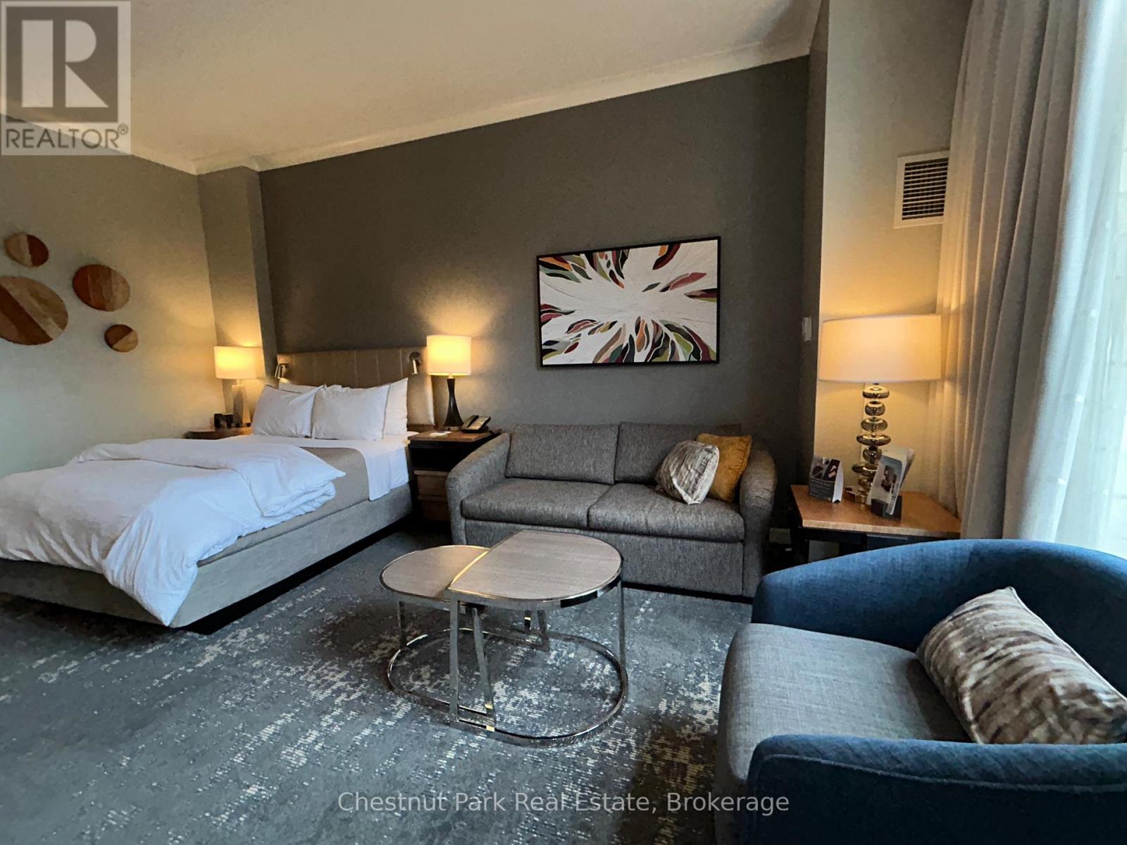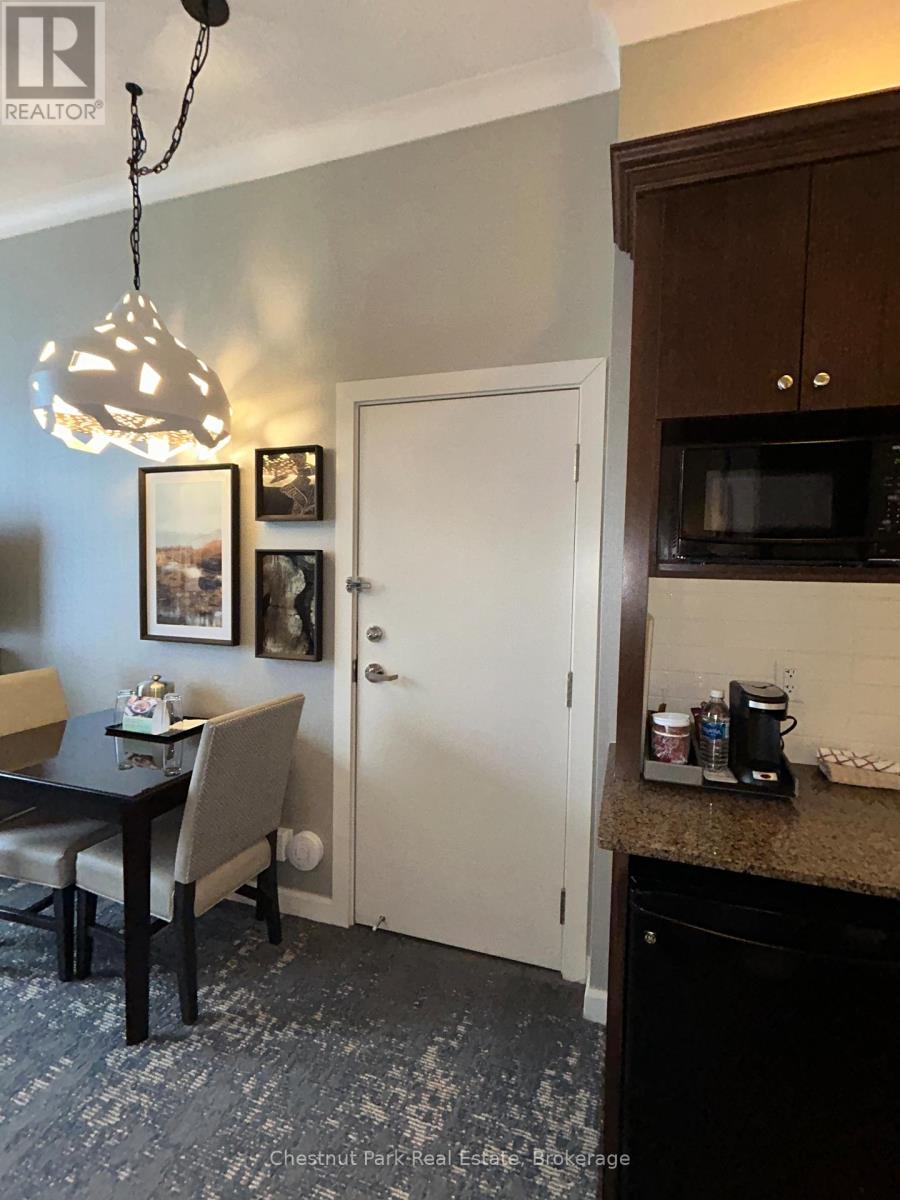 Experience the ultimate in mountainside luxury it this Ski In/Ski Out ground floor Bachelor suite in The Westin Trillium House, nestled in the heart of the Blue Mountain Village. Step into your sun-filled fully furnished, turn-key retreat featuring 10' ceilings. Kitchenette, Westin Heavenley Bed and Bathroom, sleeping accommodation for 4. Sip your morning coffee and check out the ski conditions from your patio. Cozy up to the fireplace with a hot cup of cocoa after a long day on the slopes. An added benefit to this specific Unit is the adjoining separate bachelor suite next door, which would be perfect for additional family or friends to stay! It is conveniently located only steps to the beautiful Lobby and popular and renowned Oliver & Bonacini Cafe Grill/Bar. Feel like dining in, just order from O&B! Full access to the amenities, a well-equipped exercise room, sauna and stunning year-round outdoor swimming pool and hot tub which are close by on the first floor. No waiting for the elevator! Additional conveniences include Concierge, convenient Owner's Check-in service has wonderful friendly staff ready to help you with your needs, Valet Parking, heated underground parking and housekeeping Services. Located just steps from the ski lifts, golf, shops, restaurants and many Blue Mountain events. This is a perfect getaway with income potential through the fully managed rental program. Truly a four-season resort. HST is in addition to sale price but can be deferred if an HST registrant.