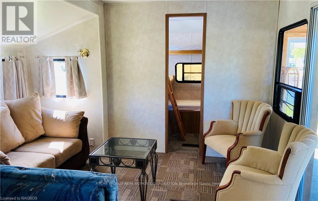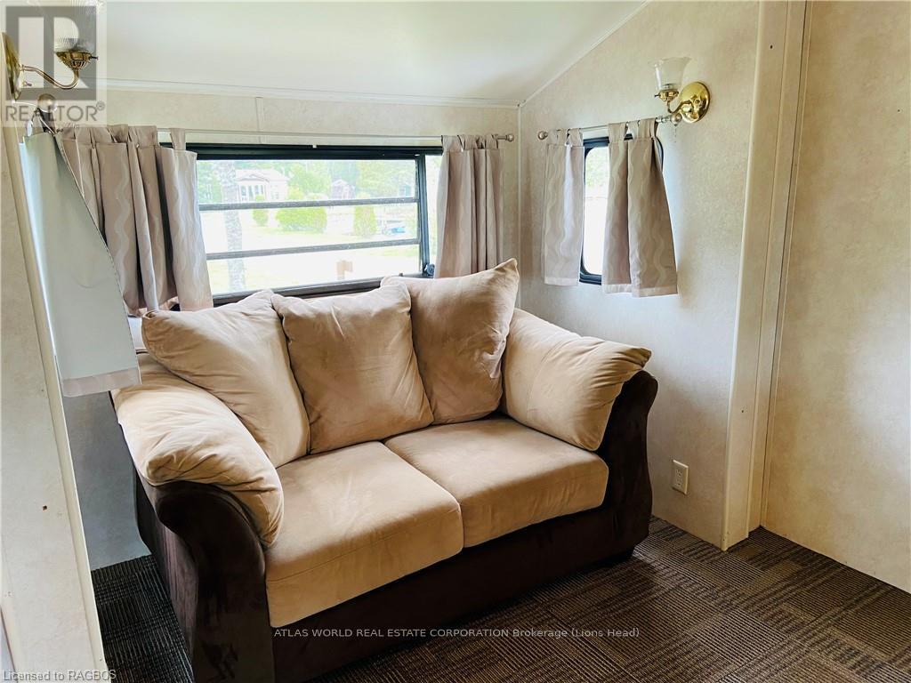 Pinnacle Point has a spacious cedar lined outdoor covered porch area. The porch attaches to a SUMMIT 2 bedroom trailer with a master queen bedroom and a 2nd bedroom with 3 single bunks. Large dining/ kitchen and living room area and 3 piece bathroom. Settle in to your stay in Stokes Bay or venture to near by Lions Head or Tobermory a short drive away to enjoy the sites, amenities and access to The Bruce Trail. Docking available on request.