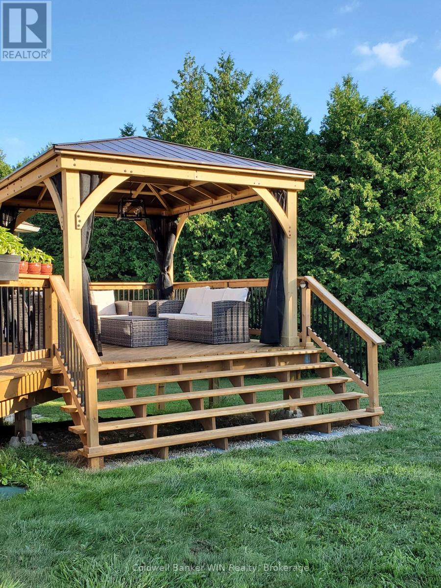 Enjoy space and privacy on this picturesque 1.5-acre lot, offering a versatile layout with two kitchens and two living areas-ideal for multigenerational living. Located in a quiet country subdivision in West Grey, this home is on a paved road in between Hanover and Durham. As you pull into the driveway, you'll immediately notice the landscaped exterior, stone accents, and welcoming walkway leading to the front entrance. The bright and inviting foyer with a tiled floor sets the tone for the home. The main living room and kitchen feature engineered hardwood flooring and an open-concept layout, ideal for everyday living and entertaining. The kitchen offers an abundance of cabinetry, a large island, ceramic tile backsplash, and sliding doors that lead to a spacious wooden deck-perfect for enjoying the peaceful country setting.The main floor continues to impress with a spacious primary bedroom complete with a walk-in closet and a 3-piece ensuite featuring a tiled shower. Two additional bedrooms provide ample space for family or guests, complemented by a 4-piece bathroom and a convenient main-floor laundry room.The fully finished walk-out lower level expands the living space and is ideally suited for an in-law suite or extended family living. This level features a second, oversized kitchen with built-in appliances, a massive family room warmed by a natural gas fireplace, and sliding doors to the stamped concrete patio and salt water hot tub. Two additional bedrooms and a 3-piece bathroom complete this level. Additional features include an attached two-car garage that is insulated and heated, complete with an additional 60-amp electrical panel. The home is heated with natural gas, adding efficiency and year-round comfort. This property blends peaceful country living with easy access to nearby amenities-a rare opportunity to own a spacious, well-appointed home designed for today's multigenerational lifestyle.