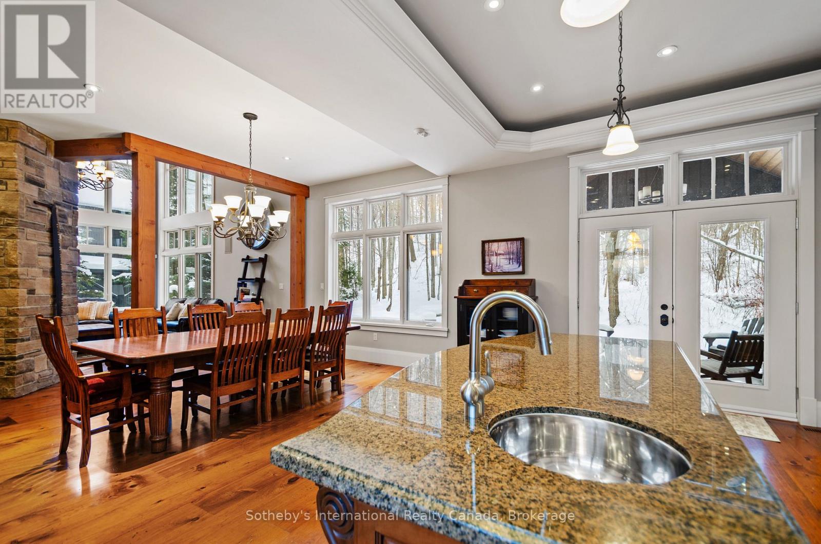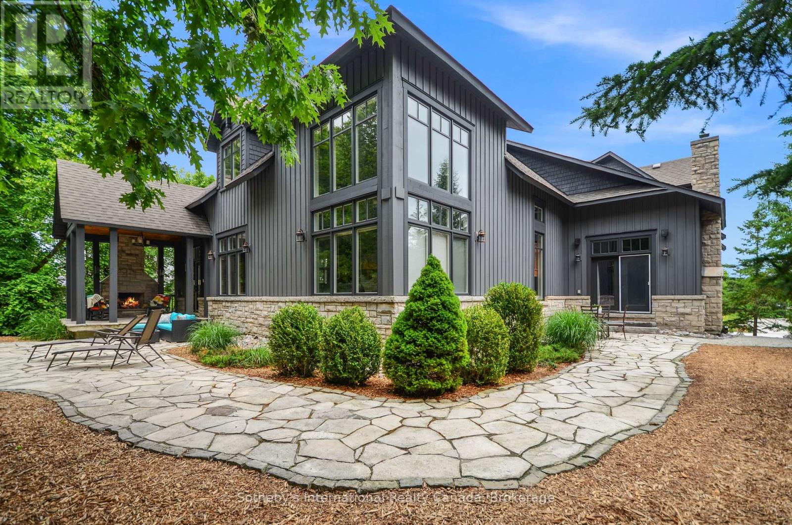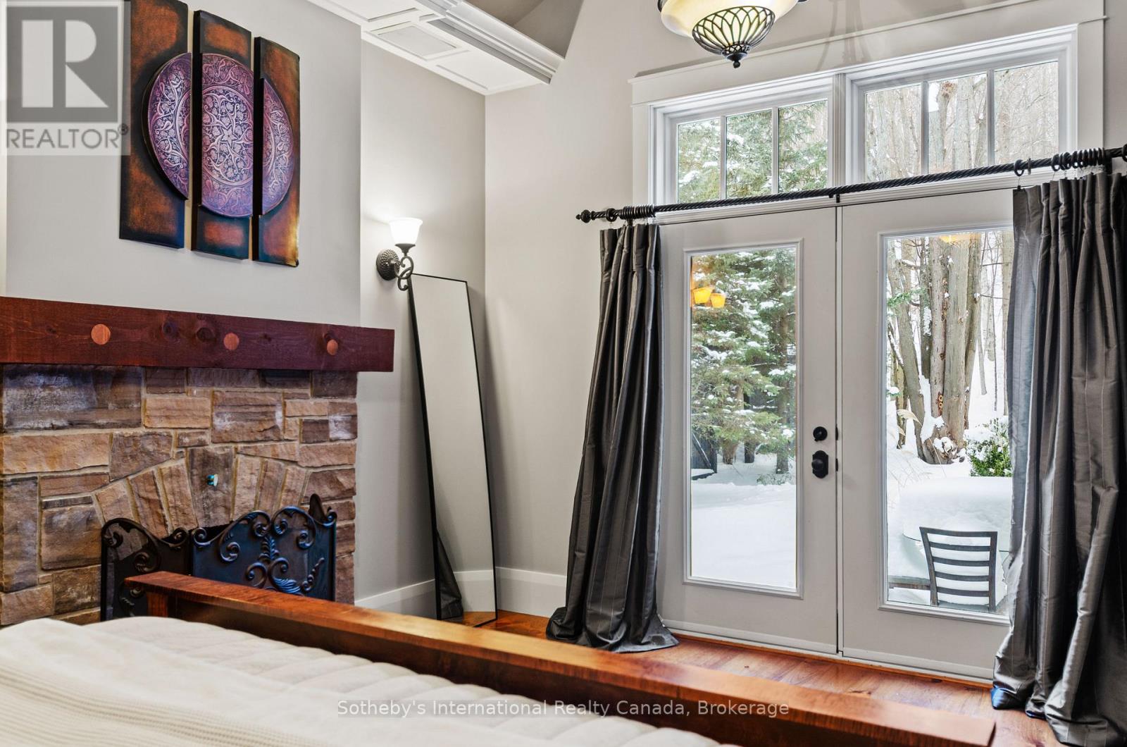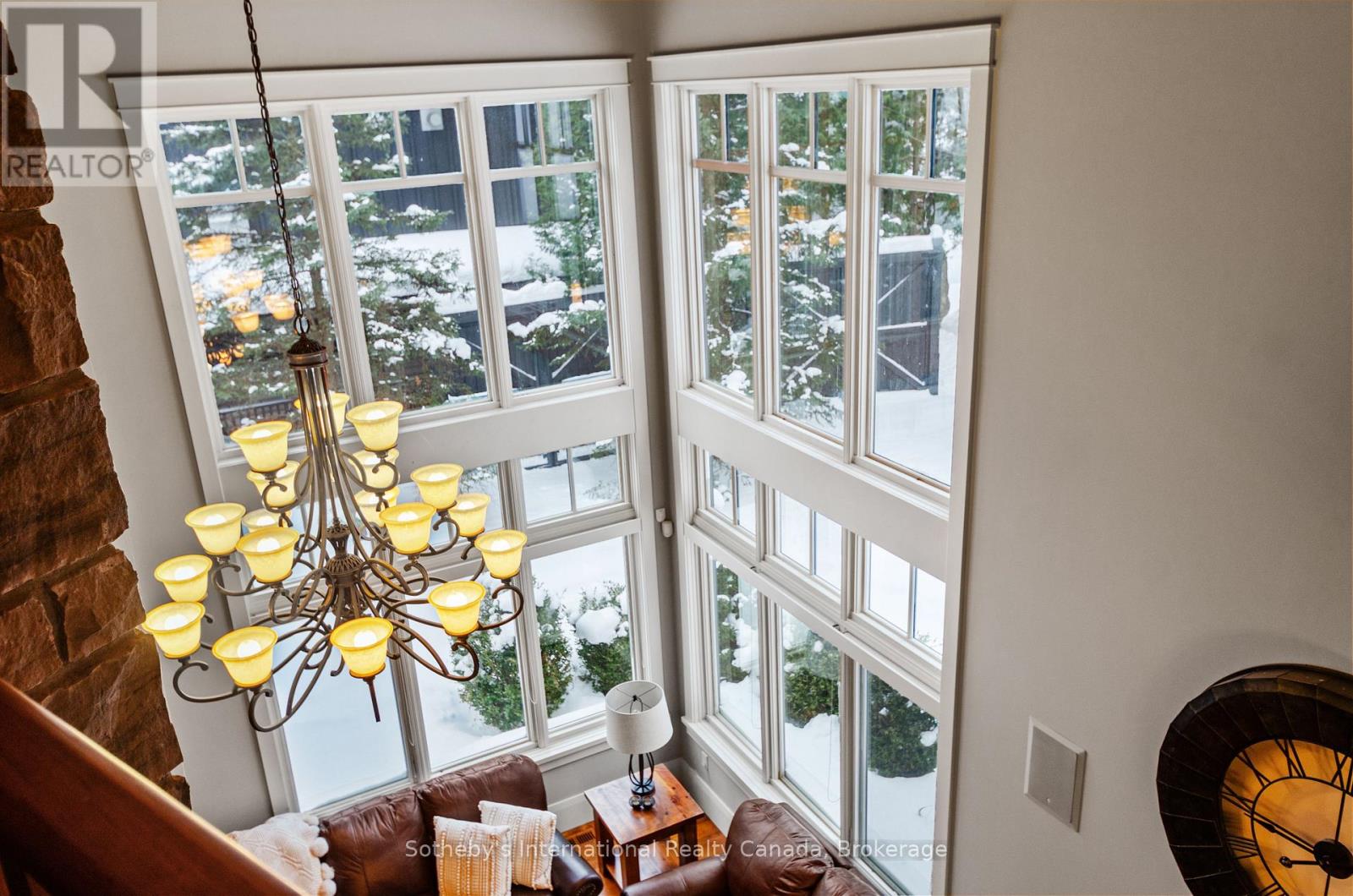 Steps to the base of Alpine Ski Club this magnificent European inspired four season Chalet is an expose of thoughtful architectural detail and high quality finishes. This impeccably designed Open Concept custom home boasts an impressive 23 ft vaulted ceilings in the great room, oversized windows, a two sided stone fireplace and chef's kitchen with walk out to outdoor dining - fireside! With ski-out/ ski-out accessibility, this premium lot and location is the ultimate recreational reprieve for family and guests. A dedicated guest suite with ensuite, kitchenette and its own dedicated entrance, and a main floor primary with ensuite, creates a spacious and expansive living space suitable for entertaining and multi generational living/entertaining. High quality wide plank pine flooring and radiant heat in all bathrooms bring warmth and luxury to this uniformly quality home.When the ski day is over enjoy the lower level that features a generous Wine Cellar, Steam Sauna, Rec Room Bar and Beer Tap, Full Home Gym and first class Media Room that seats 6 people. A double car garage with over 12 ft ceilings provides incredible space and storage. Ceiling 10ft main floor, 23ft vaulted ceiling in great room, 9ft basement, 9ft second floor with vaulted. It will be no surprise that there is an architect in the family! This is a must see.