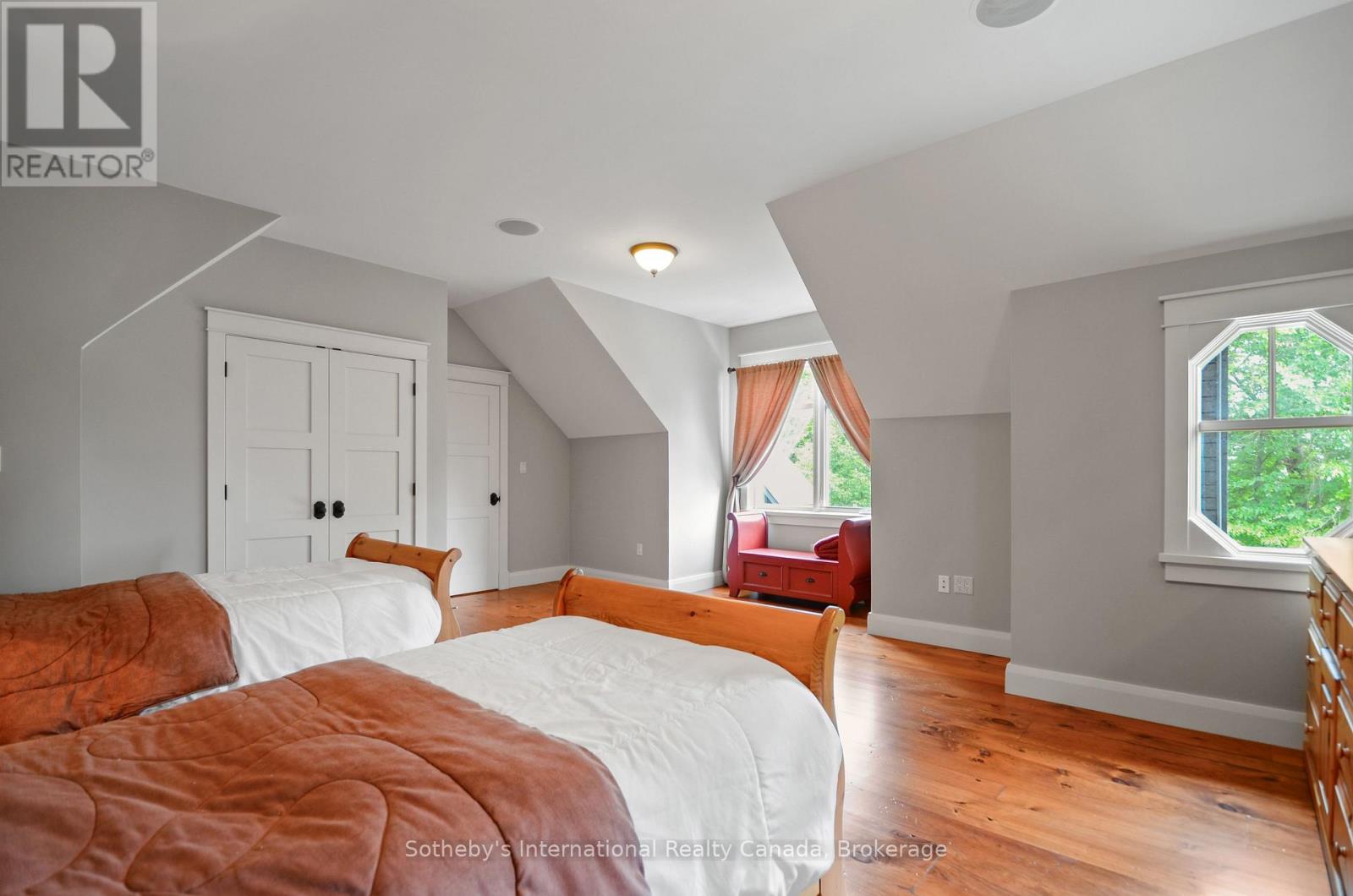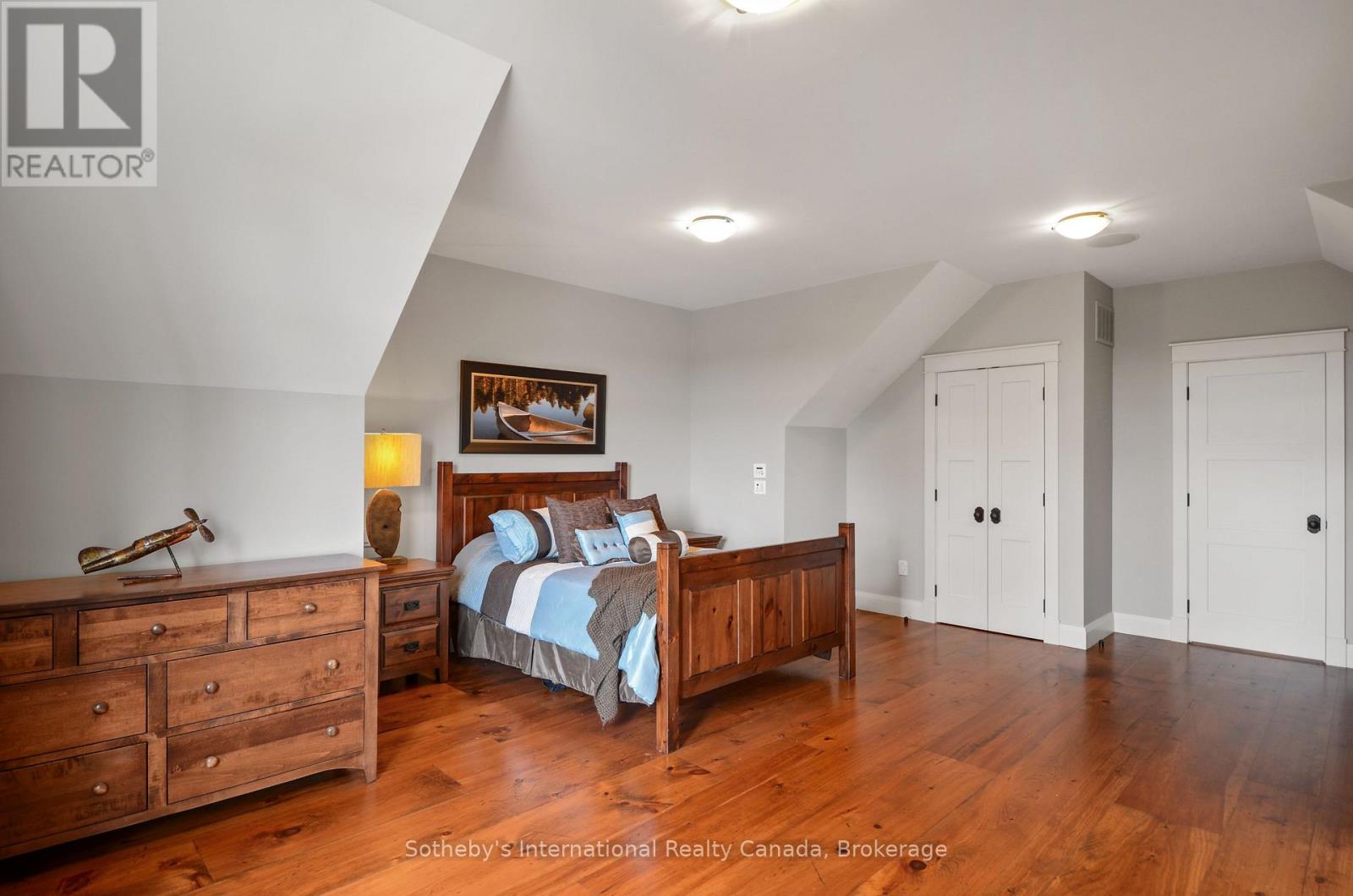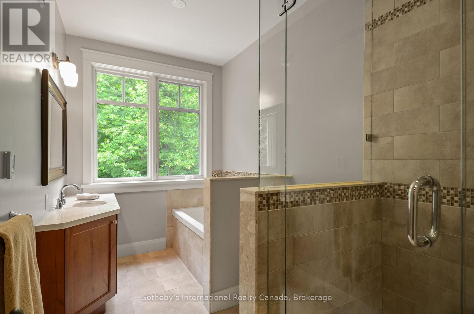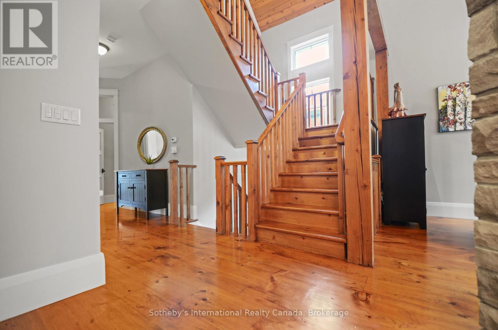 Steps to the base of Alpine Ski Club this magnificent European inspired four season Chalet is an expose of thoughtful architectural detail and high quality finishes. This impeccably designed Open Concept custom home boasts an impressive 23 ft vaulted ceilings in the great room, oversized windows, a two sided stone fireplace and chef's kitchen with walk out to outdoor dining - fireside! With ski-out/ ski-out accessibility, this premium lot and location is the ultimate recreational reprieve for family and guests. A dedicated guest suite with ensuite, kitchenette and its own dedicated entrance, and a main floor primary with ensuite, creates a spacious and expansive living space suitable for entertaining and multi generational living/entertaining. High quality wide plank pine flooring and radiant heat in all bathrooms bring warmth and luxury to this uniformly quality home.When the ski day is over enjoy the lower level that features a generous Wine Cellar, Steam Sauna, Rec Room Bar and Beer Tap, Full Home Gym and first class Media Room that seats 6 people. A double car garage with over 12 ft ceilings provides incredible space and storage. Ceiling 10ft main floor, 23ft vaulted ceiling in great room, 9ft basement, 9ft second floor with vaulted. It will be no surprise that there is an architect in the family! This is a must see.