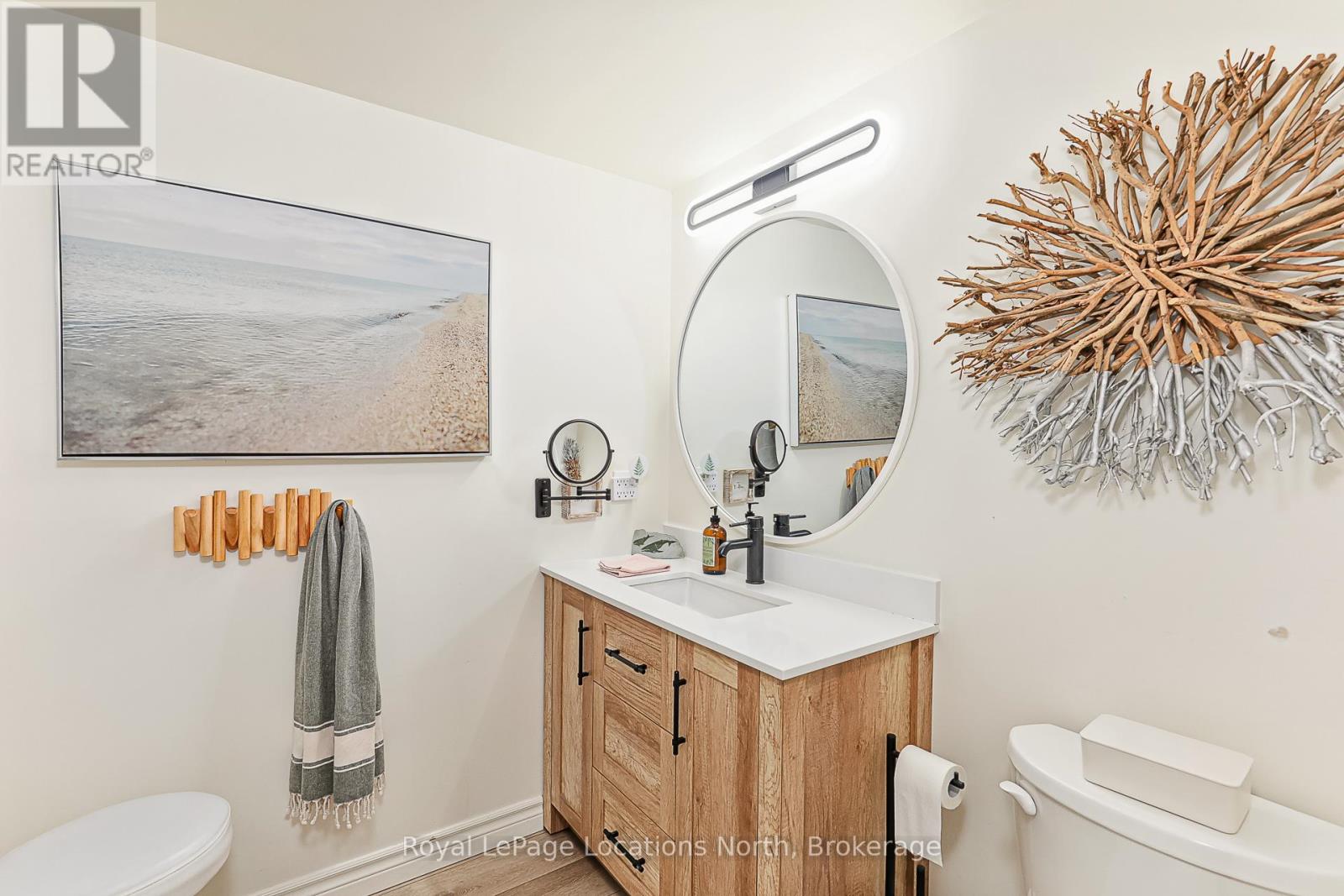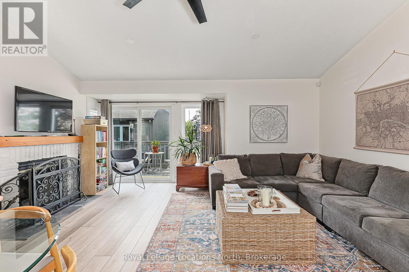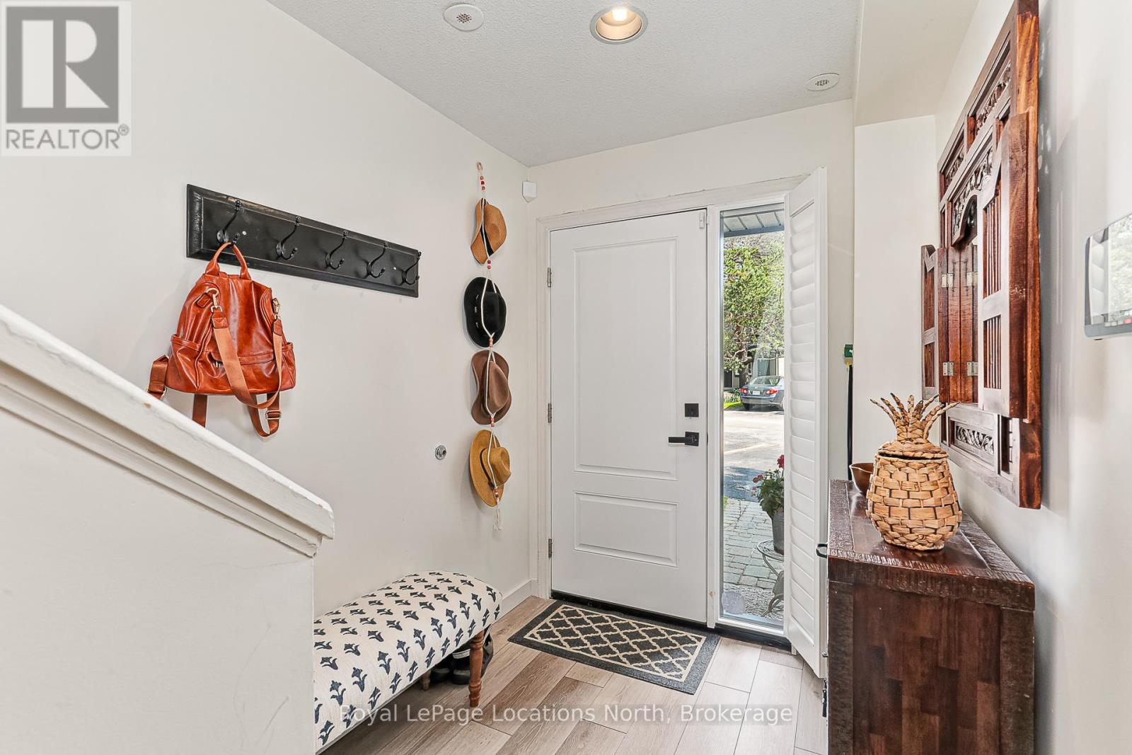 Wait no longer. Experience refined living in this beautifully appointed 3-bedroom, 3-bathroom end-unit condo townhouse, perfectly situated just steps from the marina and moments from the heart of downtown Collingwood. Designed for comfort and elegance, each spacious bedroom boasts its own private en-suite bathroom ideal for hosting guests or creating personal retreats for the whole family. This light-filled end unit offers enhanced privacy and exceptional natural light throughout, featuring the open-concept main living/dining area with a wood fireplace, cathedral ceilings, stainless steel appliances, oversized island with granite countertops and undermount sink. Walk out to a sun-drenched private, balcony perfect for morning coffee or evening entertaining, or enjoy direct access to the lower level patio and green space. Tastefully finished with quality materials, this home is move-in ready and designed for low-maintenance, four-season enjoyment. Located just minutes from world-class skiing at Blue Mountain, waterfront trails, golf, and Collingwood's vibrant shops and dining this is a rare opportunity to enjoy luxurious, carefree living in one of the areas most desirable communities. Ready for ski season! Low monthly condo fee $465