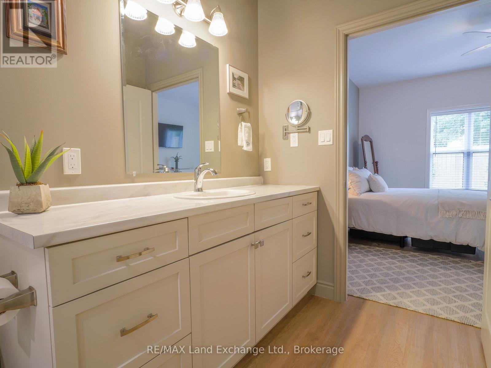 Welcome to Windermere Estates, where comfort, style, and convenience come together. This 4 year old end-unit bungalow townhome offers a relaxed lifestyle close to downtown Kincardine, steps from parks and walking trails, and just minutes to the lake. With 1,280 sq ft of thoughtfully designed living space, its ideal for retirees, downsizers, or anyone seeking easy, maintenance-free living. Built with quality and care, the home features a Shouldice stone exterior and in-floor gas radiant heat for cozy winters, while a heat pump keeps things cool in the summer. Natural gas hookup for BBQ make daily living simple and efficient. Inside, you' ll love the open-concept design, 9' ceilings, and a shiplap feature electric fireplace that adds warmth and charm. The living area open through patio doors to a 10 x 30 concrete patio with privacy fencing a perfect spot for morning coffee or evening gatherings. The primary bedroom includes a private ensuite with a tub/shower combo and a large room for side-by-side laundry, while the second bedroom and main bath with walk-in shower make hosting guests easy. A bonus craft room or office off the garage provides extra versatility, and the garage utility sink is a handy touch for any project. Enjoy peace of mind knowing the condo fee covers lawn care, snow removal, sprinklers, garbage, recycling, street lighting, and road maintenance. Just move in and enjoy! Centrally located near schools, the recreation centre, churches, and everything downtown Kincardine has to offer, this property truly combines modern comfort with small-town charm. Discover carefree condo living at its best and book your showing today!