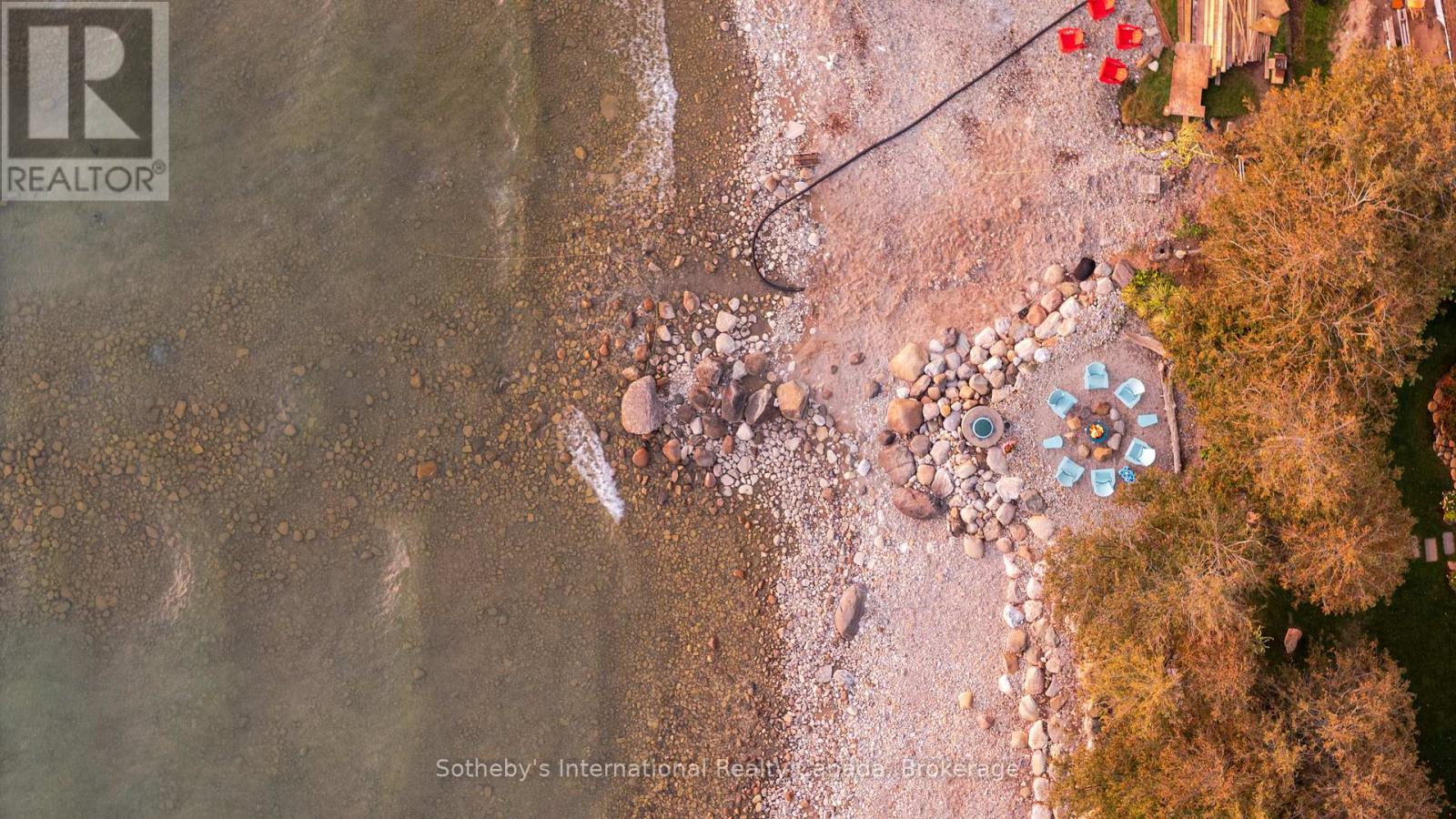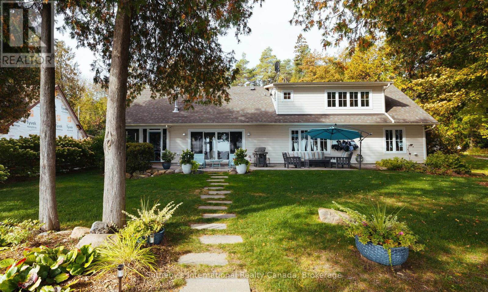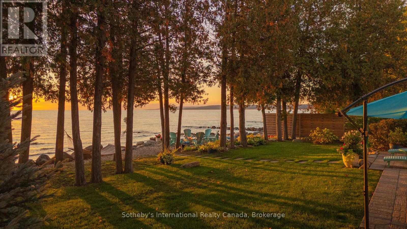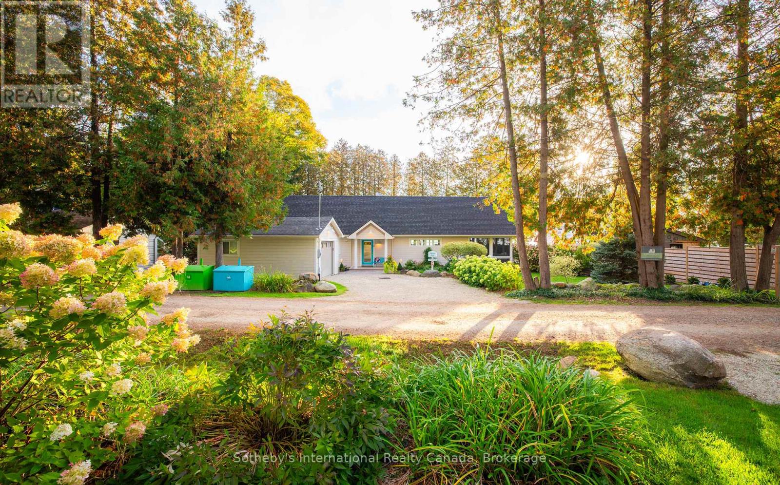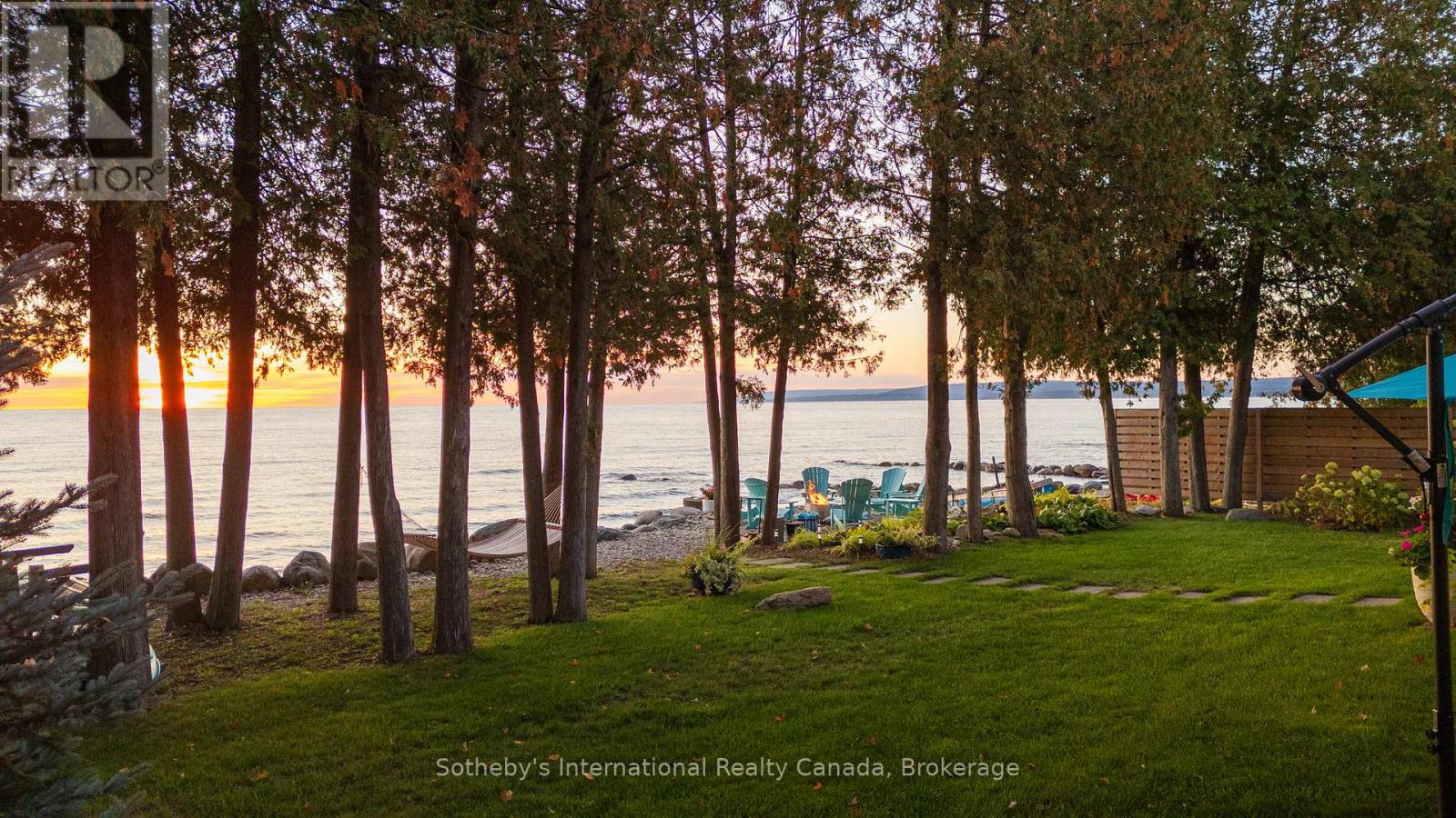 Imagine owning this rare oversized waterfront lot with 94.48 feet of private shallow shoreline on Georgian Bay.  Built new in 2017, this modern custom cottage blends clean design, quality craftsmanship, and an unbeatable location, complete with some of the best sunrises the Bay has to offer. Inside, the 3-bedroom, 2-bath layout offers 1,215 sq. ft. of beautifully finished living space. The great room features shiplap cathedral ceilings, while the kitchen includes custom face frame kitchen cabinets, quartz and stainless counters, top-end appliances, and a large island with seating for 8. The open-concept living room showcases luxury vinyl flooring, a gas (propane) fireplace, and patio doors opening to a landscaped yard with expansive water views, multiple seating areas, and a waterside firepit perfect for soaking in your Georgian Bay lifestyle. Another set of patio doors leads to the screened-in porch, a spacious dining area with heaters, creating the ideal 3-season space for al fresco meals and evening relaxation. The detached garage features a new insulated garage door with proslate wall panels to maximize storage, with the back section being converted to heated storage with shiplap walls, a heated tile  floor and an electric runtal wall panel. Additional features include a Generac generator and a heated 4' crawl space for added storage. Beyond the cottage, the property offers exciting development opportunities: build an additional bunkie or sports court on your back lot, or explore rental potential in one of the area's most desirable waterfront communities. Nothing has been missed here - new propane furnace (2025), Lifebreath HRV, Navien water heater, sump pump with alarm, full water treatment system (pressure tank, softener, UV & RO), 4 security cameras, alarm system, outdoor: hot & cold taps & BBQ gas line. Enjoy all this just 2.5 hr from GTA, short drive to Meaford, Thornbury & Owen Sound - enjoy golf, skiing, marina restaurants, boutiques, & vibrant community.