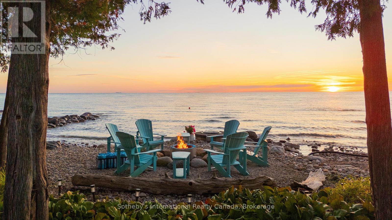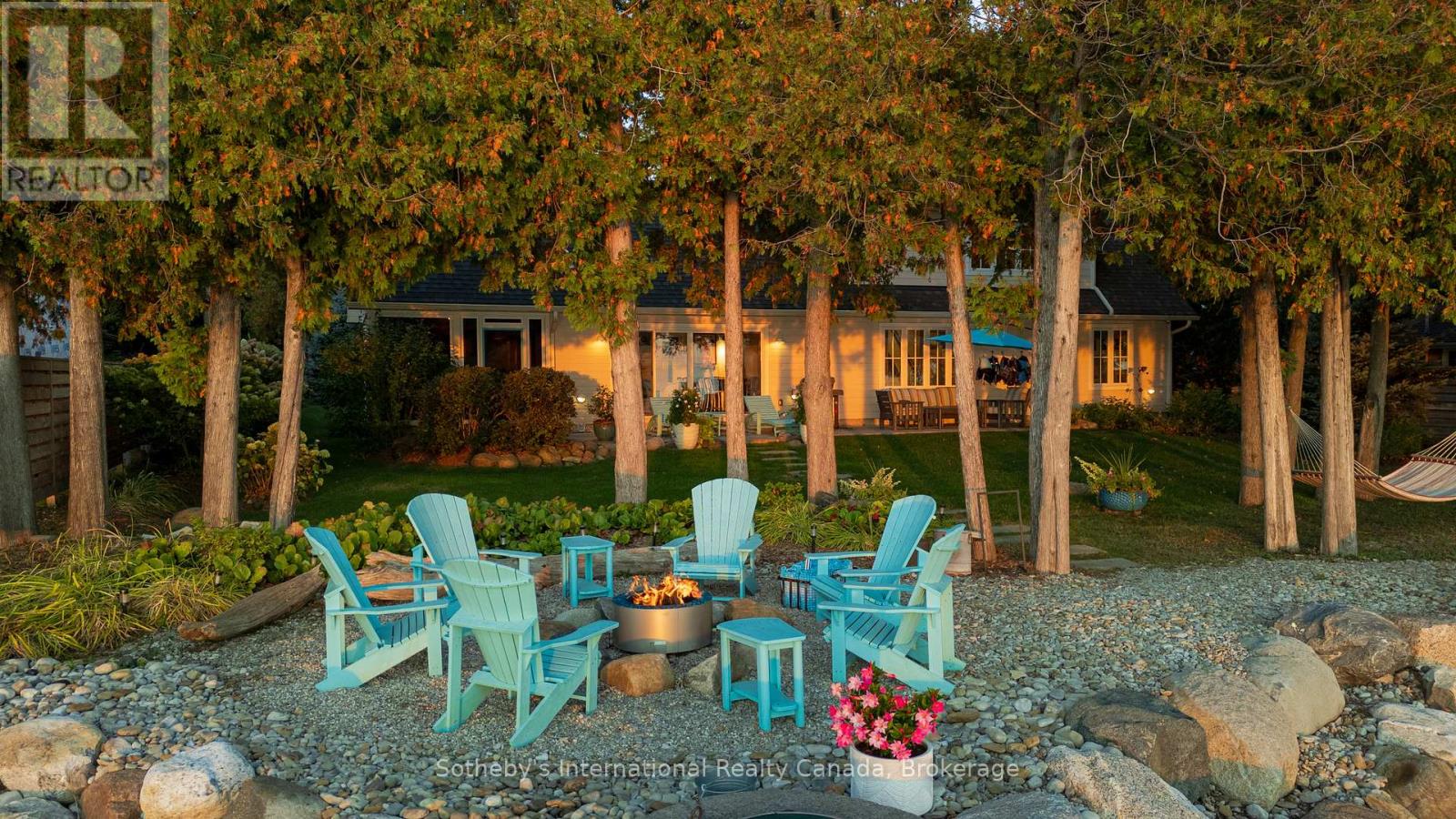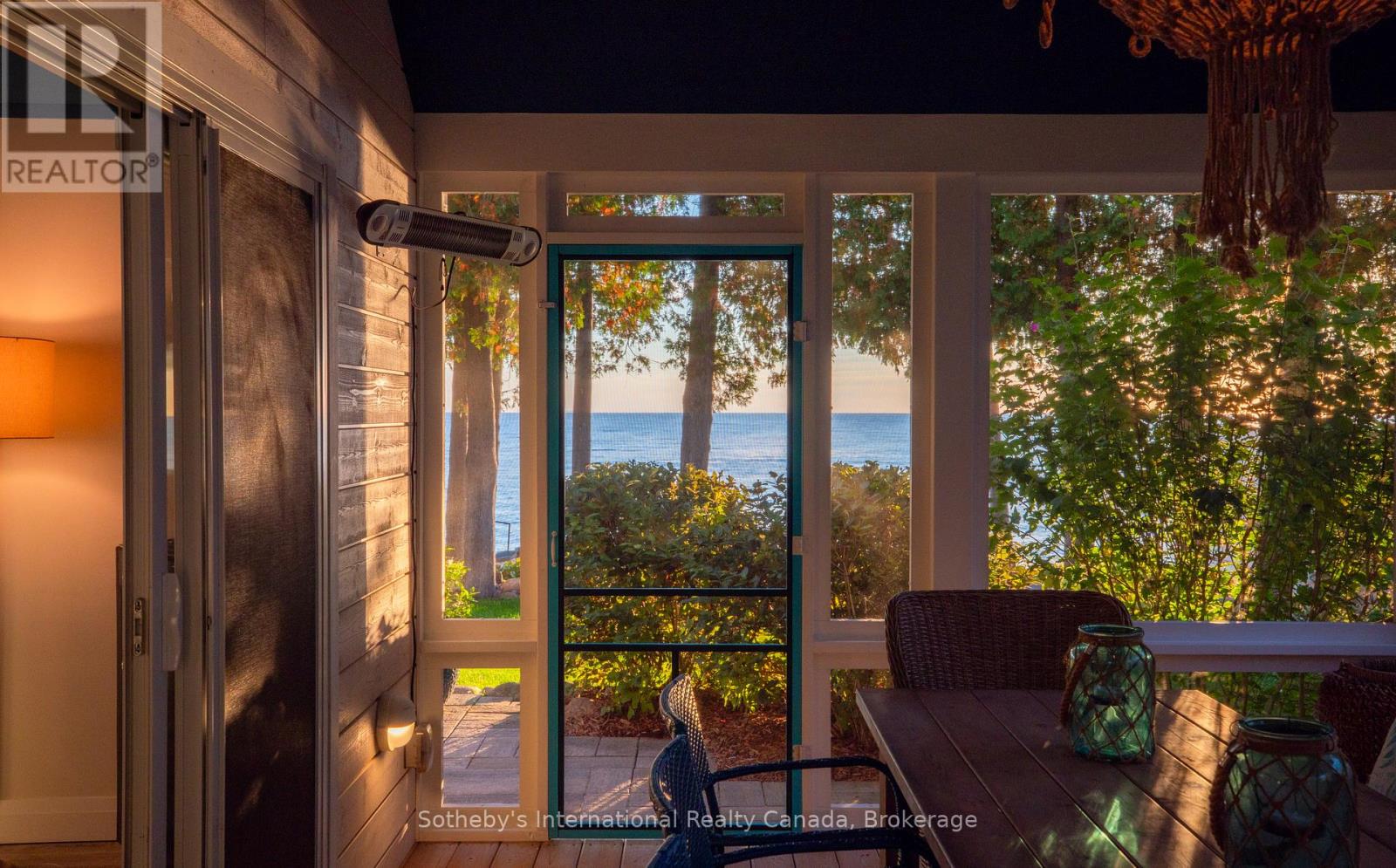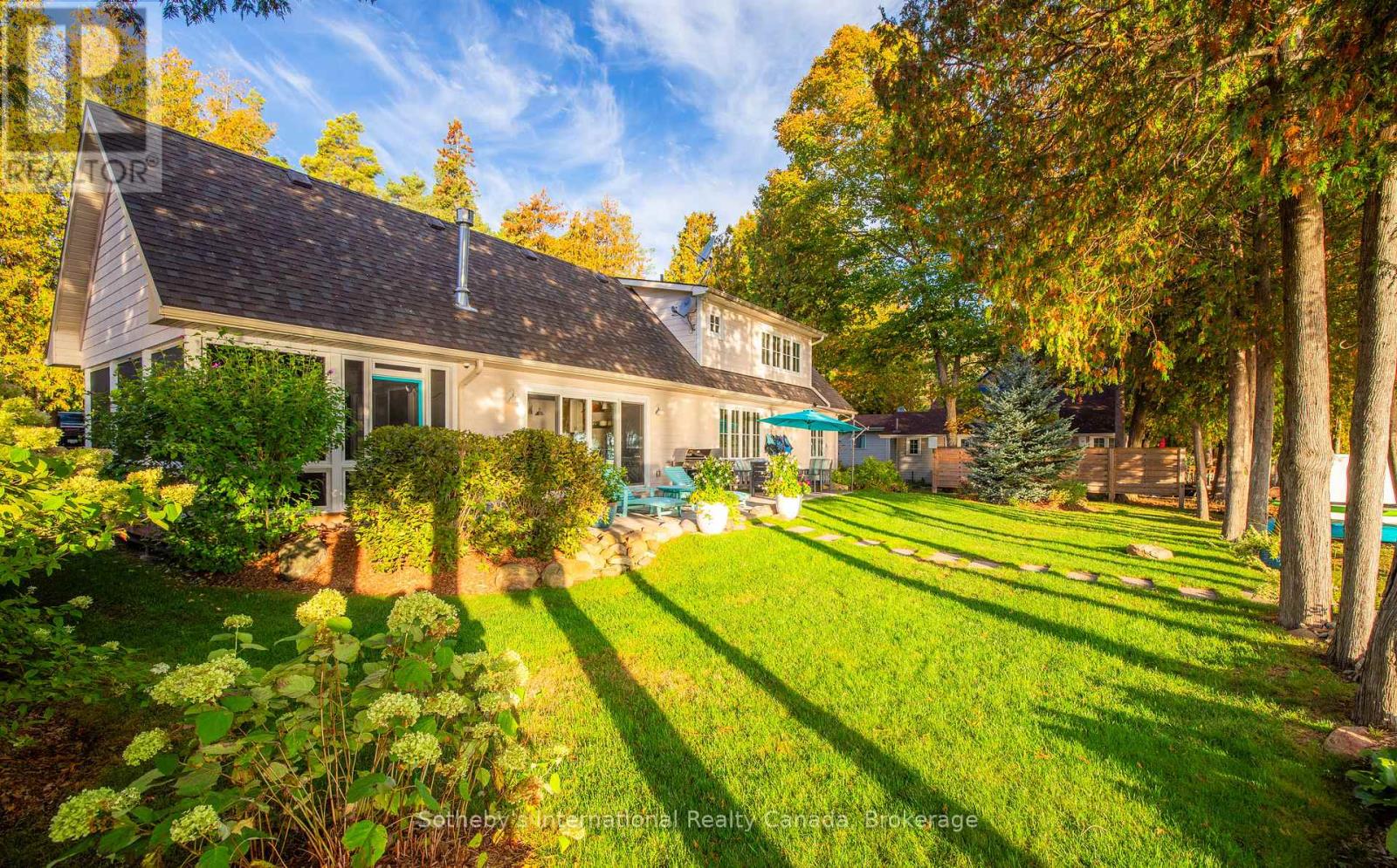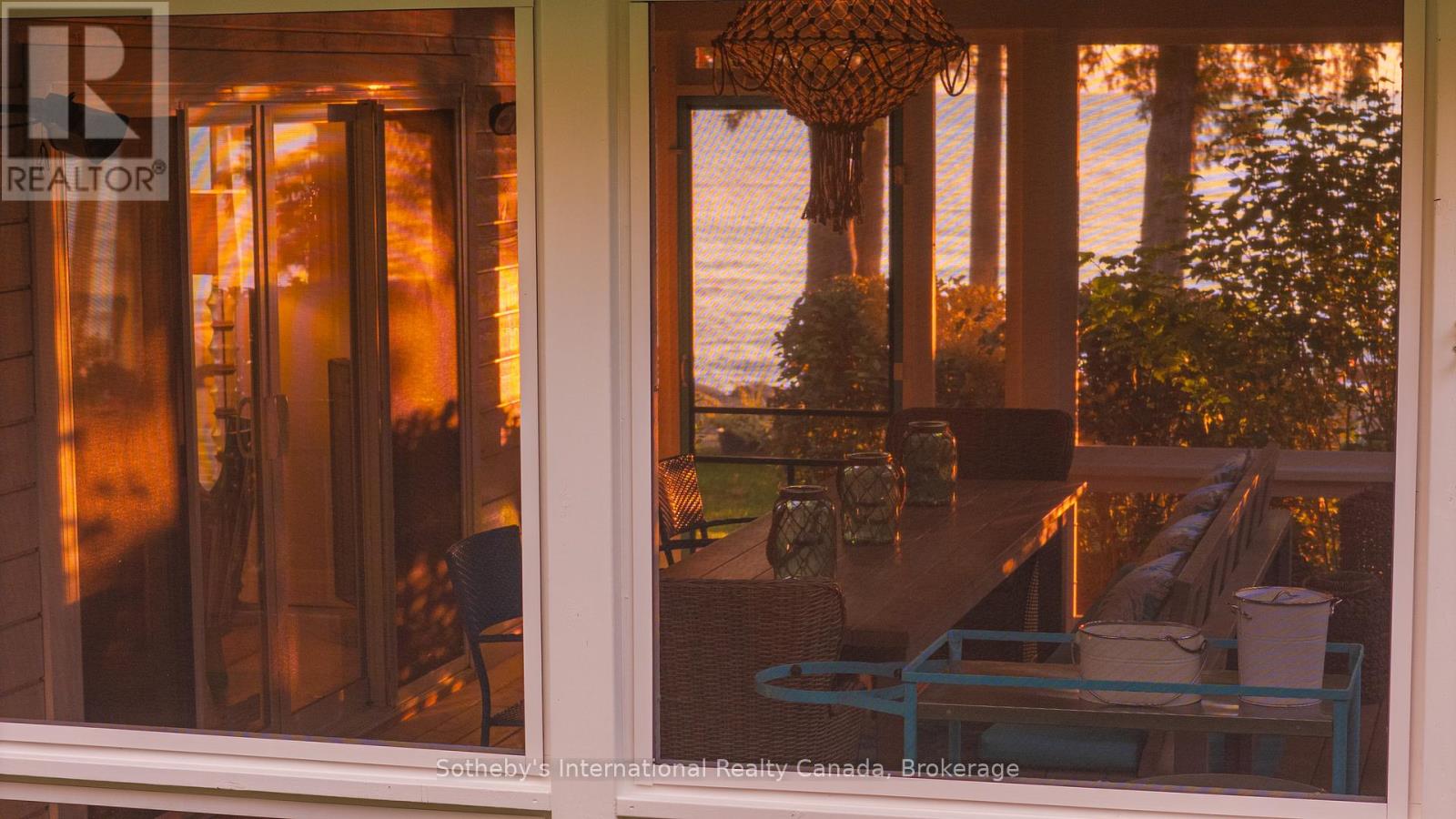 Imagine owning this rare oversized waterfront lot with 94.48 feet of private shallow shoreline on Georgian Bay.  Built new in 2017, this modern custom cottage blends clean design, quality craftsmanship, and an unbeatable location, complete with some of the best sunrises the Bay has to offer. Inside, the 3-bedroom, 2-bath layout offers 1,215 sq. ft. of beautifully finished living space. The great room features shiplap cathedral ceilings, while the kitchen includes custom face frame kitchen cabinets, quartz and stainless counters, top-end appliances, and a large island with seating for 8. The open-concept living room showcases luxury vinyl flooring, a gas (propane) fireplace, and patio doors opening to a landscaped yard with expansive water views, multiple seating areas, and a waterside firepit perfect for soaking in your Georgian Bay lifestyle. Another set of patio doors leads to the screened-in porch, a spacious dining area with heaters, creating the ideal 3-season space for al fresco meals and evening relaxation. The detached garage features a new insulated garage door with proslate wall panels to maximize storage, with the back section being converted to heated storage with shiplap walls, a heated tile  floor and an electric runtal wall panel. Additional features include a Generac generator and a heated 4' crawl space for added storage. Beyond the cottage, the property offers exciting development opportunities: build an additional bunkie or sports court on your back lot, or explore rental potential in one of the area's most desirable waterfront communities. Nothing has been missed here - new propane furnace (2025), Lifebreath HRV, Navien water heater, sump pump with alarm, full water treatment system (pressure tank, softener, UV & RO), 4 security cameras, alarm system, outdoor: hot & cold taps & BBQ gas line. Enjoy all this just 2.5 hr from GTA, short drive to Meaford, Thornbury & Owen Sound - enjoy golf, skiing, marina restaurants, boutiques, & vibrant community.