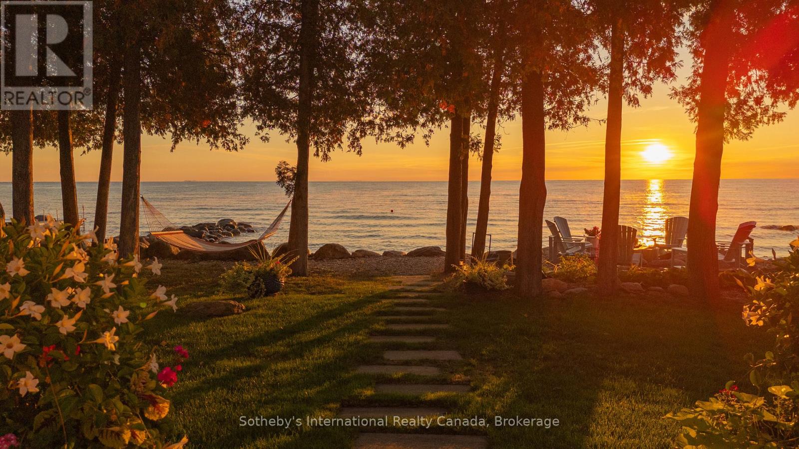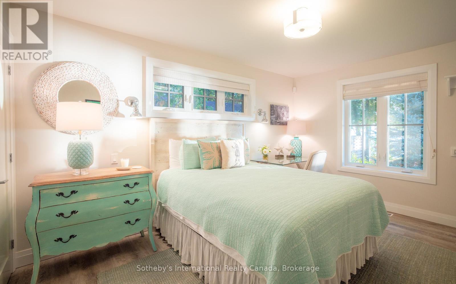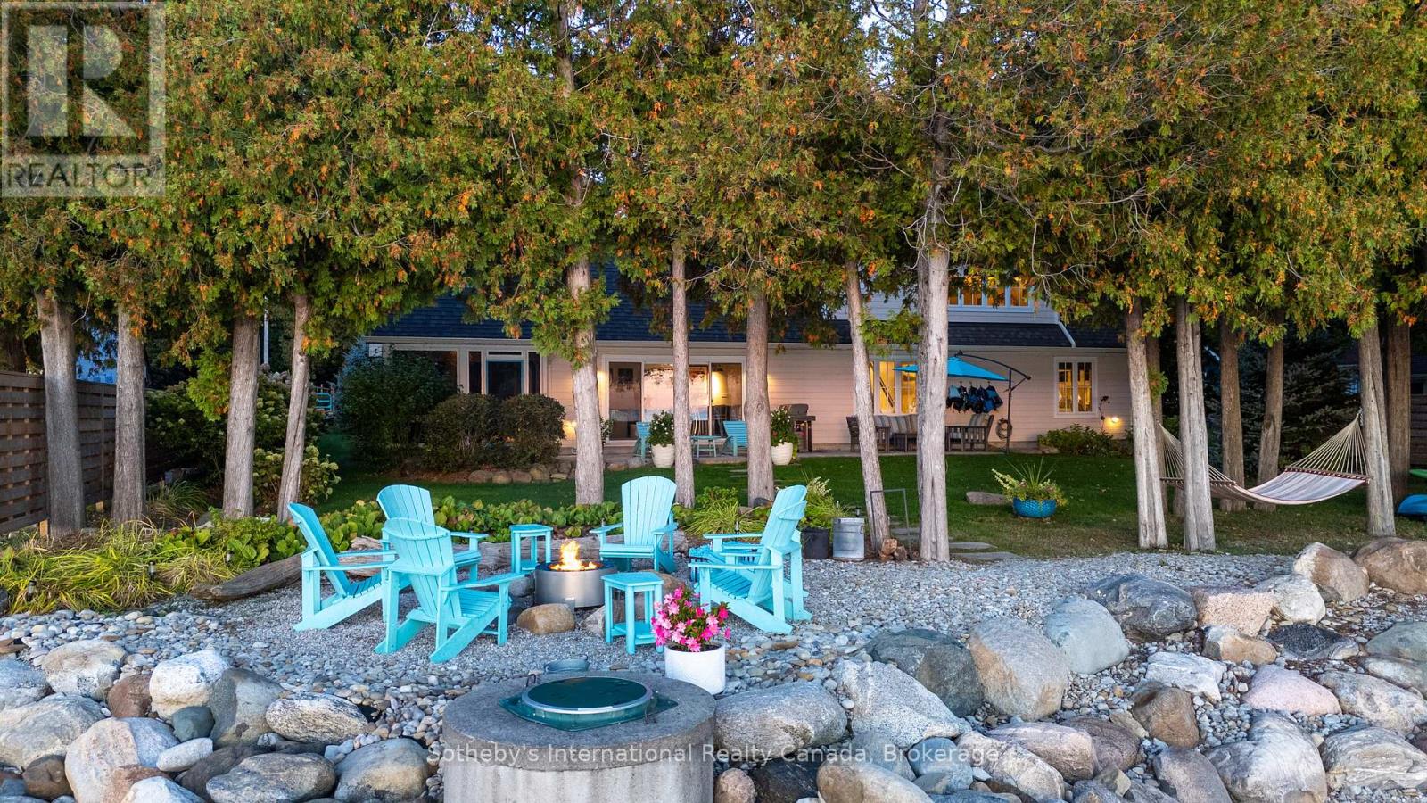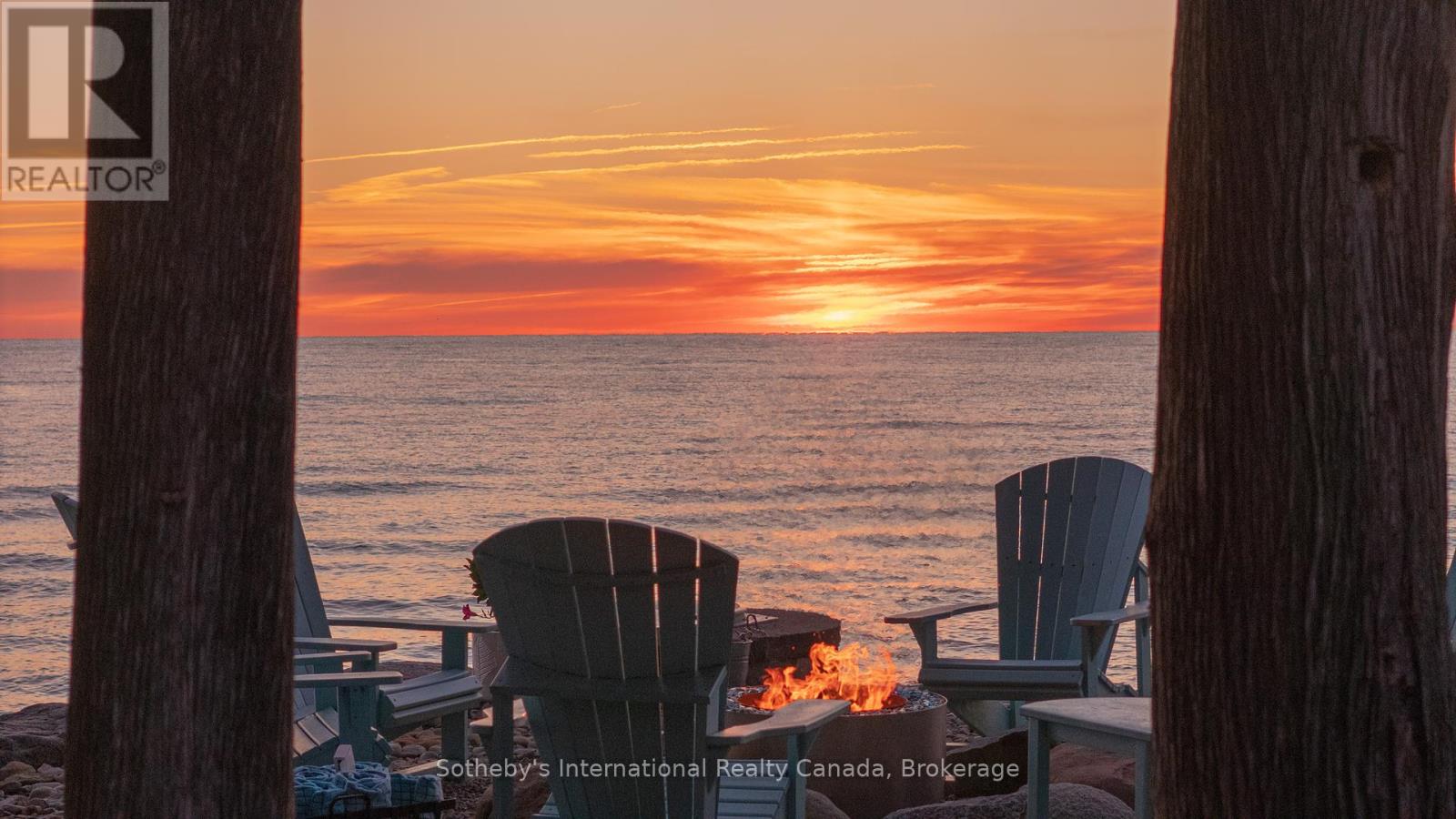 Imagine owning this rare oversized waterfront lot with 94.48 feet of private shallow shoreline on Georgian Bay.  Built new in 2017, this modern custom cottage blends clean design, quality craftsmanship, and an unbeatable location, complete with some of the best sunrises the Bay has to offer. Inside, the 3-bedroom, 2-bath layout offers 1,215 sq. ft. of beautifully finished living space. The great room features shiplap cathedral ceilings, while the kitchen includes custom face frame kitchen cabinets, quartz and stainless counters, top-end appliances, and a large island with seating for 8. The open-concept living room showcases luxury vinyl flooring, a gas (propane) fireplace, and patio doors opening to a landscaped yard with expansive water views, multiple seating areas, and a waterside firepit perfect for soaking in your Georgian Bay lifestyle. Another set of patio doors leads to the screened-in porch, a spacious dining area with heaters, creating the ideal 3-season space for al fresco meals and evening relaxation. The detached garage features a new insulated garage door with proslate wall panels to maximize storage, with the back section being converted to heated storage with shiplap walls, a heated tile  floor and an electric runtal wall panel. Additional features include a Generac generator and a heated 4' crawl space for added storage. Beyond the cottage, the property offers exciting development opportunities: build an additional bunkie or sports court on your back lot, or explore rental potential in one of the area's most desirable waterfront communities. Nothing has been missed here - new propane furnace (2025), Lifebreath HRV, Navien water heater, sump pump with alarm, full water treatment system (pressure tank, softener, UV & RO), 4 security cameras, alarm system, outdoor: hot & cold taps & BBQ gas line. Enjoy all this just 2.5 hr from GTA, short drive to Meaford, Thornbury & Owen Sound - enjoy golf, skiing, marina restaurants, boutiques, & vibrant community.