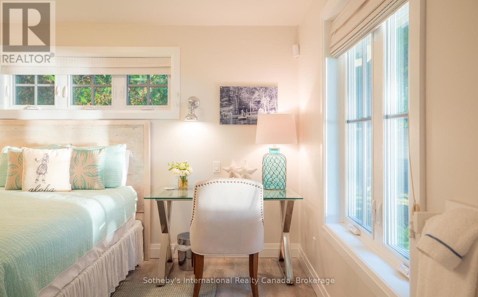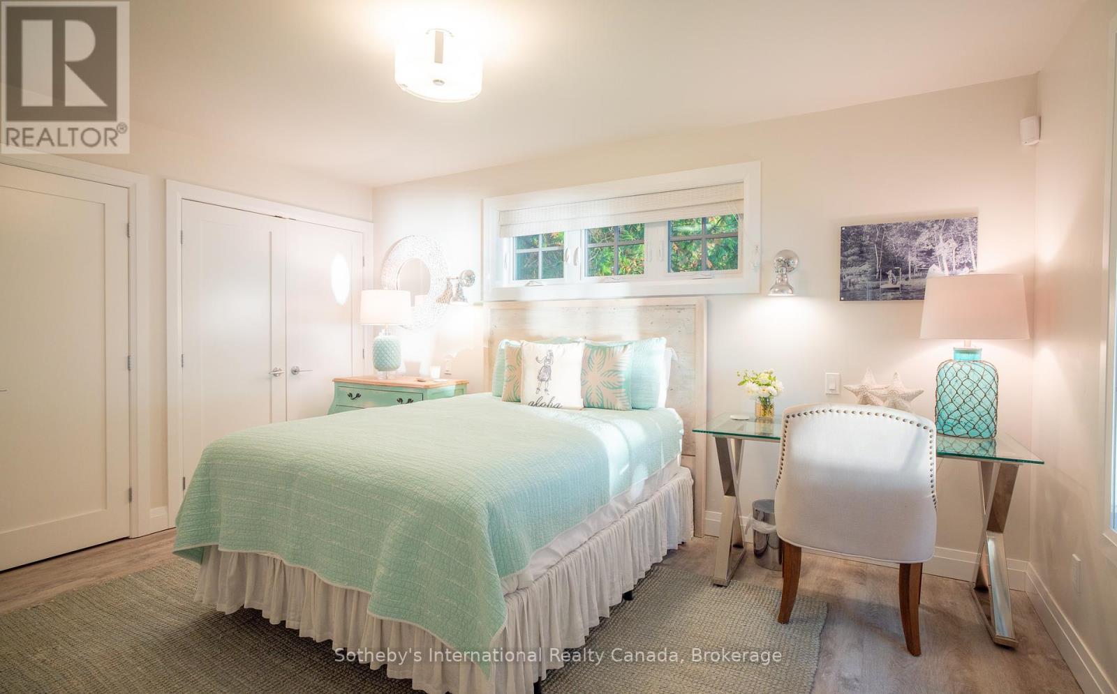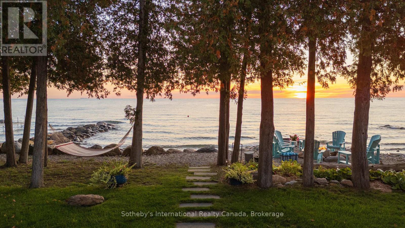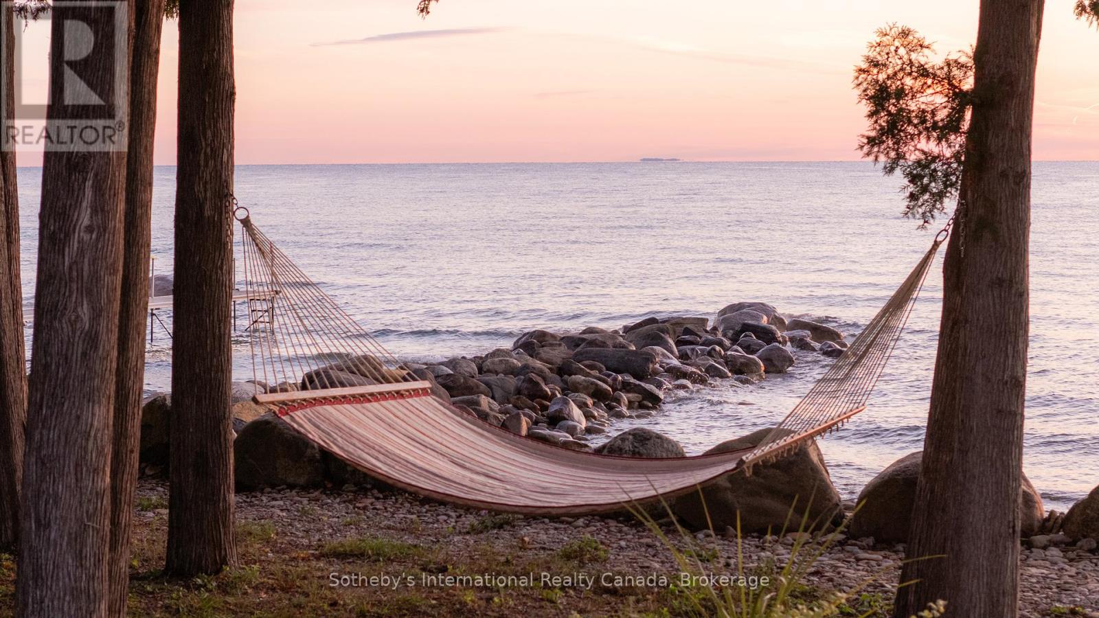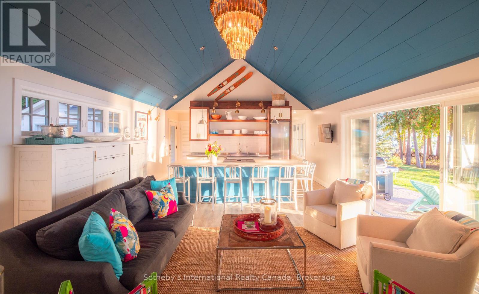 Imagine owning this rare oversized waterfront lot with 94.48 feet of private shallow shoreline on Georgian Bay.  Built new in 2017, this modern custom cottage blends clean design, quality craftsmanship, and an unbeatable location, complete with some of the best sunrises the Bay has to offer. Inside, the 3-bedroom, 2-bath layout offers 1,215 sq. ft. of beautifully finished living space. The great room features shiplap cathedral ceilings, while the kitchen includes custom face frame kitchen cabinets, quartz and stainless counters, top-end appliances, and a large island with seating for 8. The open-concept living room showcases luxury vinyl flooring, a gas (propane) fireplace, and patio doors opening to a landscaped yard with expansive water views, multiple seating areas, and a waterside firepit perfect for soaking in your Georgian Bay lifestyle. Another set of patio doors leads to the screened-in porch, a spacious dining area with heaters, creating the ideal 3-season space for al fresco meals and evening relaxation. The detached garage features a new insulated garage door with proslate wall panels to maximize storage, with the back section being converted to heated storage with shiplap walls, a heated tile  floor and an electric runtal wall panel. Additional features include a Generac generator and a heated 4' crawl space for added storage. Beyond the cottage, the property offers exciting development opportunities: build an additional bunkie or sports court on your back lot, or explore rental potential in one of the area's most desirable waterfront communities. Nothing has been missed here - new propane furnace (2025), Lifebreath HRV, Navien water heater, sump pump with alarm, full water treatment system (pressure tank, softener, UV & RO), 4 security cameras, alarm system, outdoor: hot & cold taps & BBQ gas line. Enjoy all this just 2.5 hr from GTA, short drive to Meaford, Thornbury & Owen Sound - enjoy golf, skiing, marina restaurants, boutiques, & vibrant community.