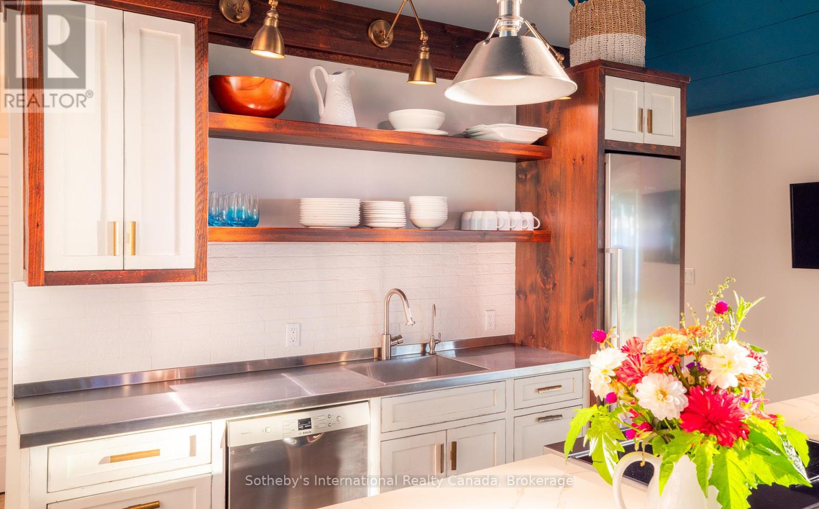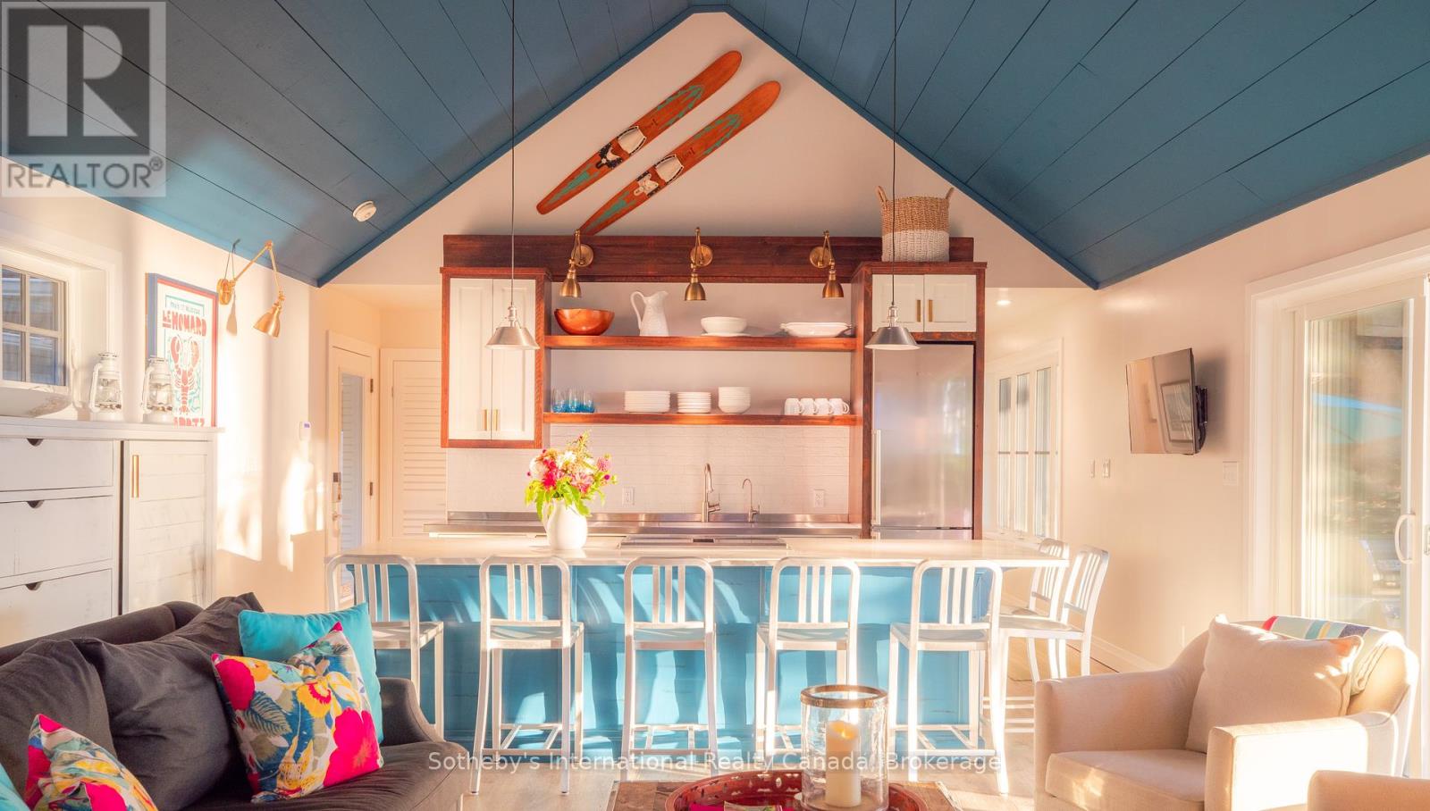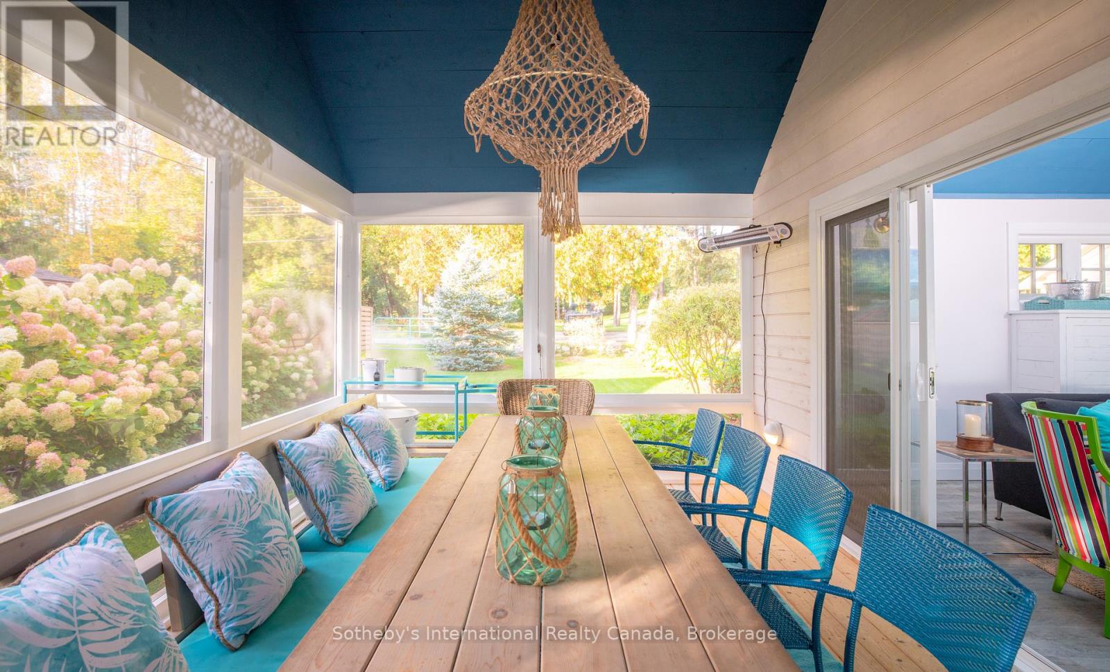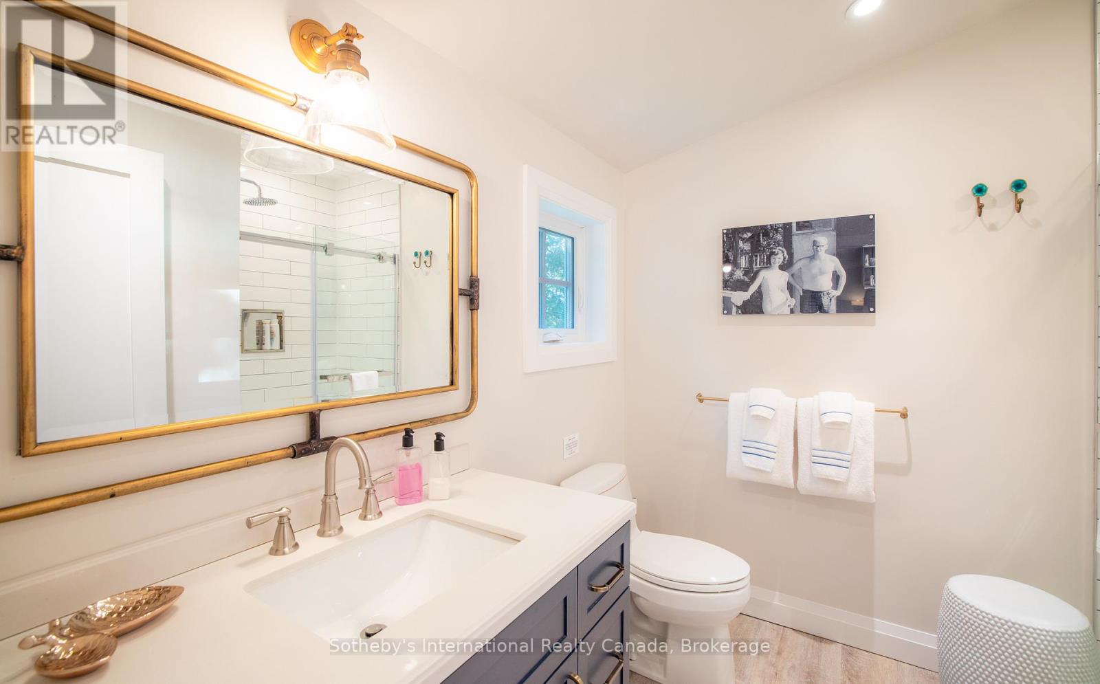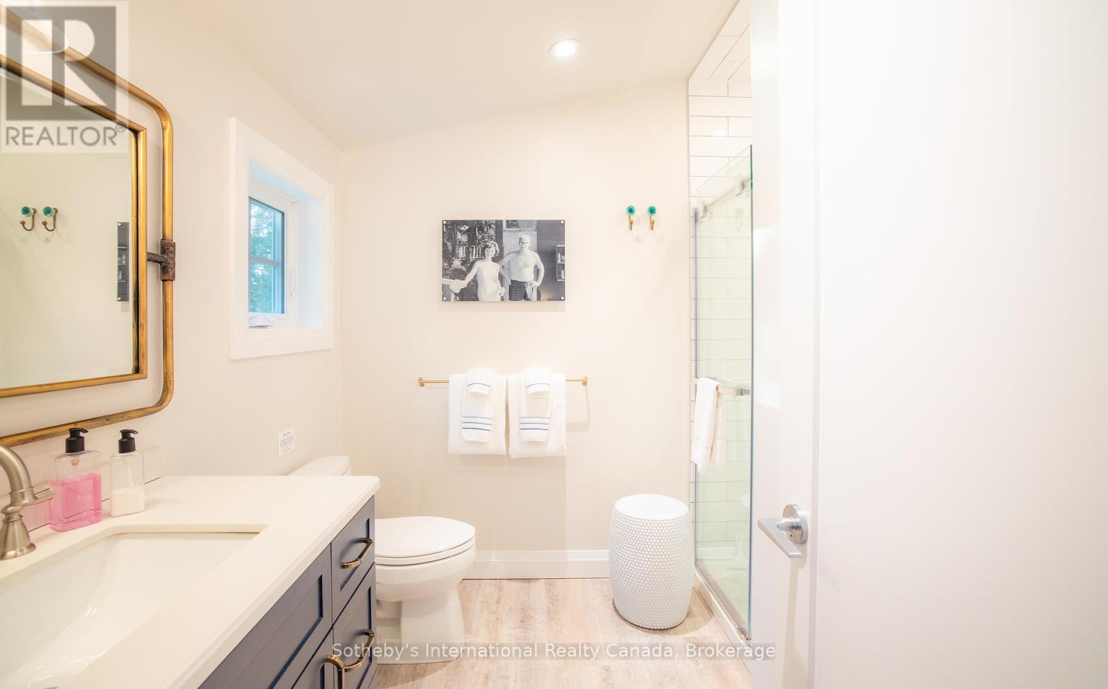 Imagine owning this rare oversized waterfront lot with 94.48 feet of private shallow shoreline on Georgian Bay.  Built new in 2017, this modern custom cottage blends clean design, quality craftsmanship, and an unbeatable location, complete with some of the best sunrises the Bay has to offer. Inside, the 3-bedroom, 2-bath layout offers 1,215 sq. ft. of beautifully finished living space. The great room features shiplap cathedral ceilings, while the kitchen includes custom face frame kitchen cabinets, quartz and stainless counters, top-end appliances, and a large island with seating for 8. The open-concept living room showcases luxury vinyl flooring, a gas (propane) fireplace, and patio doors opening to a landscaped yard with expansive water views, multiple seating areas, and a waterside firepit perfect for soaking in your Georgian Bay lifestyle. Another set of patio doors leads to the screened-in porch, a spacious dining area with heaters, creating the ideal 3-season space for al fresco meals and evening relaxation. The detached garage features a new insulated garage door with proslate wall panels to maximize storage, with the back section being converted to heated storage with shiplap walls, a heated tile  floor and an electric runtal wall panel. Additional features include a Generac generator and a heated 4' crawl space for added storage. Beyond the cottage, the property offers exciting development opportunities: build an additional bunkie or sports court on your back lot, or explore rental potential in one of the area's most desirable waterfront communities. Nothing has been missed here - new propane furnace (2025), Lifebreath HRV, Navien water heater, sump pump with alarm, full water treatment system (pressure tank, softener, UV & RO), 4 security cameras, alarm system, outdoor: hot & cold taps & BBQ gas line. Enjoy all this just 2.5 hr from GTA, short drive to Meaford, Thornbury & Owen Sound - enjoy golf, skiing, marina restaurants, boutiques, & vibrant community.