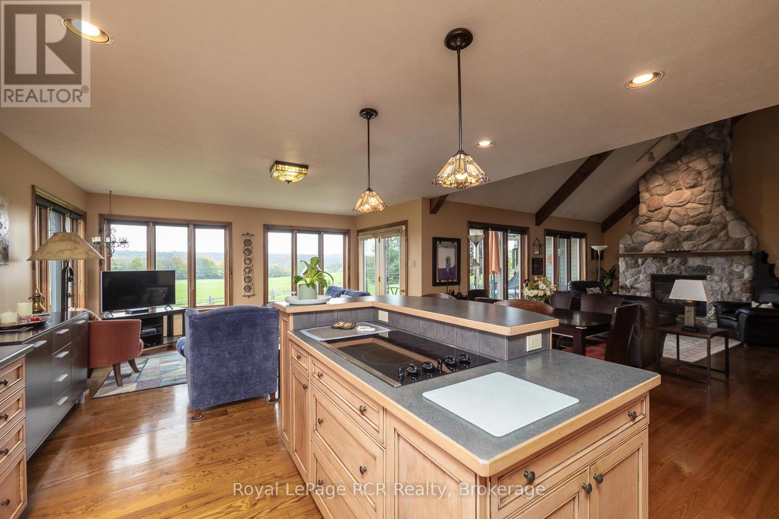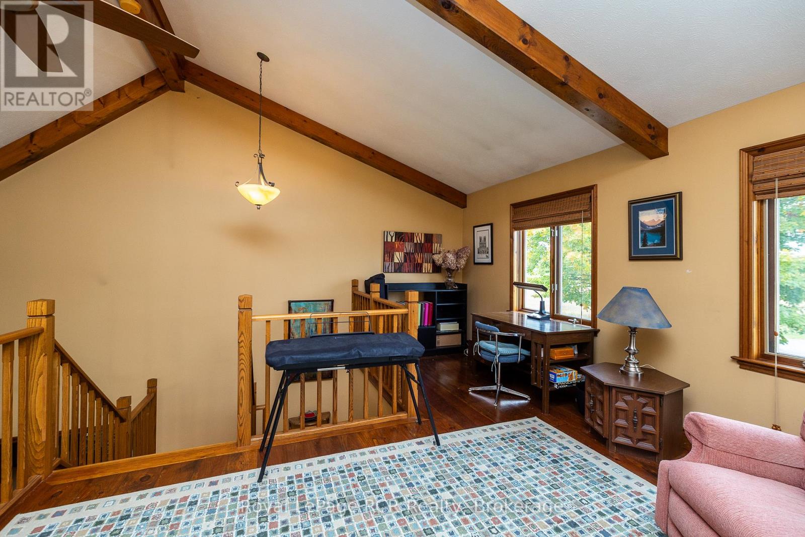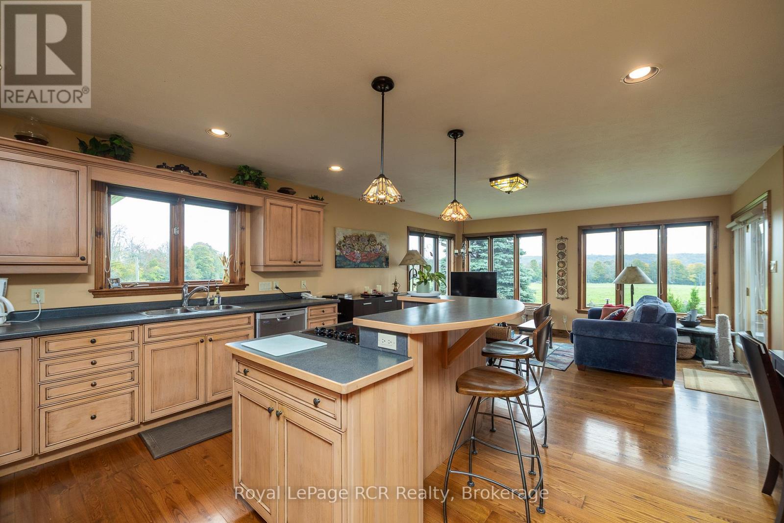 Custom home on 70 acres with commanding countryside views and the Big Head river crossing the south east corner of the property. Built in 2002, the centerpiece of the 2,200 square foot bungalow is the living room with vaulted ceilings, expansive windows and natural gas fireplace with stone surround. Lots of kitchen space with adjoining dining or sitting area. Main floor laundry with 2piece bath is just inside the entrance from the attached double garage. There are 2 spacious bedrooms on the main level and a full bathroom. There is a 13'9"x 20'2" loft perfect for overflow guests or an office. Lower level is finished with a family room (natural gas fireplace), 2 massive bedrooms and the mechanical room. This beautiful setting is so much more than the home - there are approximately 50 acres of open land that has been used as pasture, crop land and hay. Outbuildings include a bank barn, drive shed 40X60 and detached garage 20X32. Recreational activities are at your doorstep with walking trails, snowmobile trails, proximity to skiing, cultural activities and more - all within a welcoming rural community. Only 5 km to Meaford where you'll have schools, shopping and dining. 20 minutes to Owen Sound.