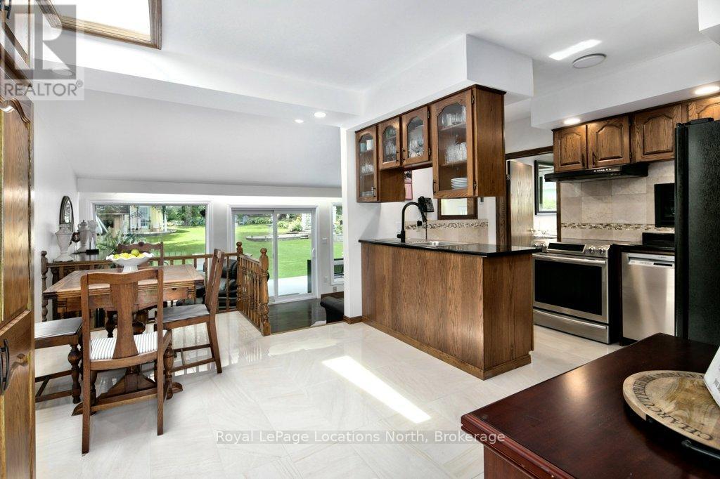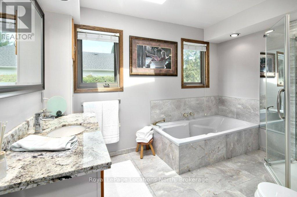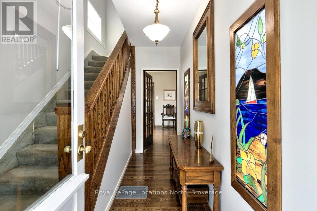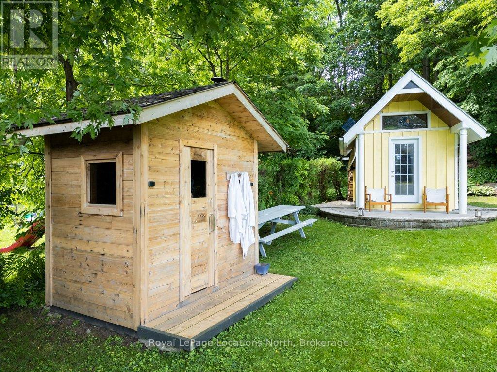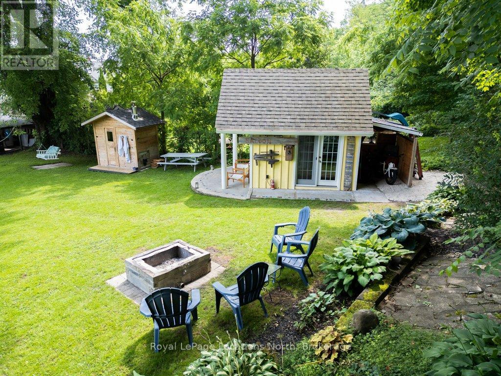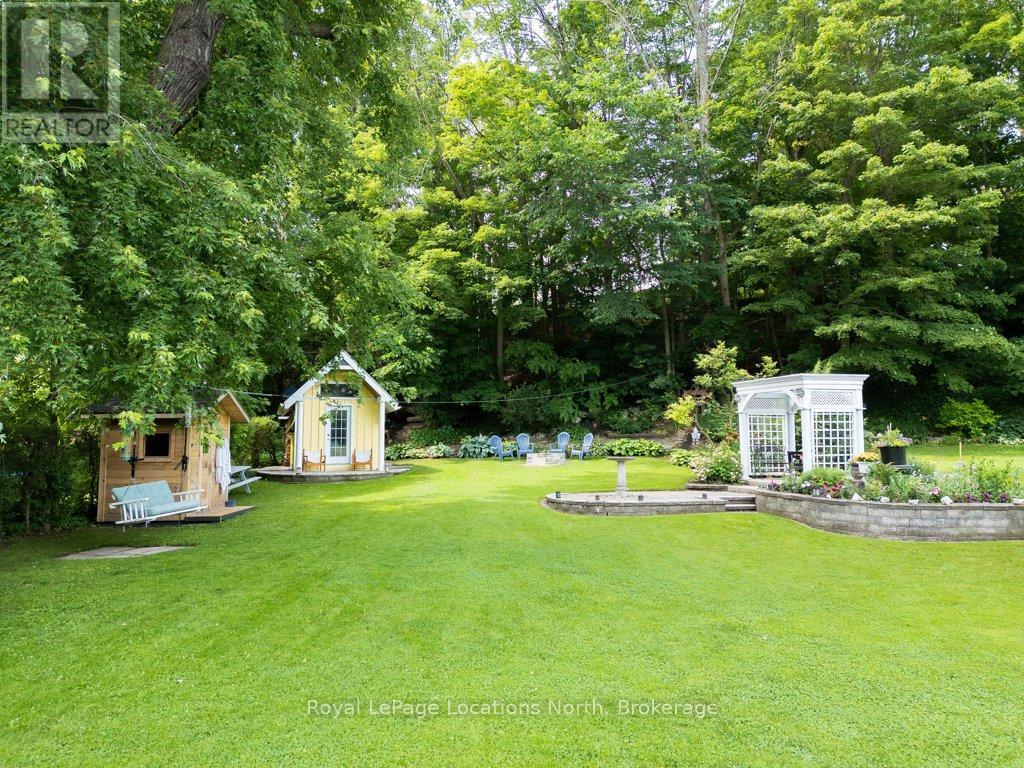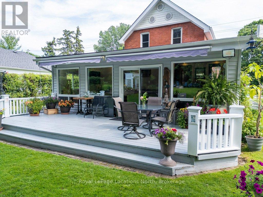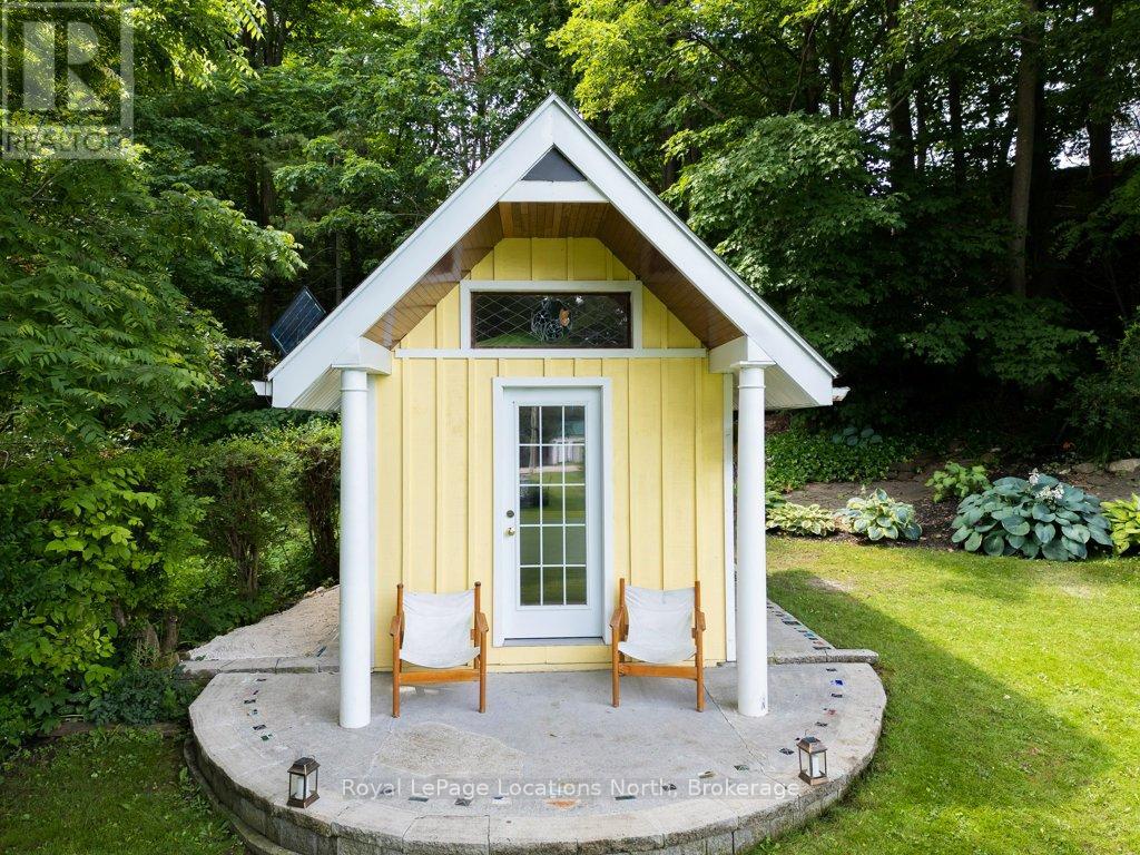 Welcome to 25 Edwin Street ---- a timeless century home brimming with charm and character, tucked away on a peaceful street in the heart of Meaford and backing onto serene natural surroundings. This detached 3-bedroom, 2-bath property spans roughly 1,500 sq. ft., offering warm and welcoming spaces inside and a backyard retreat that feels worlds away. Inside, you'll find a thoughtful mix of original character and modern comfort, including heated floors in the kitchen and main bath. The inviting family room overlooks the lush yard, where the treed backdrop creates an ever-changing view to enjoy year-round. Step outside and embrace a lifestyle designed for relaxation and gathering: unwind in your private sauna, host friends around the fire pit, entertain on the expansive deck, or slip away to the whimsical she-shed for quiet moments. The lower-level workshop adds practical space for hobbies, projects, or extra storage. Perfect for nature enthusiasts, creatives, or families, this home offers a versatile lifestyle in a setting that inspires. All of this, just minutes from Meafords downtown shops, schools, waterfront, and scenic trails the perfect blend of small-town living and room to recharge.